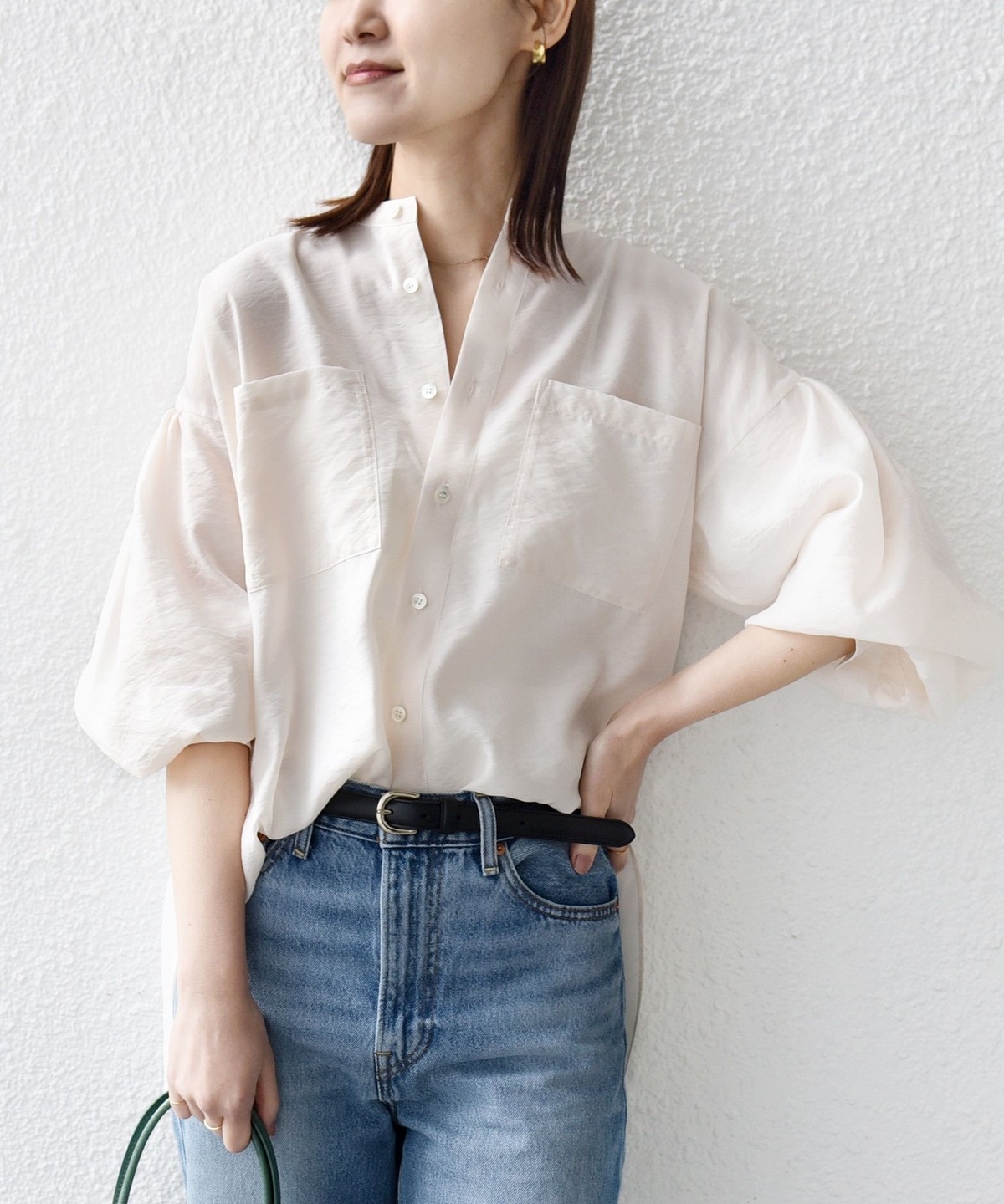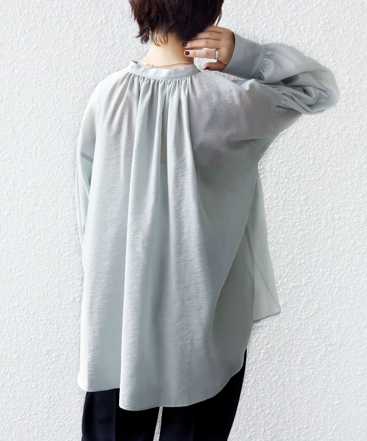 34. 〈手洗い可能〉シアー タンブラー ポケット デザイン シャツ