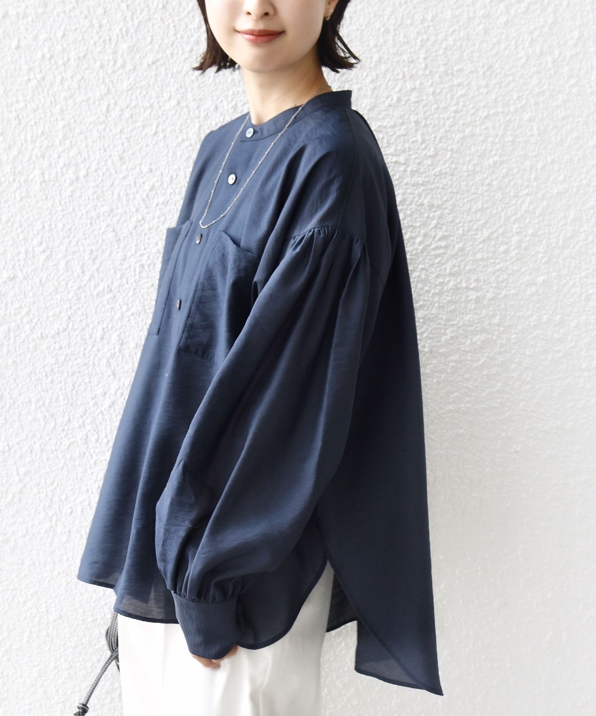 44. 〈手洗い可能〉シアー タンブラー ポケット デザイン シャツ