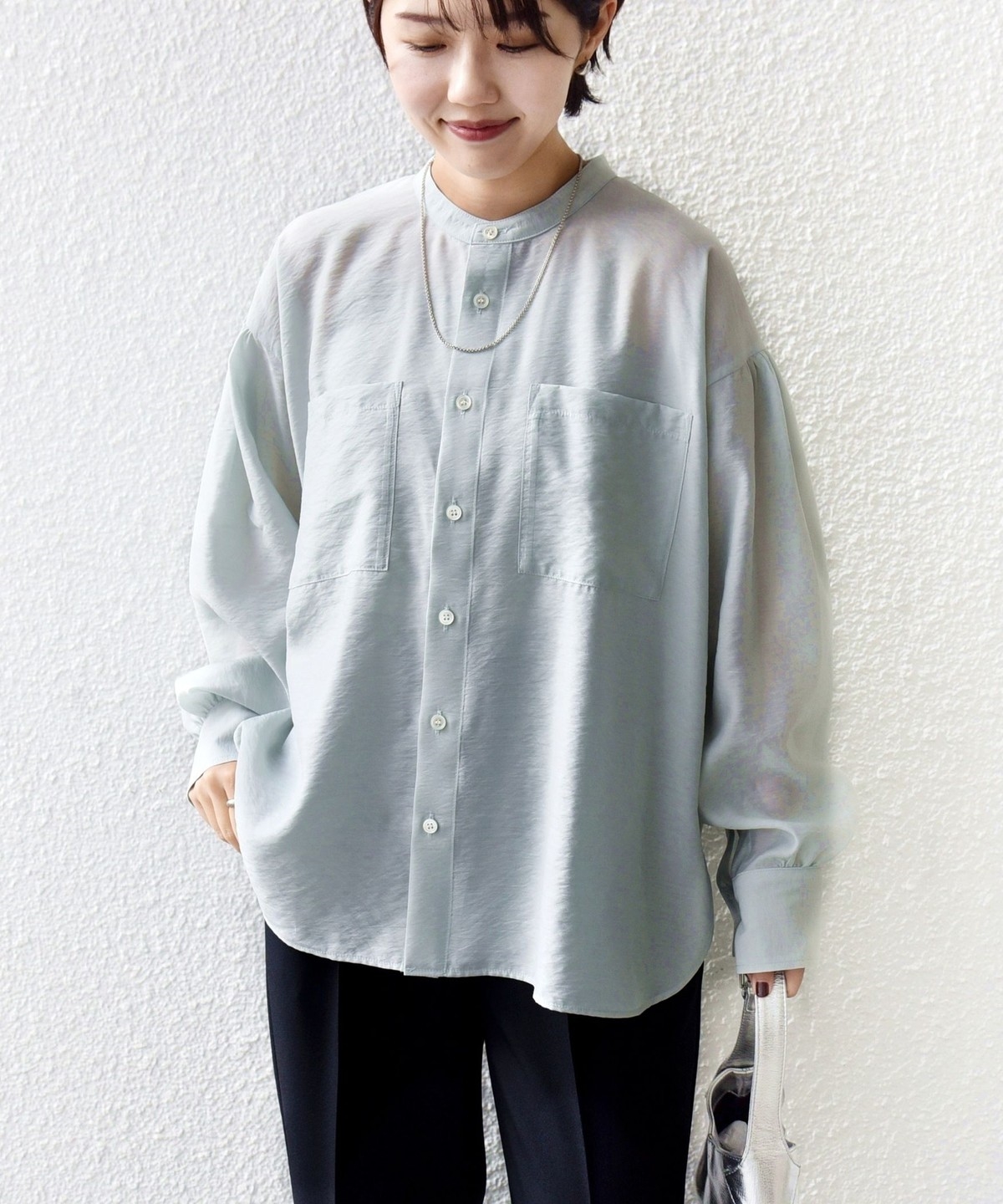 1. 〈手洗い可能〉シアー タンブラー ポケット デザイン シャツ ミント