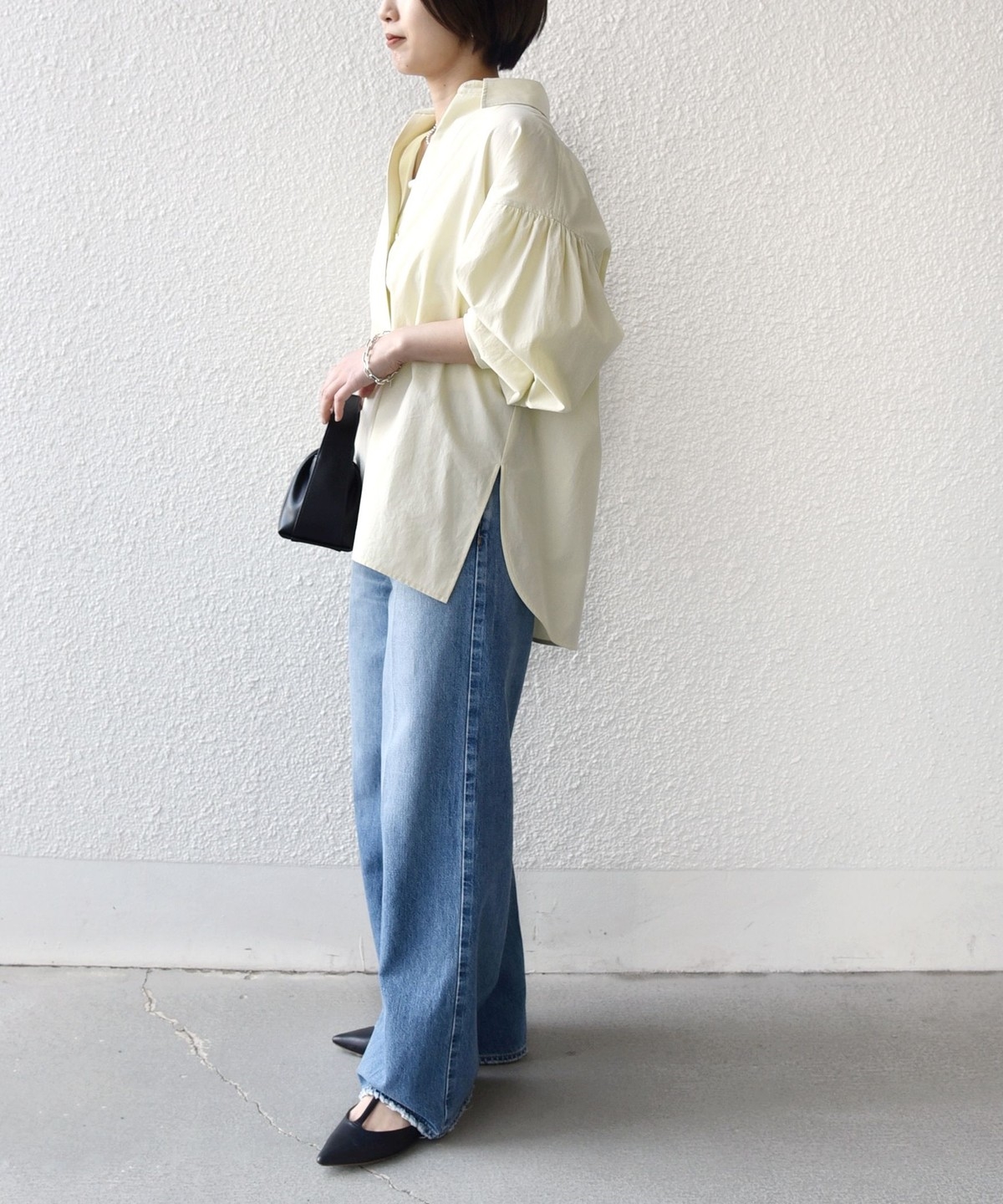 パンツからタイトスカートまで幅広いボトムと相性が良く、長いシーズン活躍する一枚です。