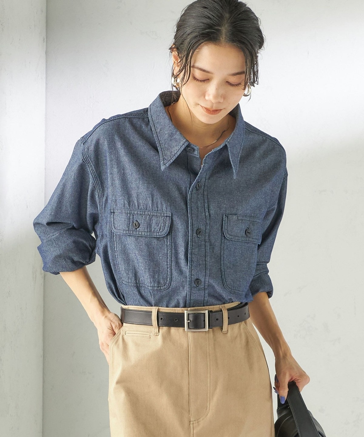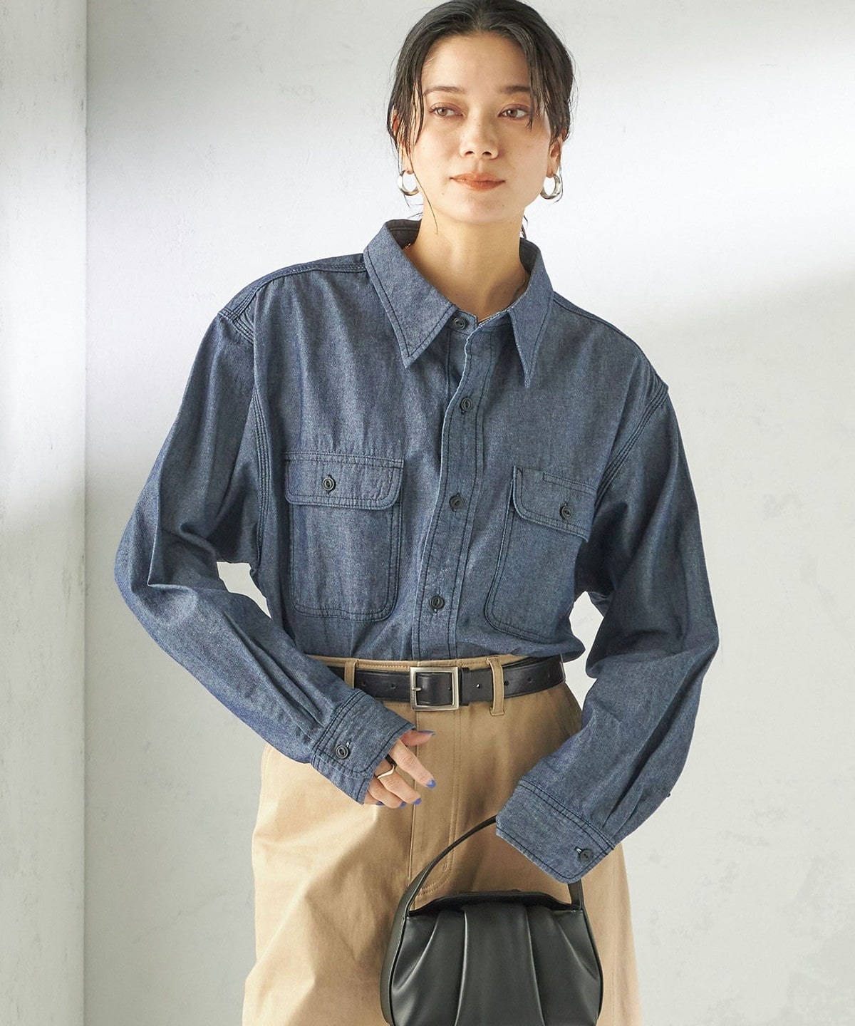 ルーズシルエットのシャンブレーシャツはワークウェアに見られるトリプルステッチやハードワークにも耐えうるような仕様のペンホールなど、ヴィンテージのディテールを忠実に再現しています。