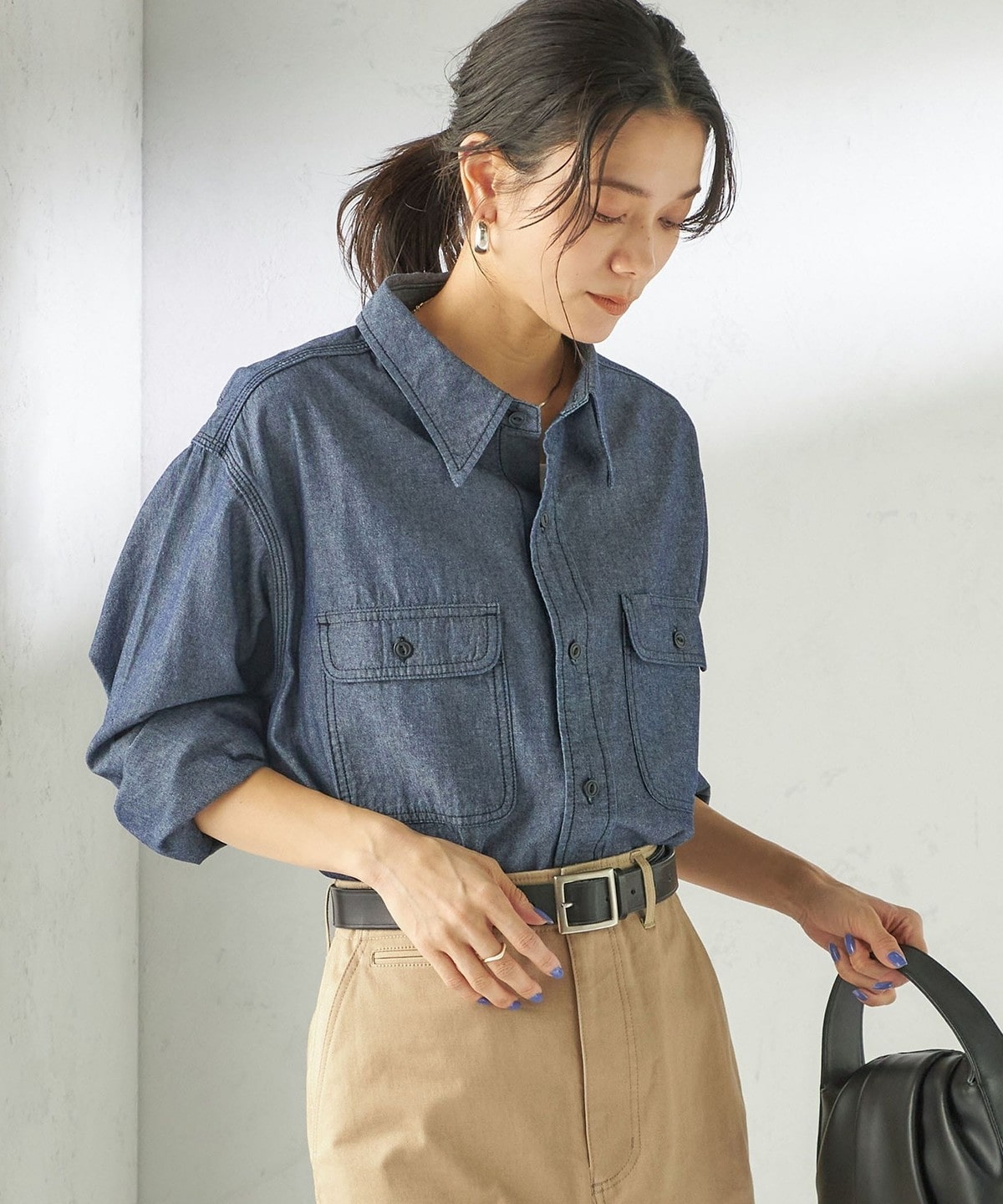 1. 《予約》NINE CASE:〈洗濯機可能〉シャンブレー シャツ ブルー