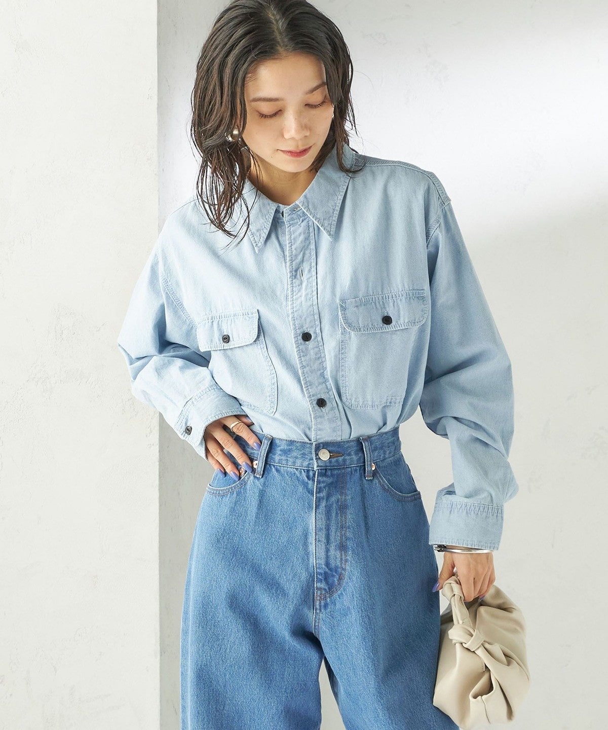 2. 《予約》NINE CASE:〈洗濯機可能〉シャンブレー シャツ ライトブルー