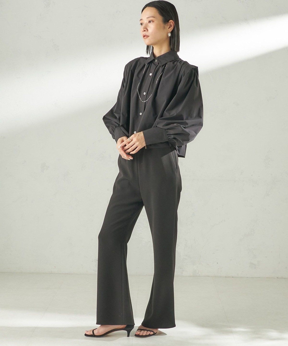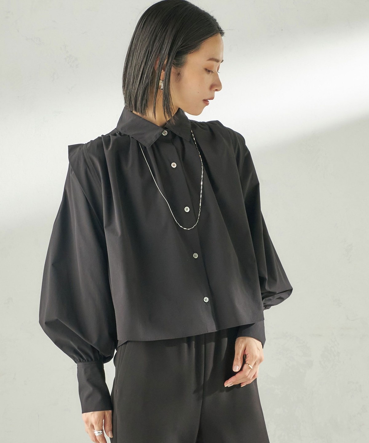 肩のタックや贅沢なギャザーを施し、一枚で着映えするアイテムです。