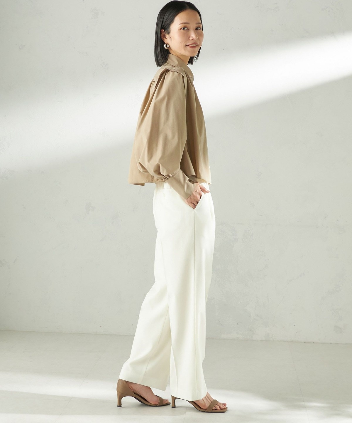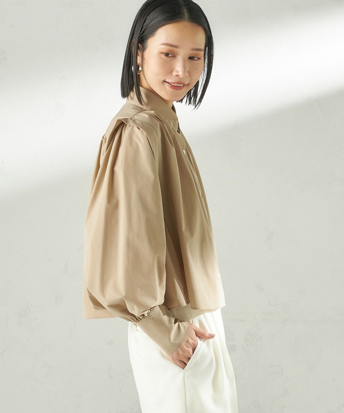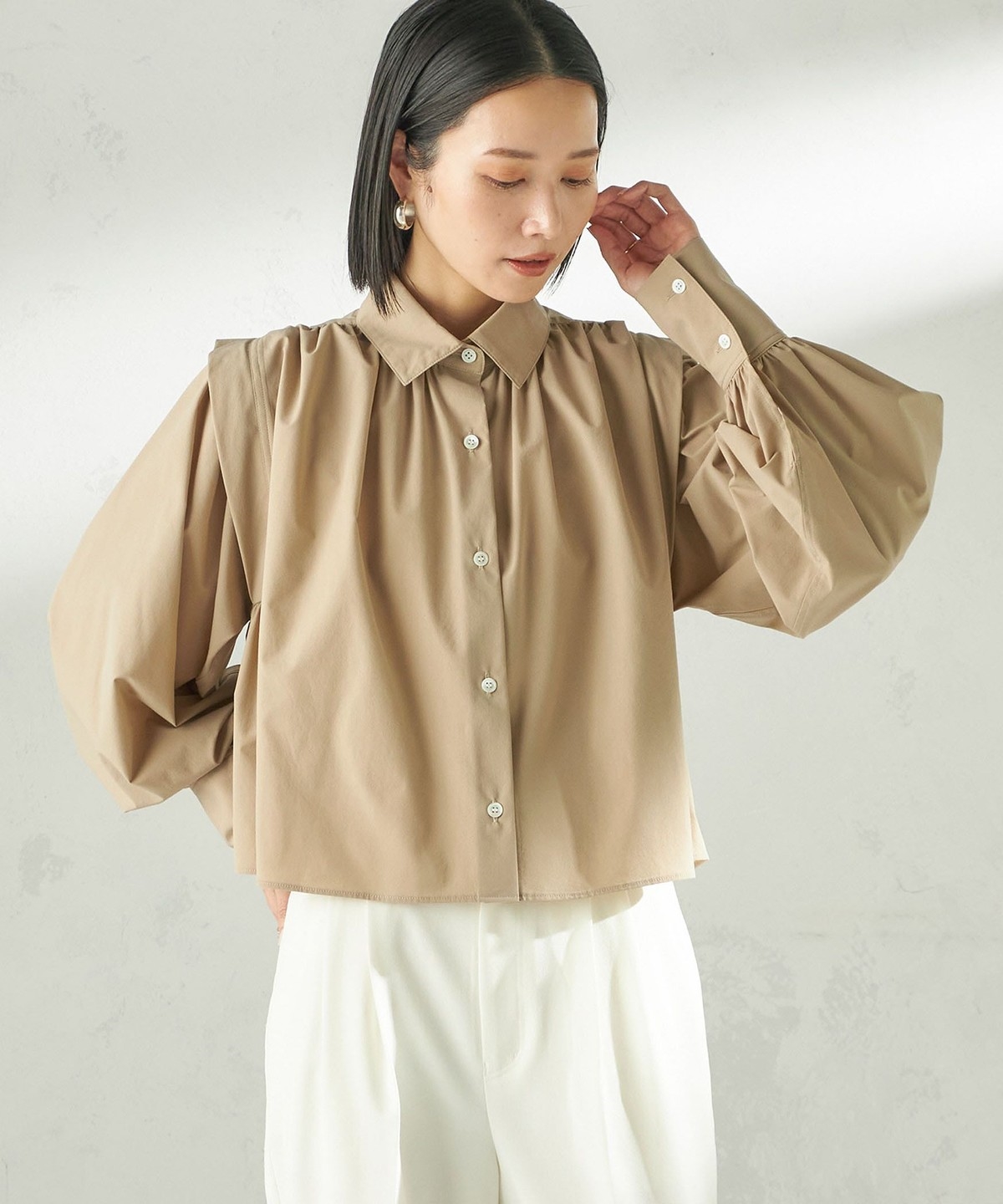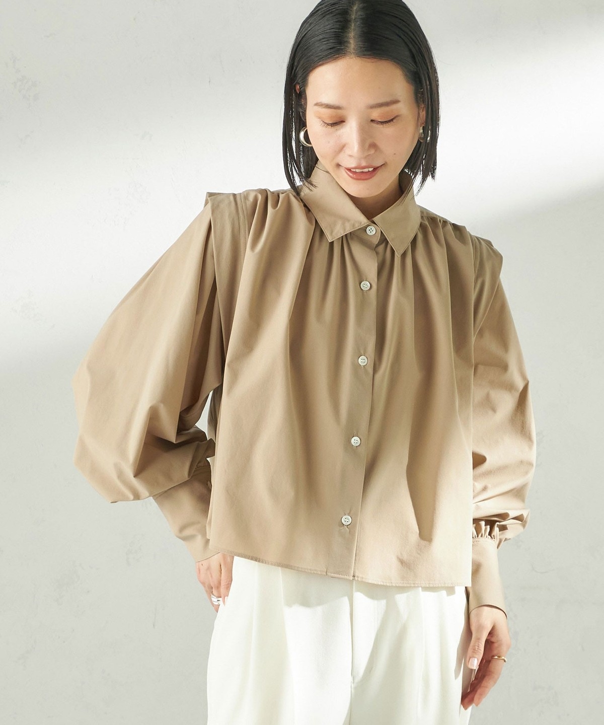 1. 《予約》堀田茜×SHIPS:〈接触冷感/撥水/洗濯機可能〉TEXBRID ギャザー ブラウス ベージュ系