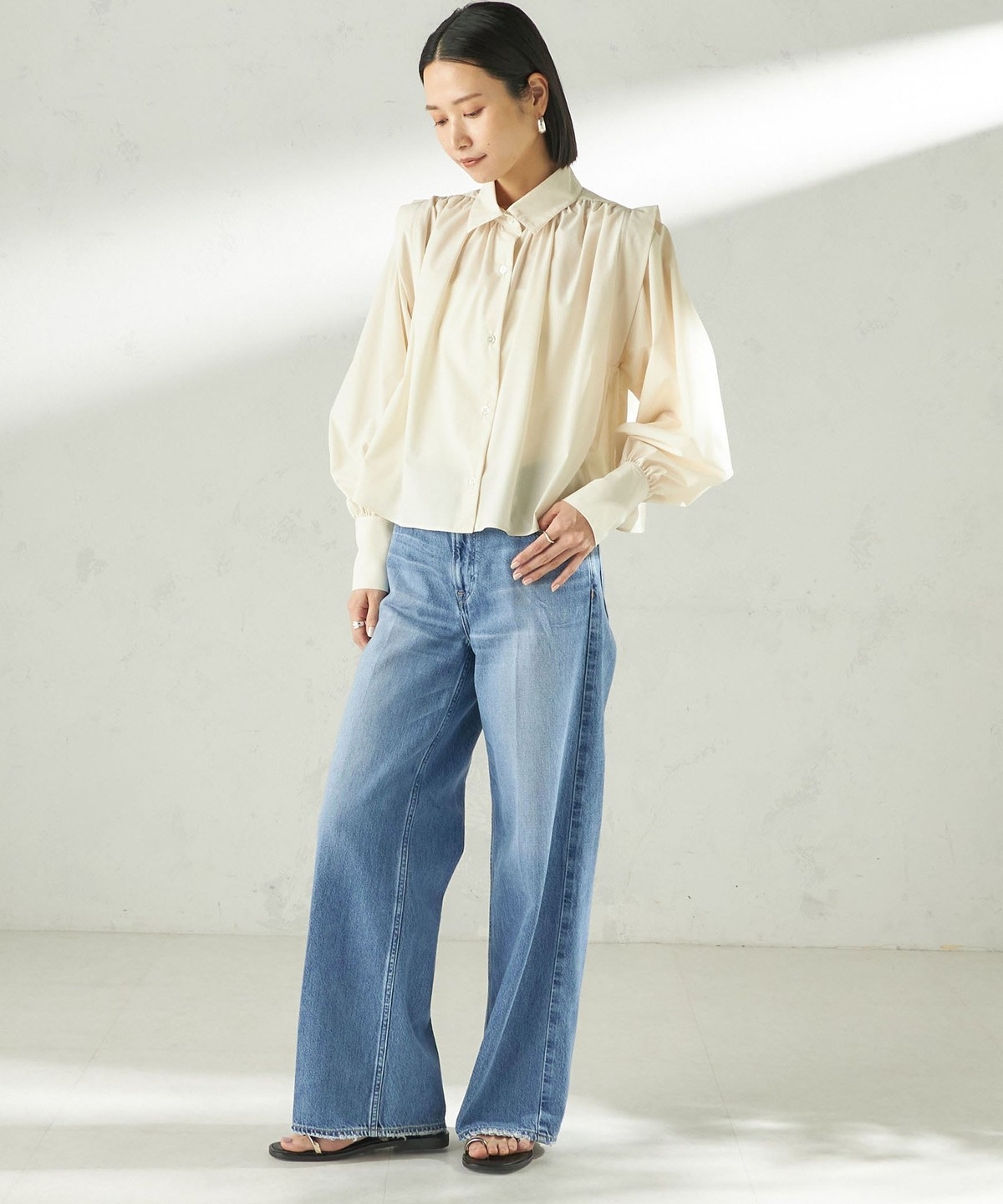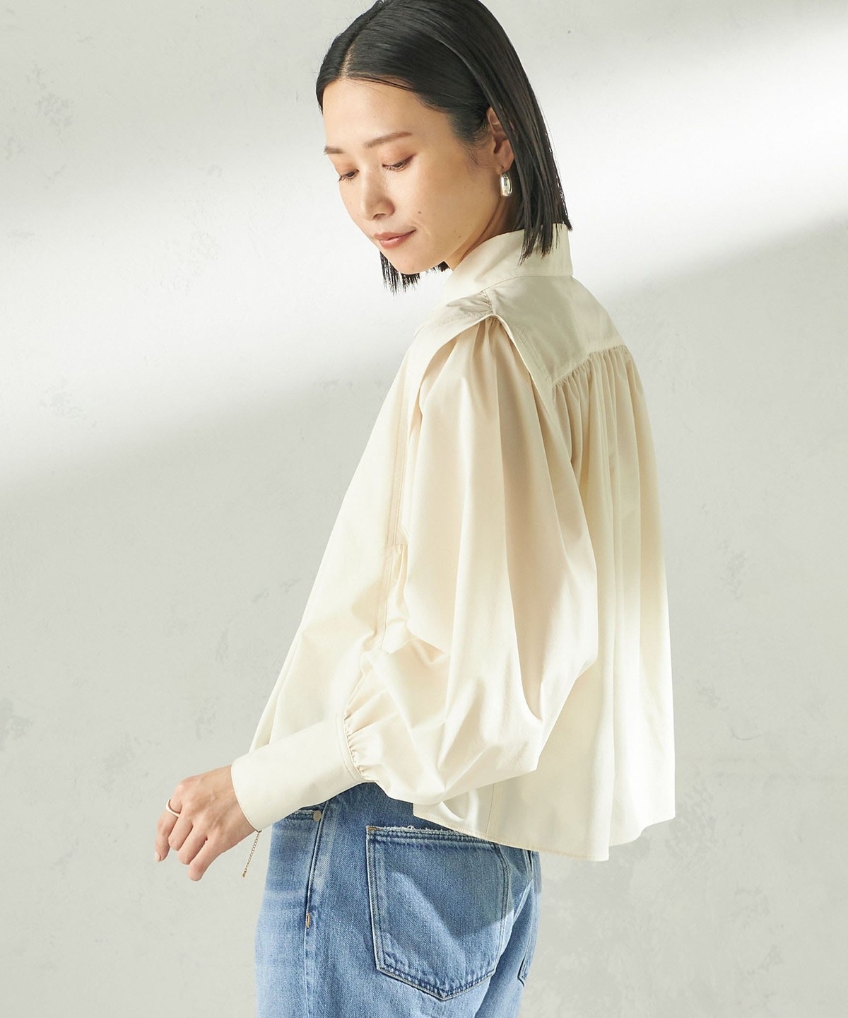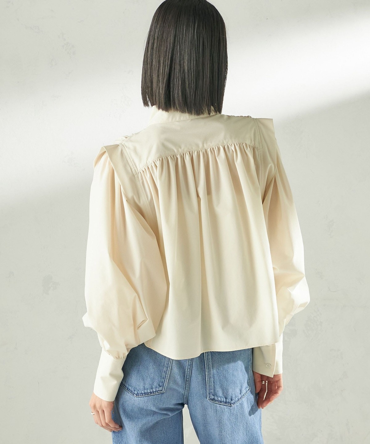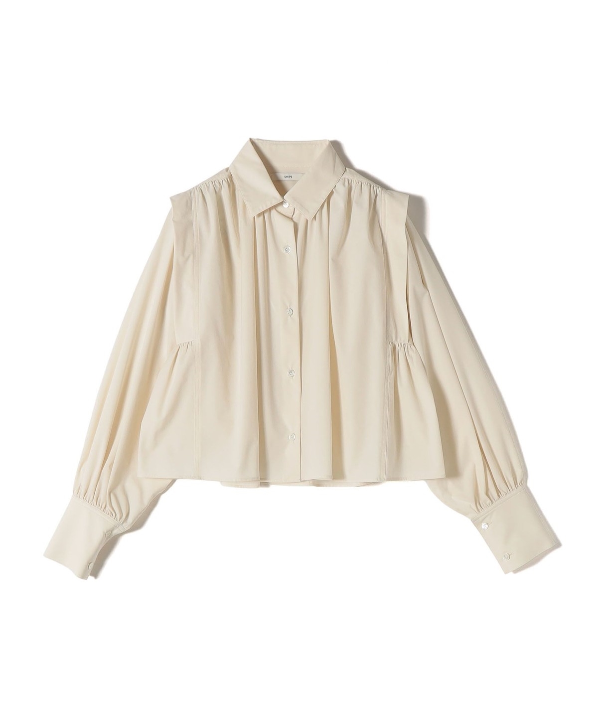 2. 《予約》堀田茜×SHIPS:〈接触冷感/撥水/洗濯機可能〉TEXBRID ギャザー ブラウス オフホワイト