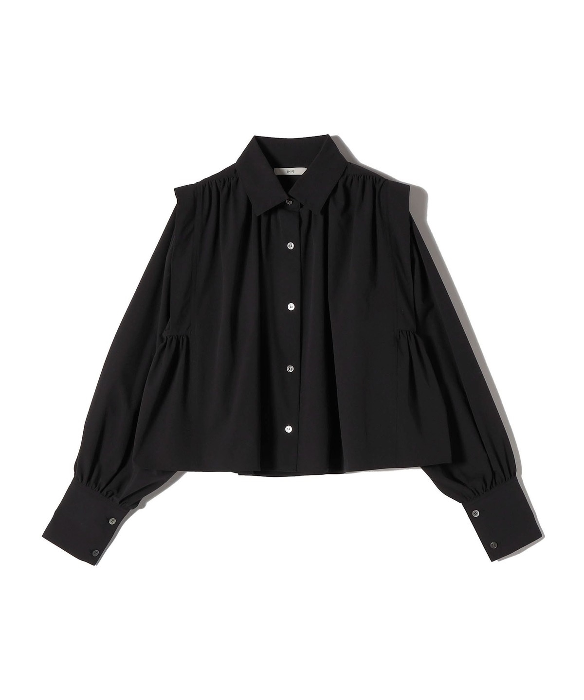 3. 《予約》堀田茜×SHIPS:〈接触冷感/撥水/洗濯機可能〉TEXBRID ギャザー ブラウス ブラック
