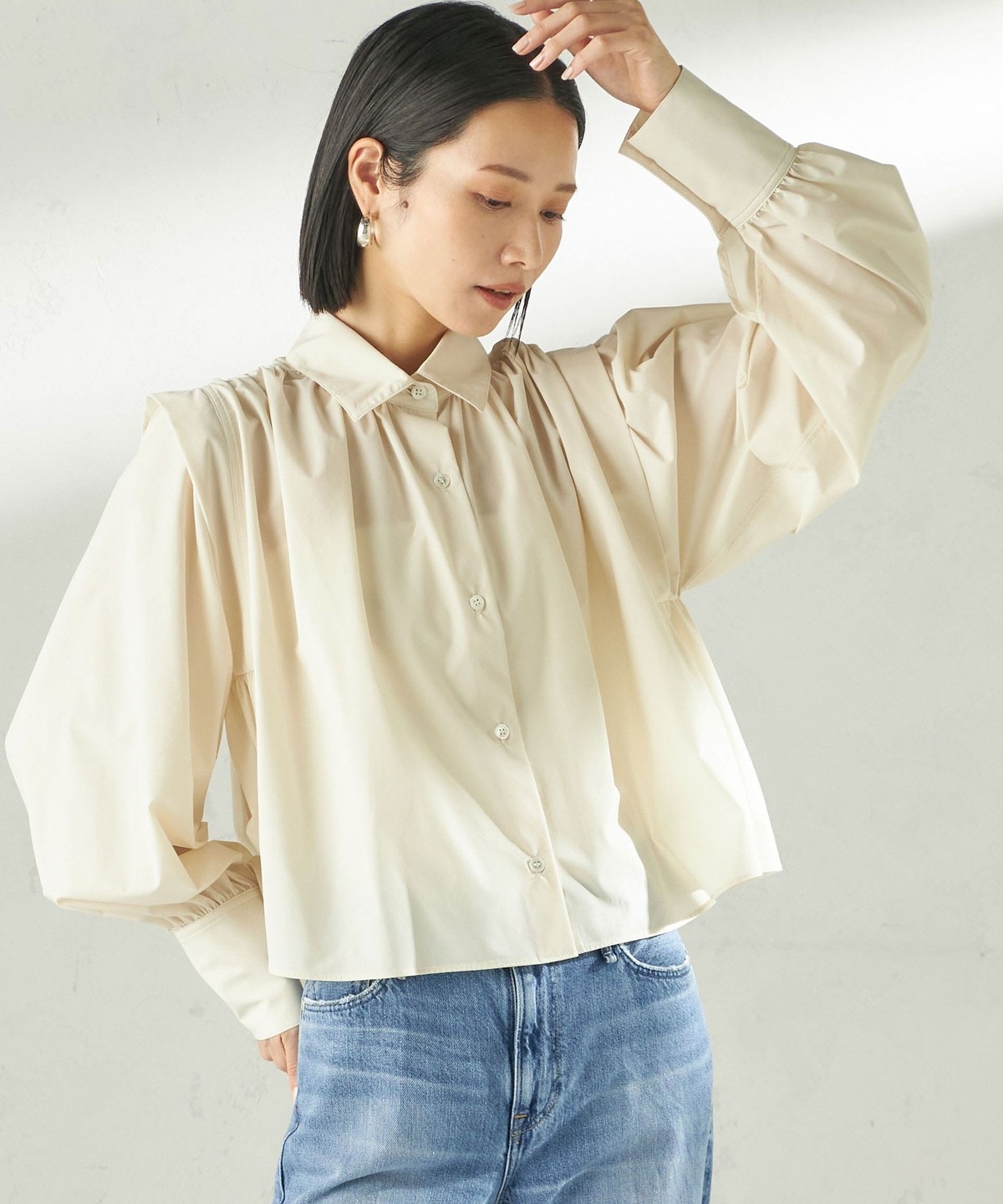 36. 《予約》堀田茜×SHIPS:〈接触冷感/撥水/洗濯機可能〉TEXBRID ギャザー ブラウス