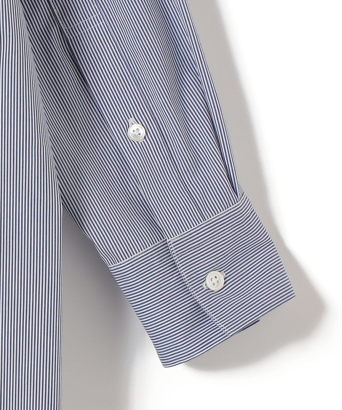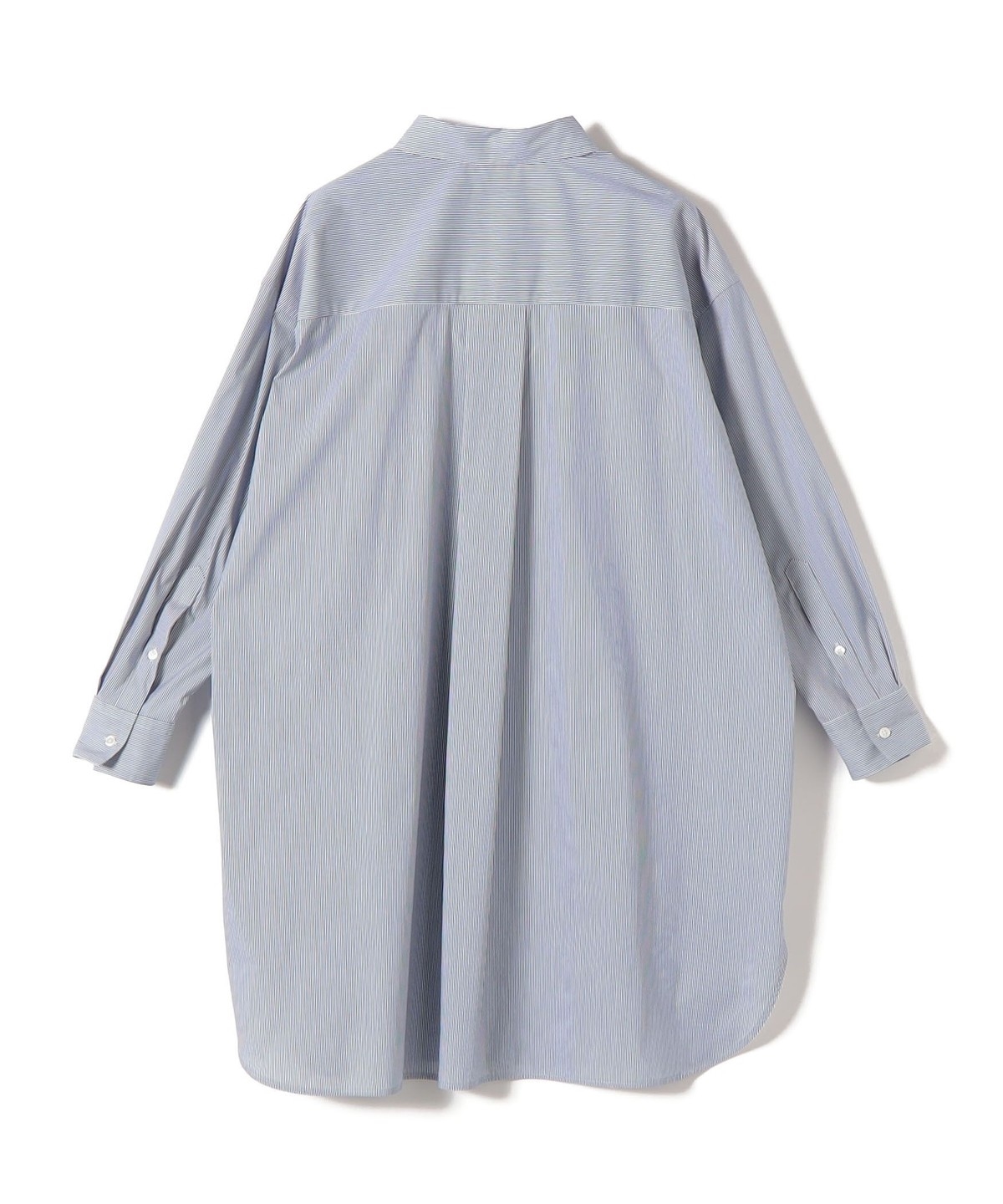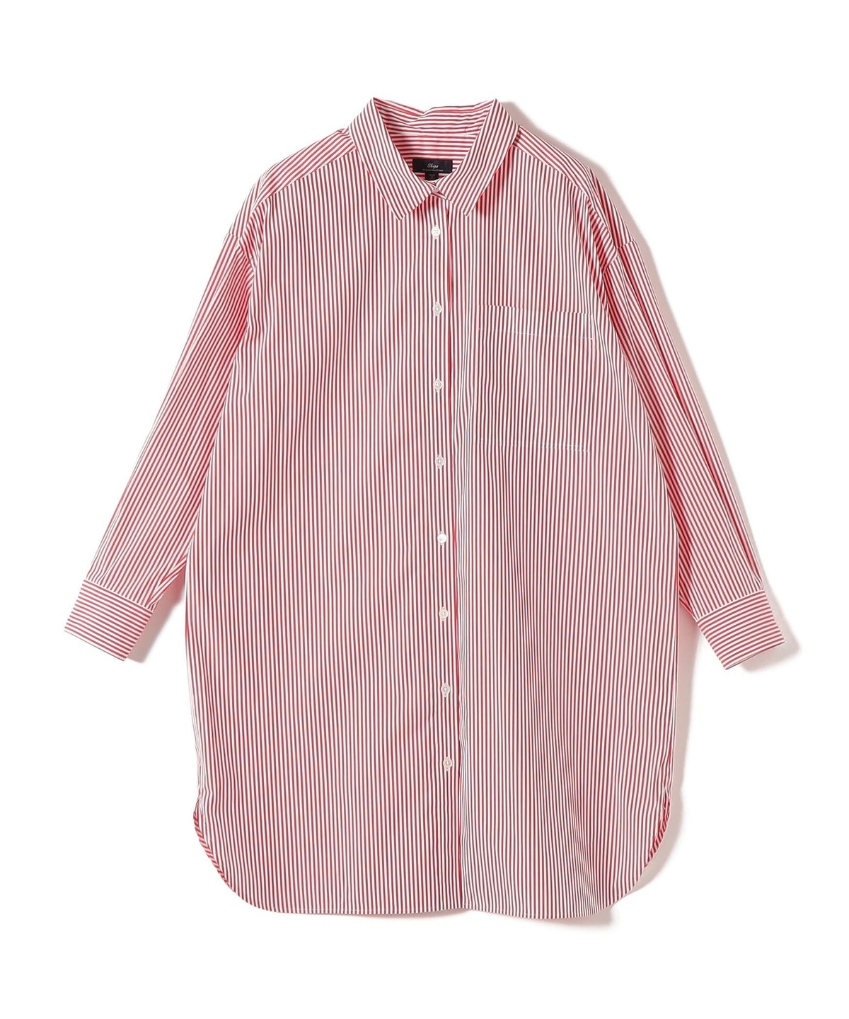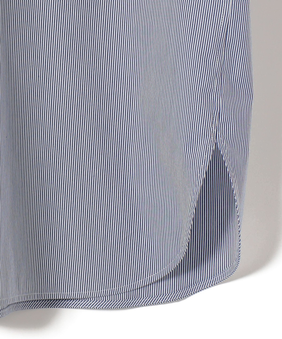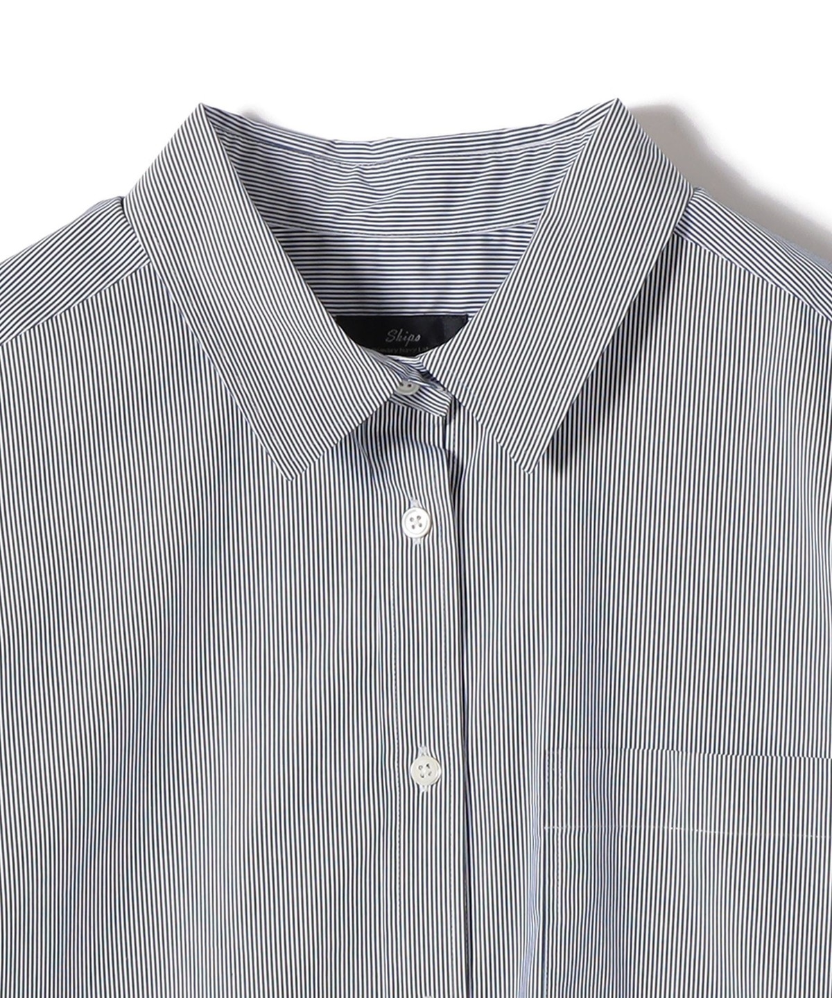 SHIPS Primary Navy Label:綿 ナイロン ストライプ ロング シャツ