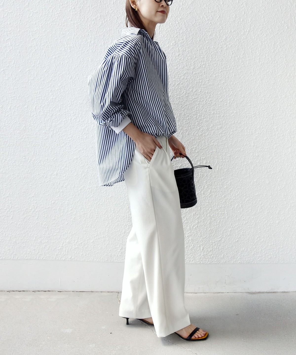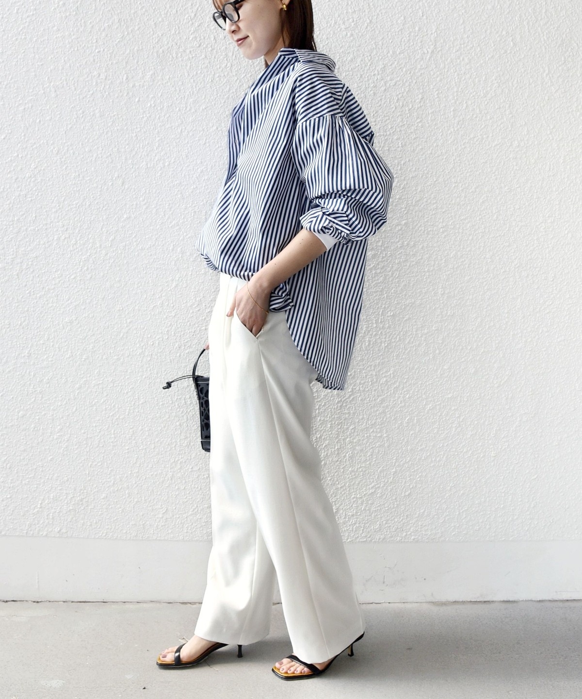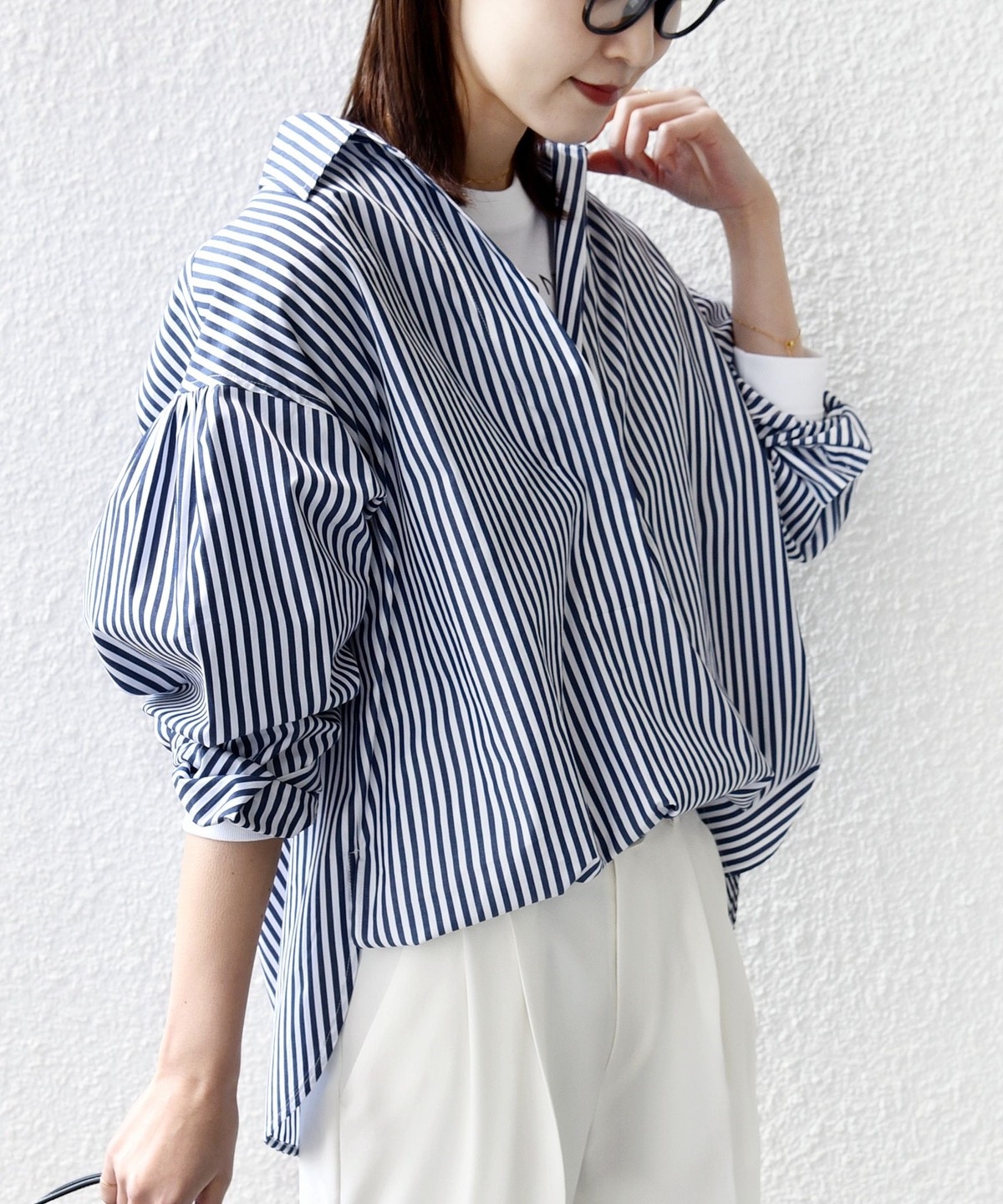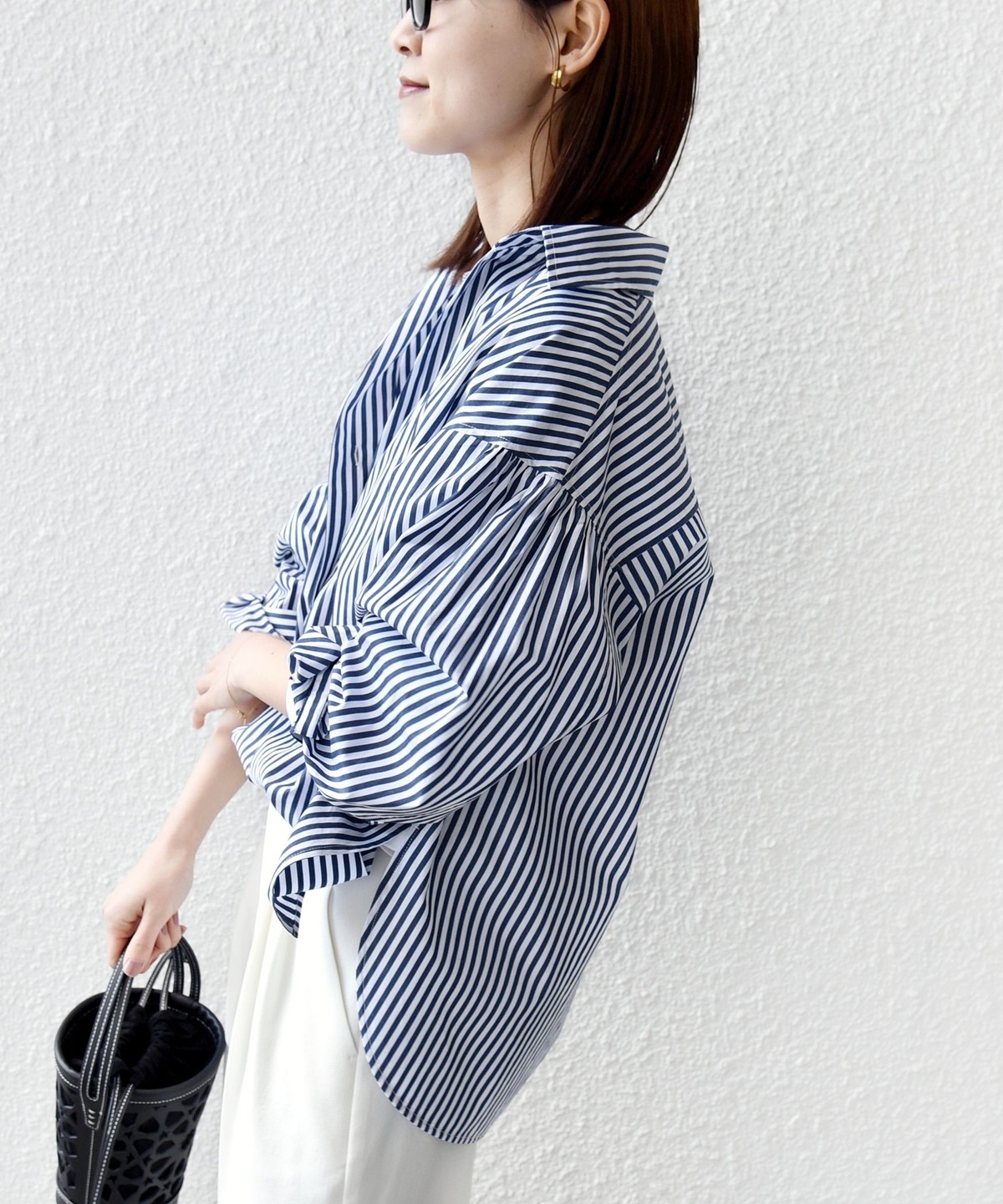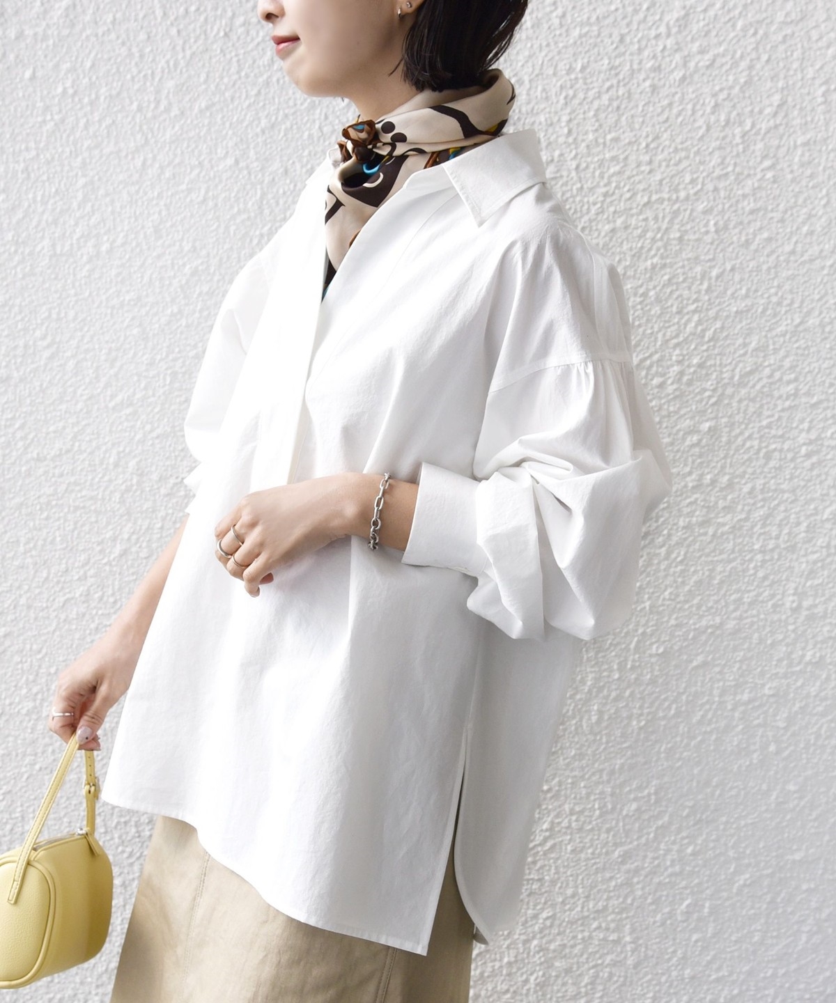パンツからタイトスカートまで幅広いボトムと相性が良く、長いシーズン活躍する一枚です。