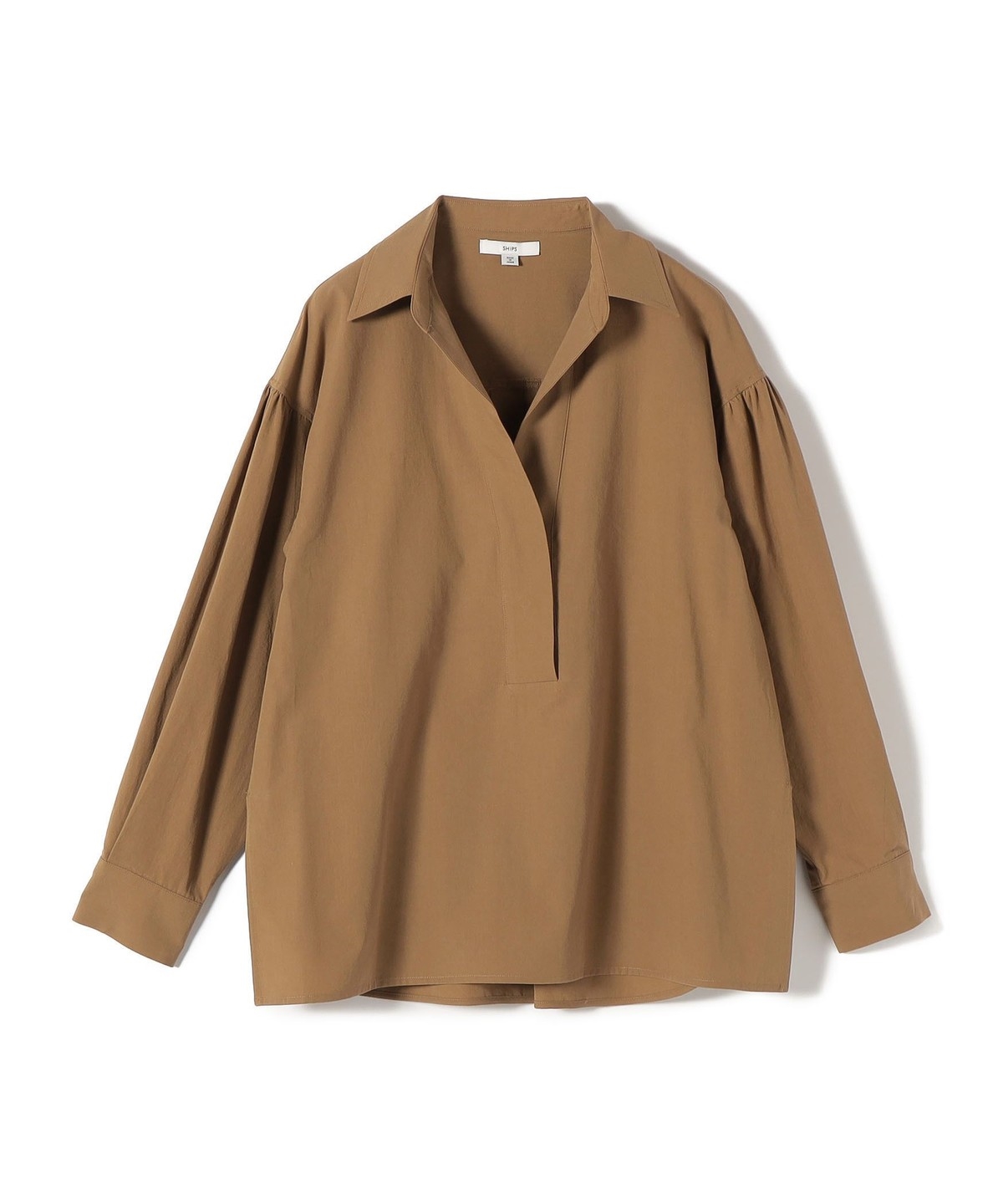 3. 〈手洗い可能〉無地 / ストライプ サイド スリット スキッパー コットン シャツ 2 ブラウン