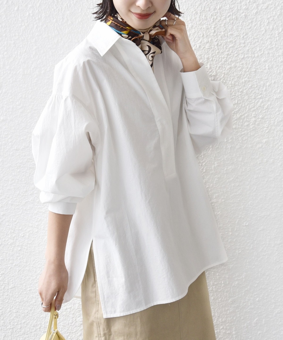 2. 〈手洗い可能〉無地 / ストライプ サイド スリット スキッパー コットン シャツ 2 オフホワイト