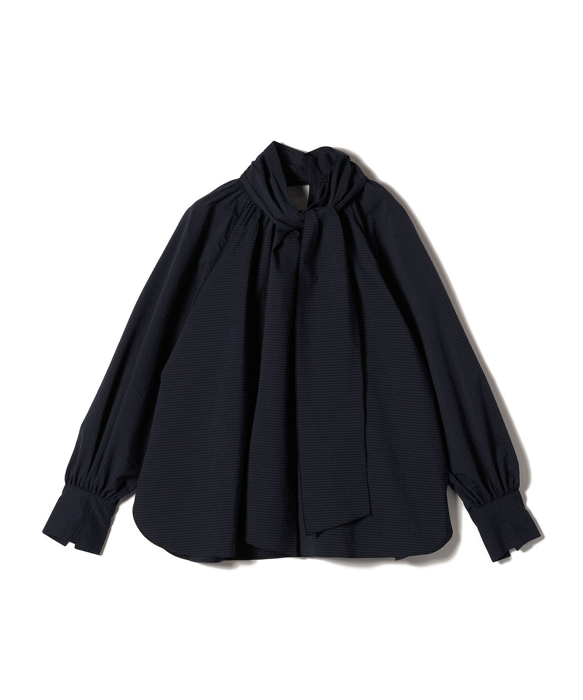 前でリボン結びをしたり片結びをしたり、後ろでラフに結んでスタンドネックのような着方が楽しめます。