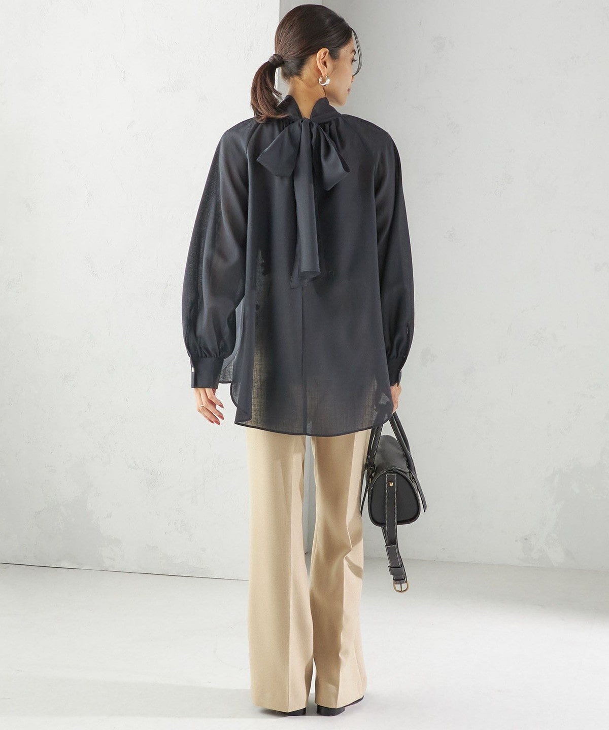 9. 〈手洗い可能〉ウール混 シアー ボイル リボン ブラウス