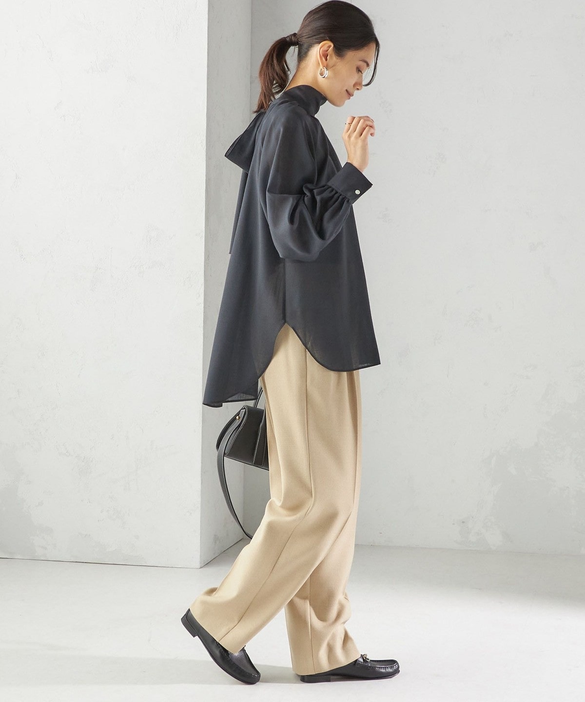 様々なアレンジを楽しめる 程よいシアー感が上品なリボンタイブラウス