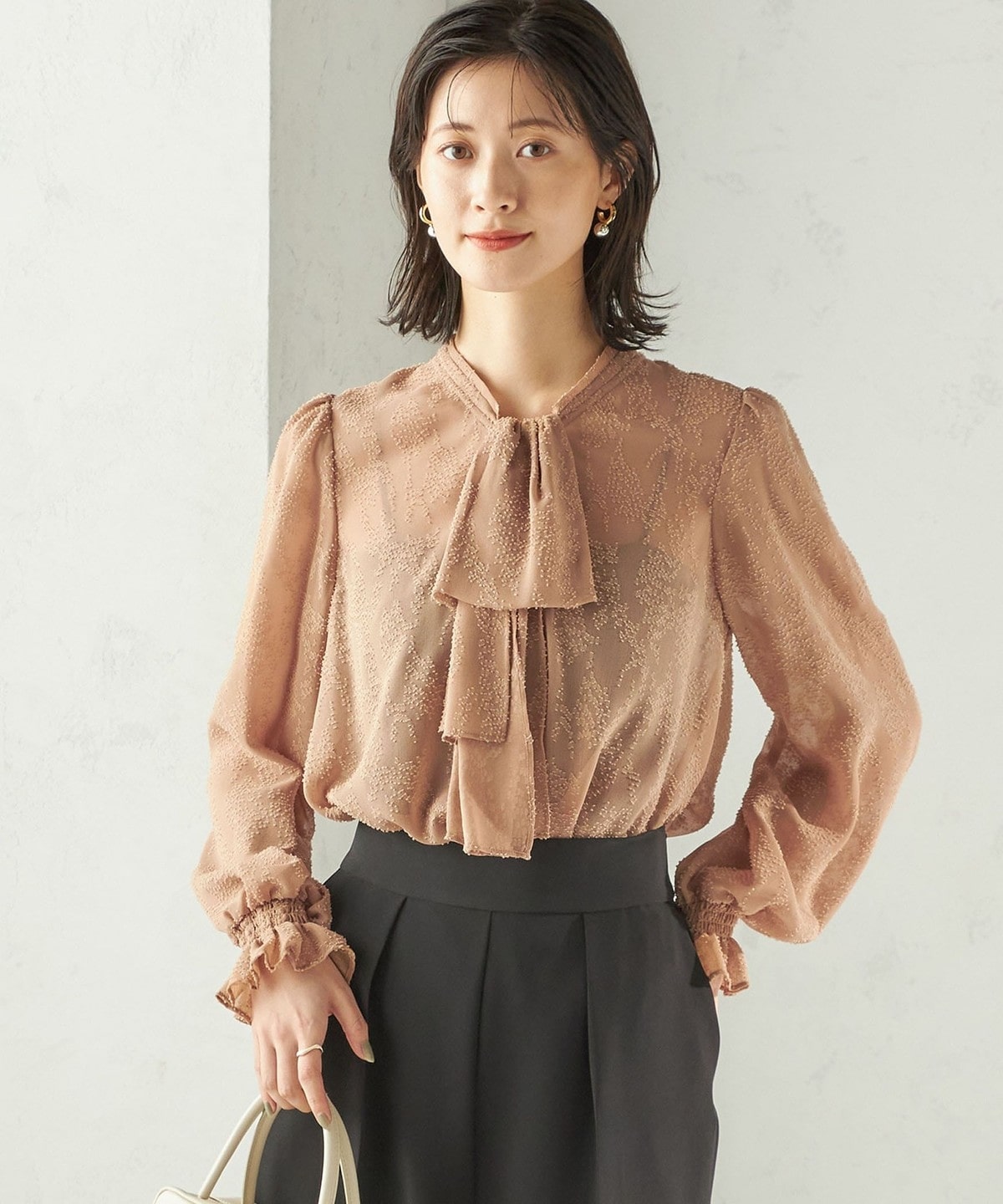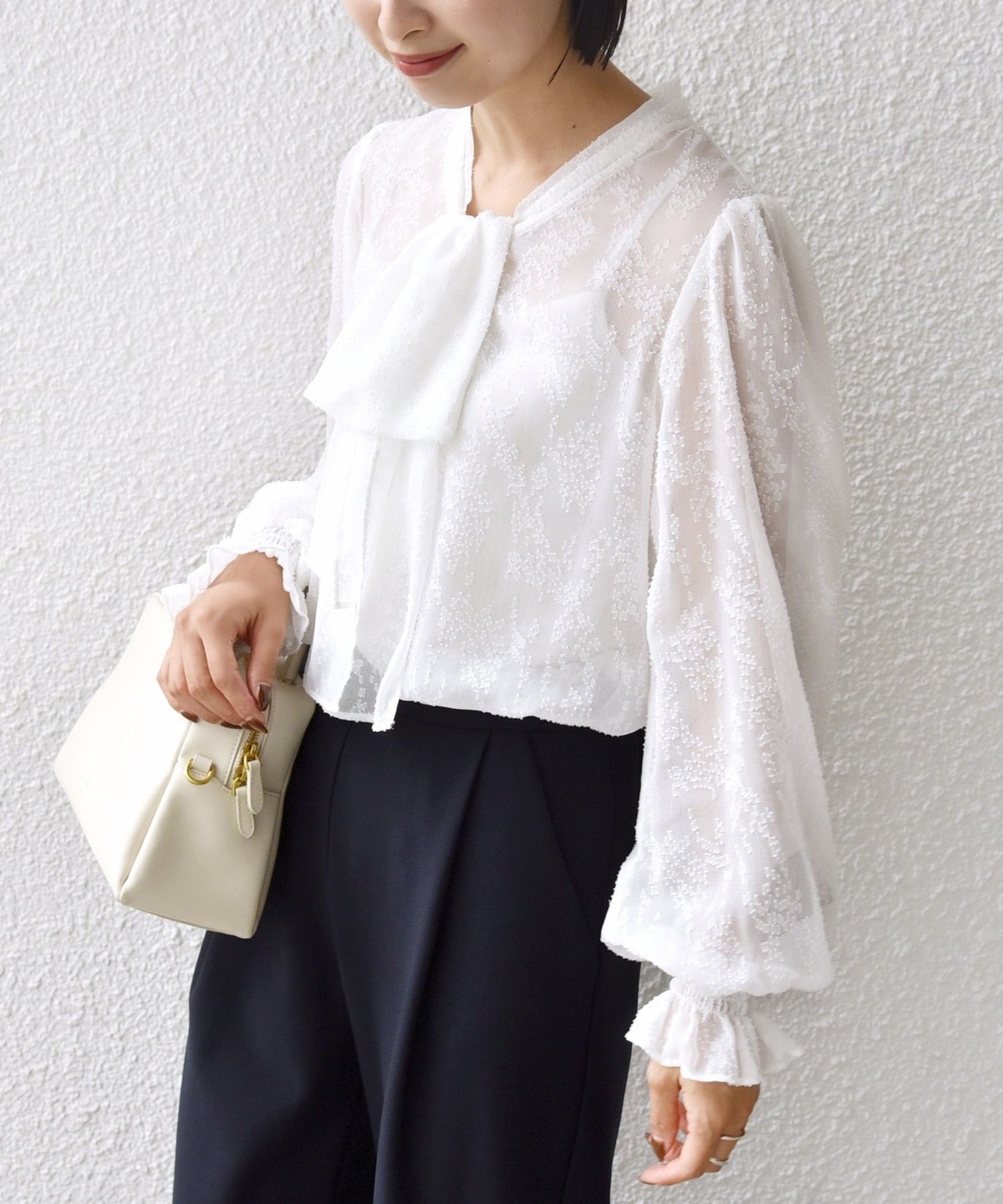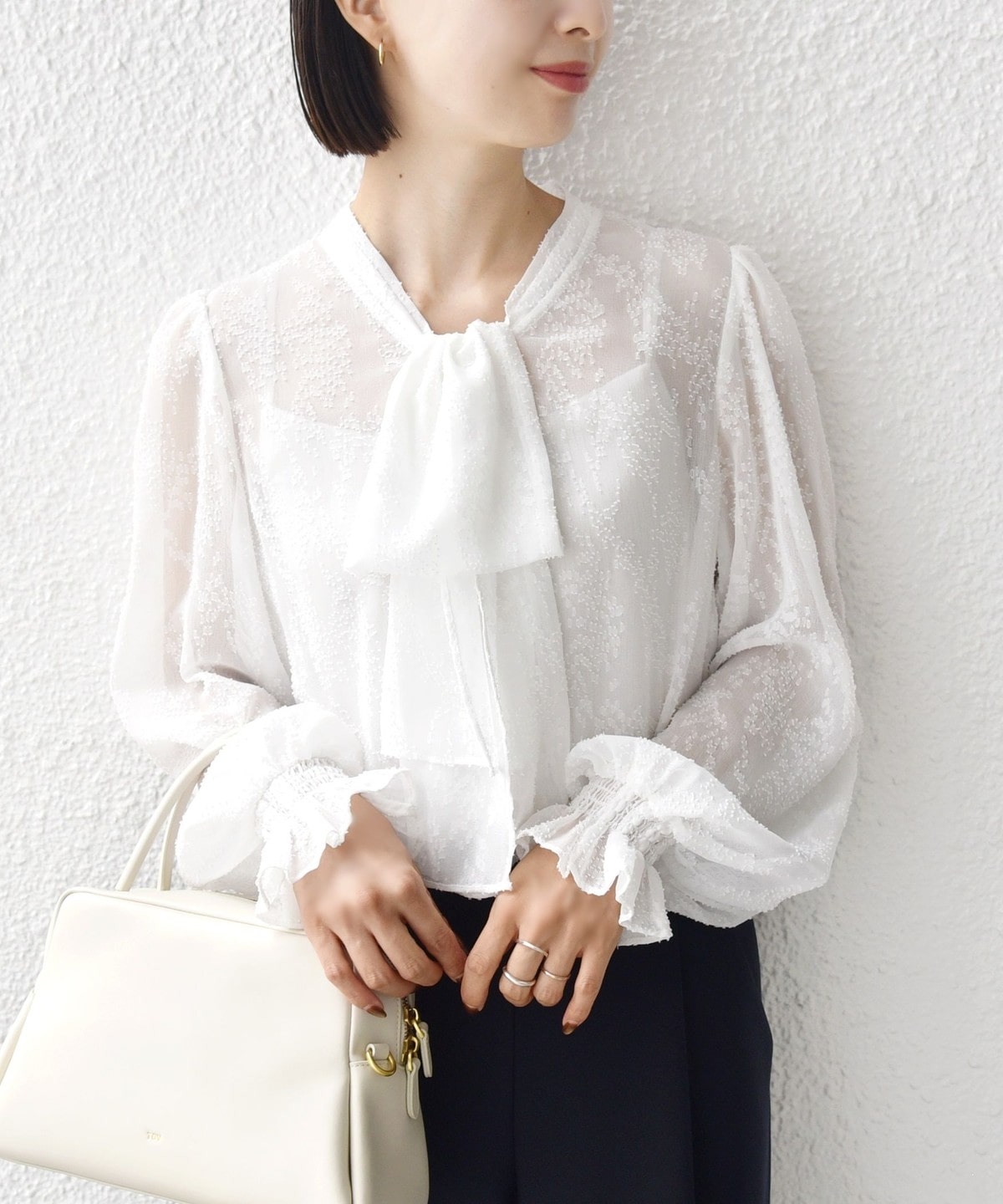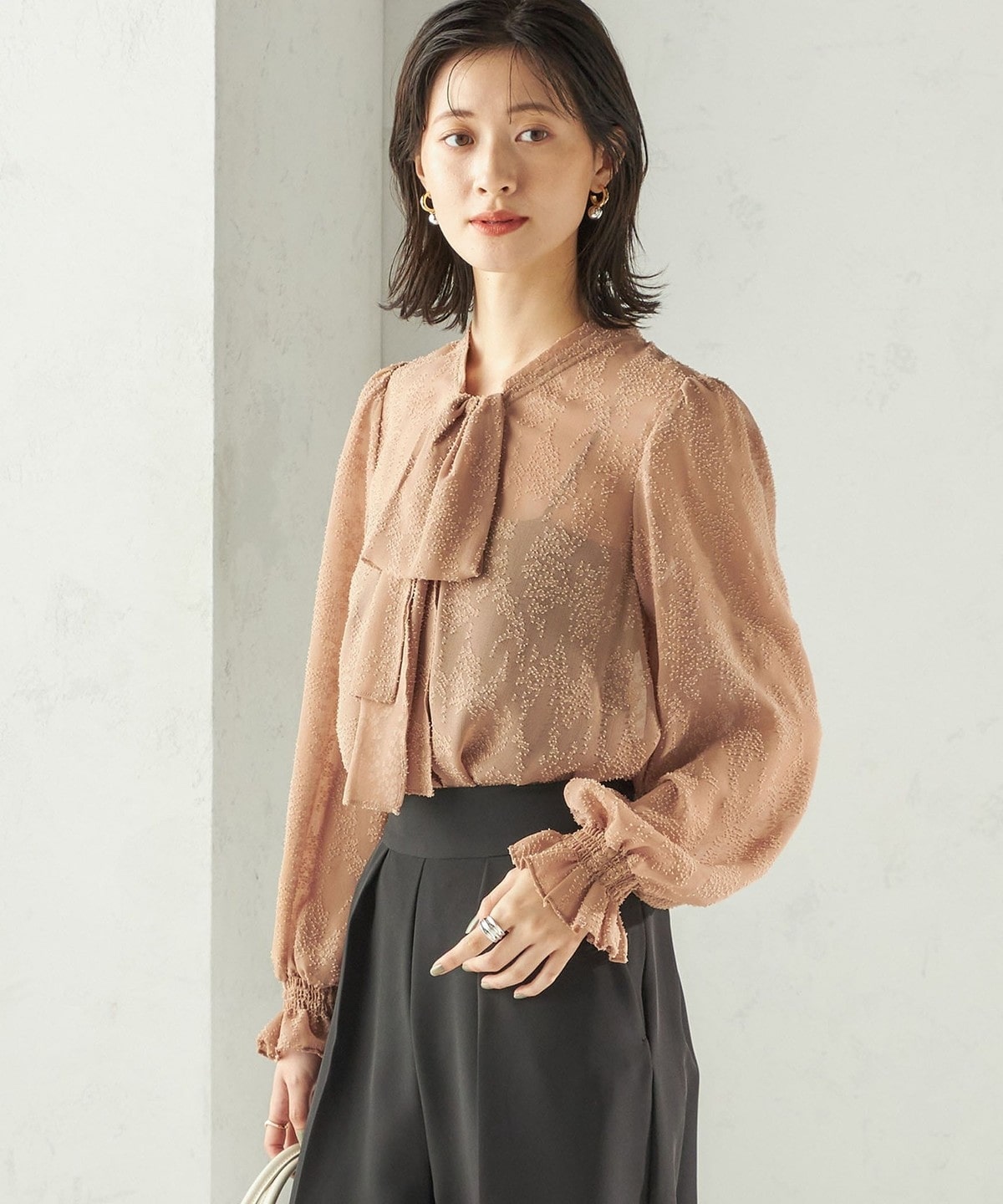 透け感とボウタイデザインで上品に仕上がるシアーブラウス