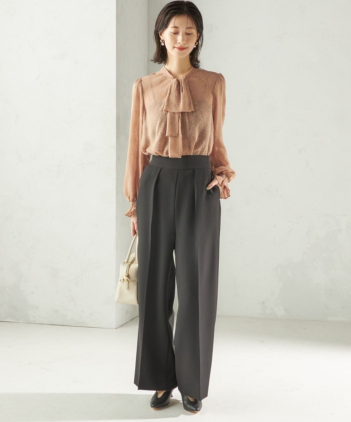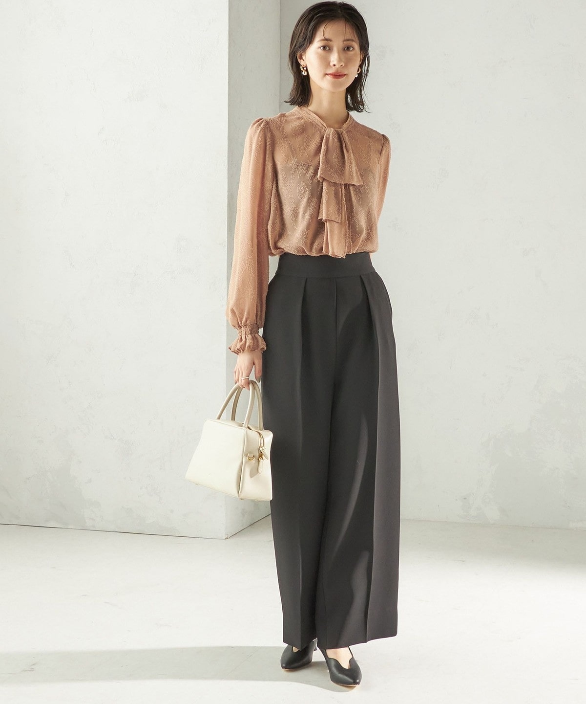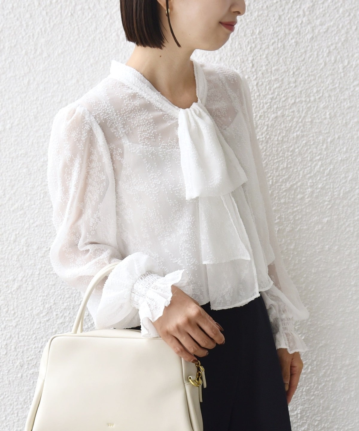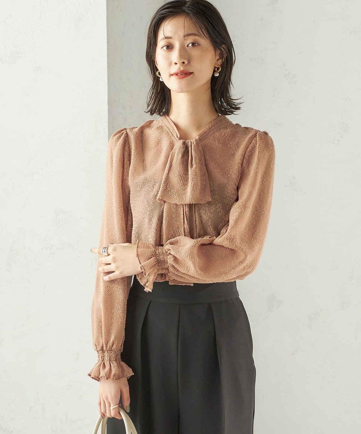 透け感とボウタイデザインで上品に仕上がるシアーブラウス