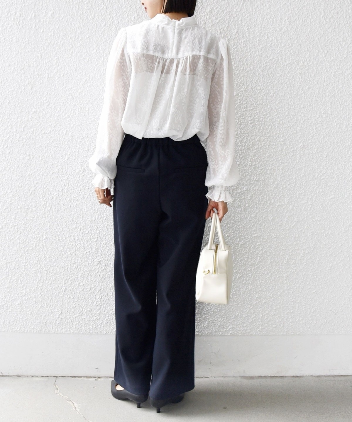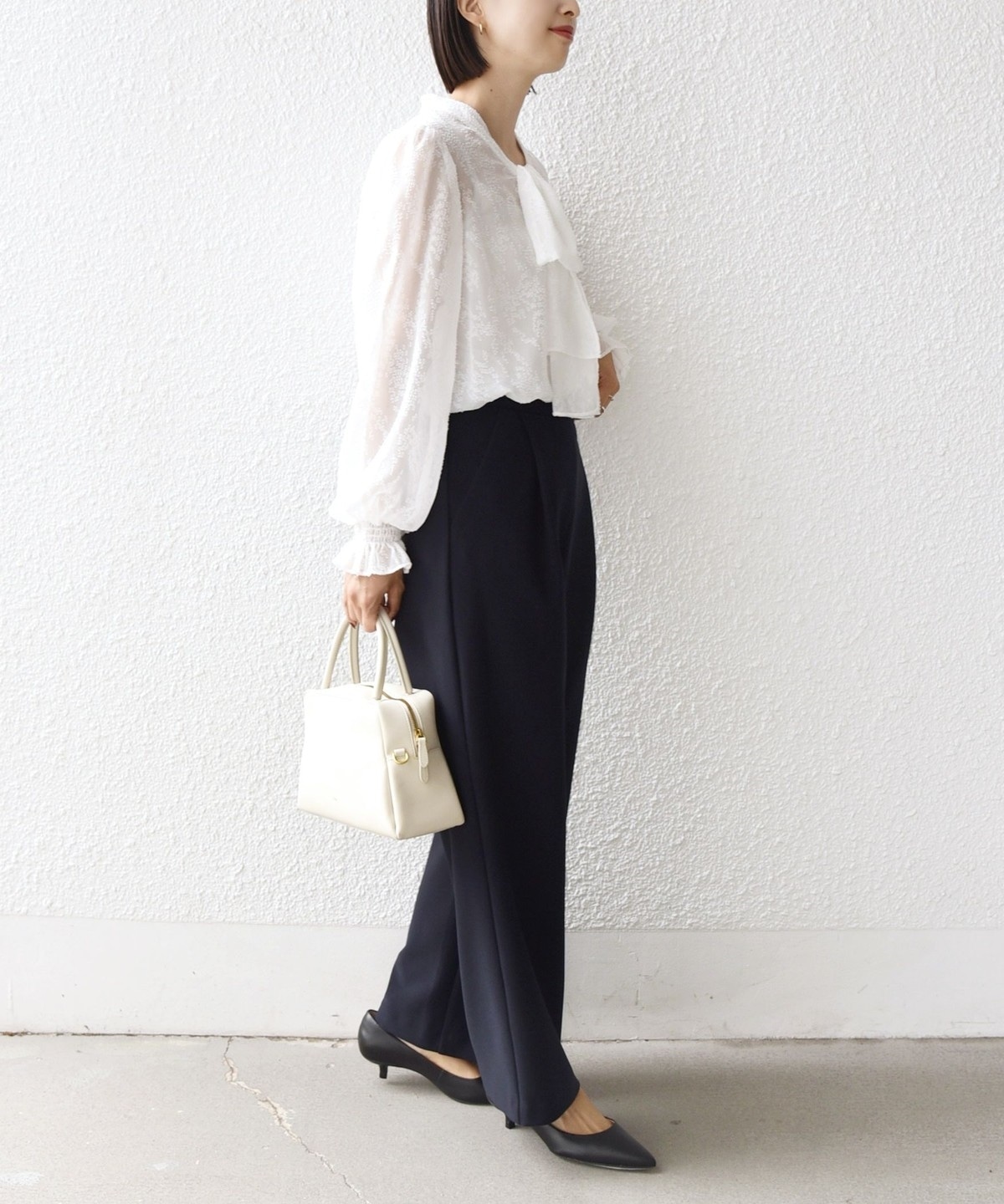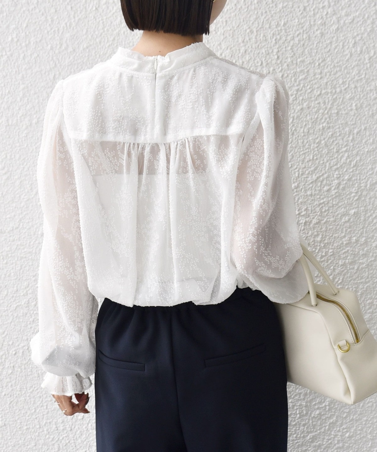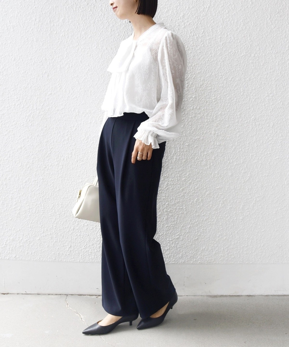 透け感とボウタイデザインで上品に仕上がるシアーブラウス