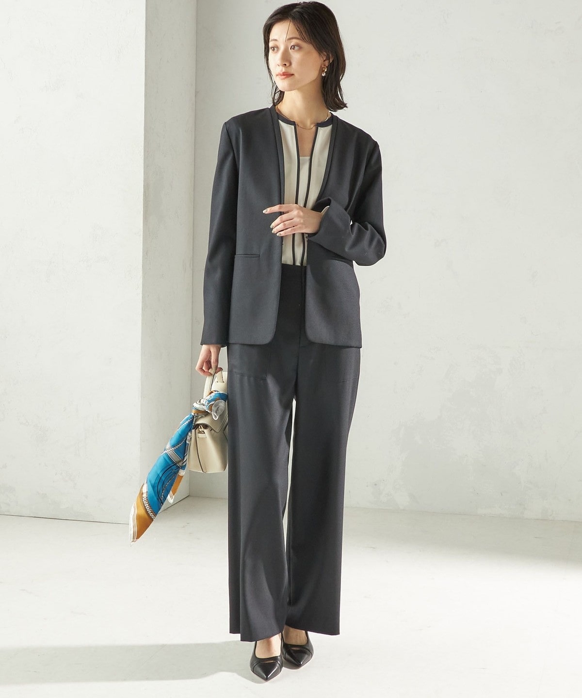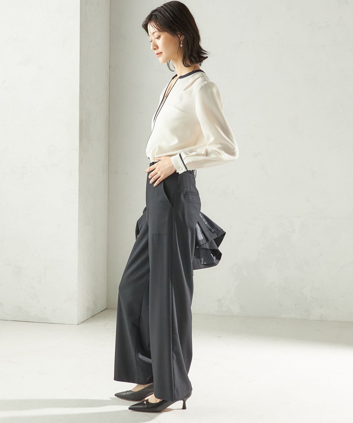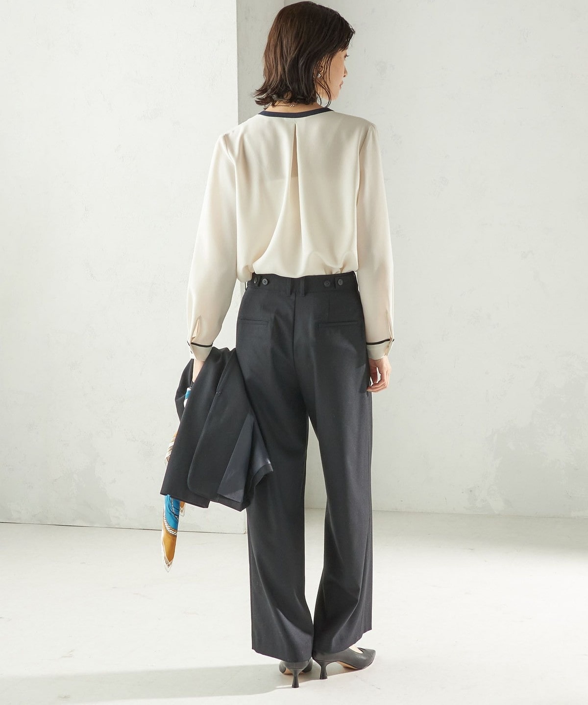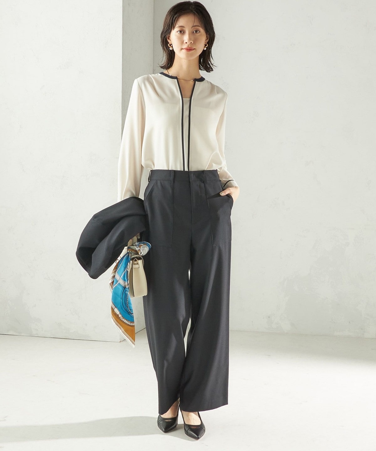 ジャケット合わせはもちろん、スカート、パンツにもバランスよく着回しが出来ます。