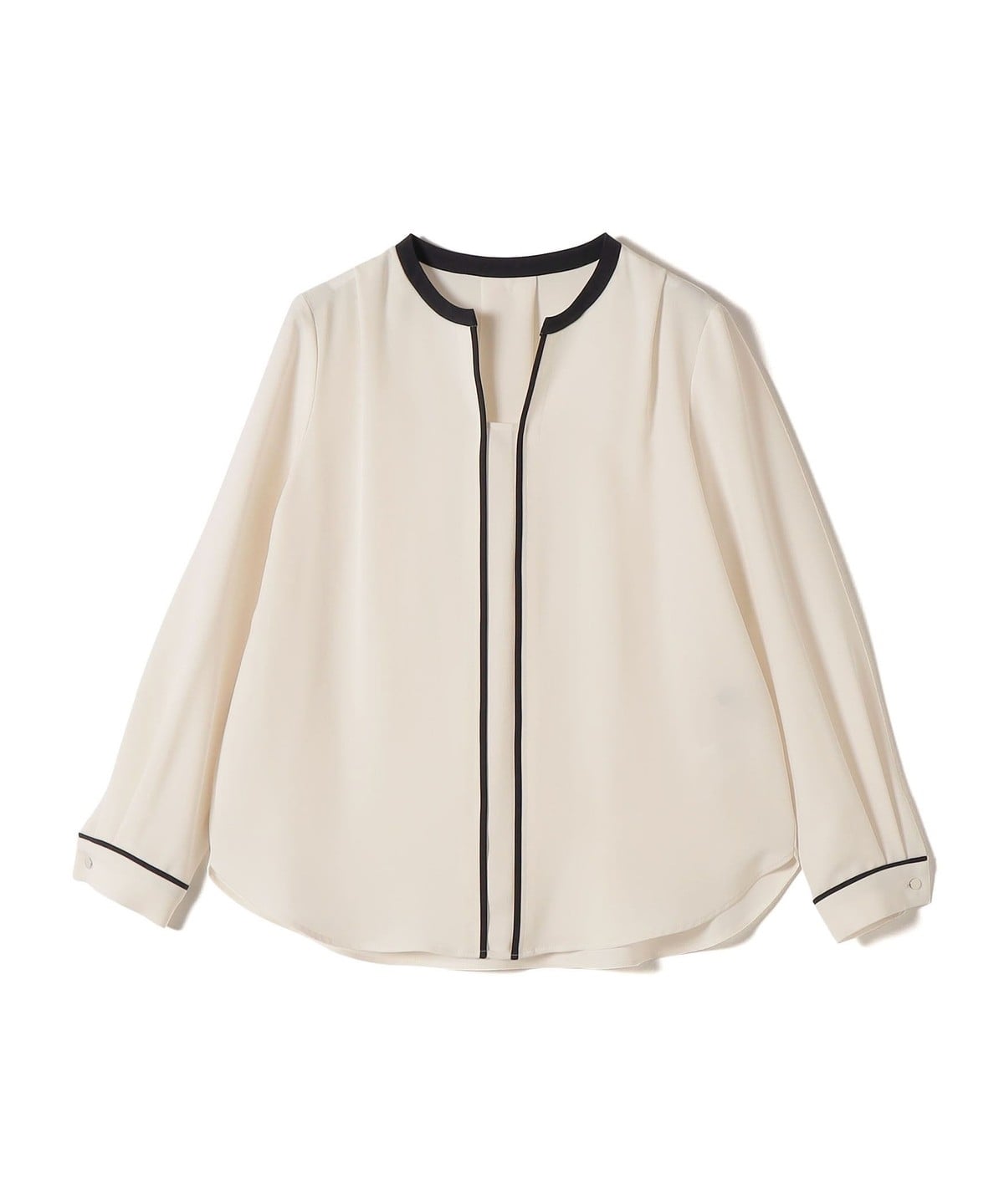 2. 〈手洗い可能〉配色 パイピング キーネック 長袖ブラウス オフホワイト