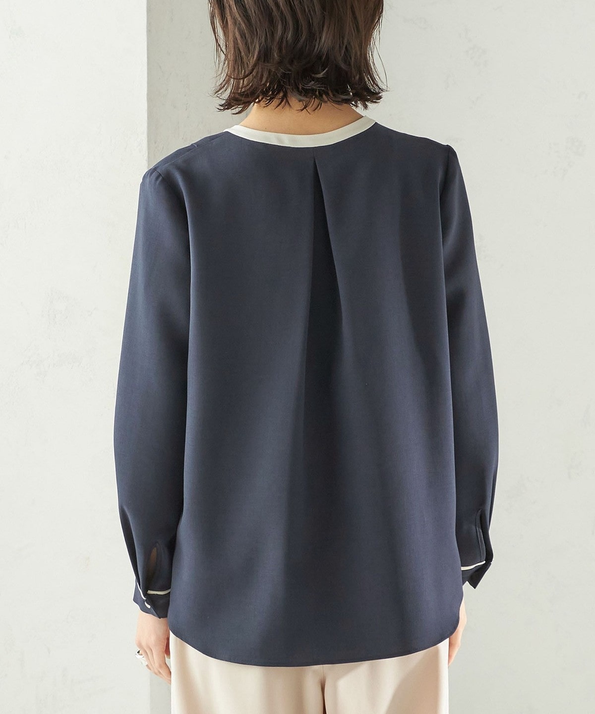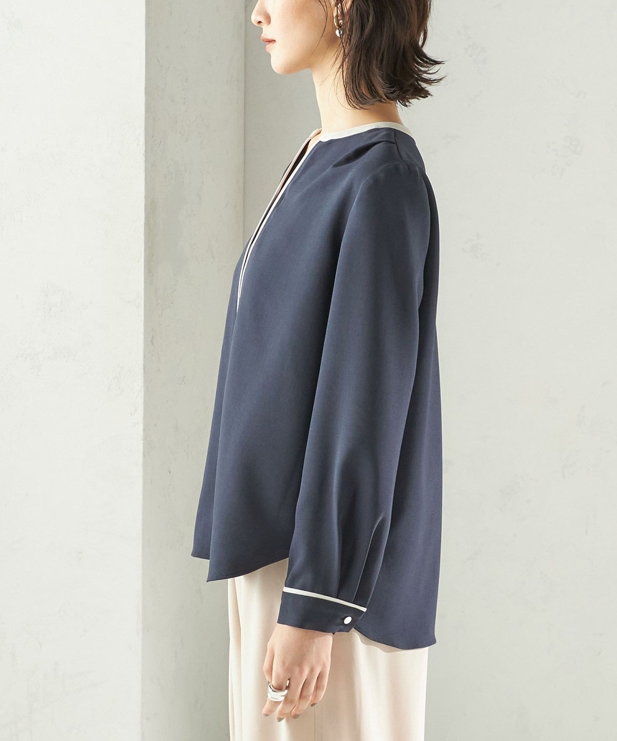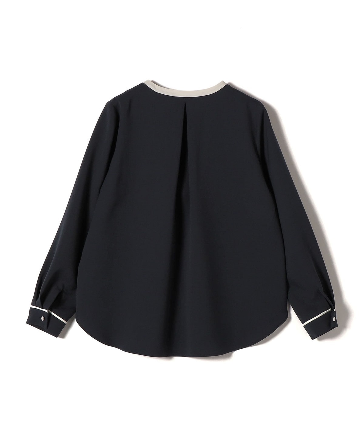 8. 〈手洗い可能〉配色 パイピング キーネック 長袖ブラウス