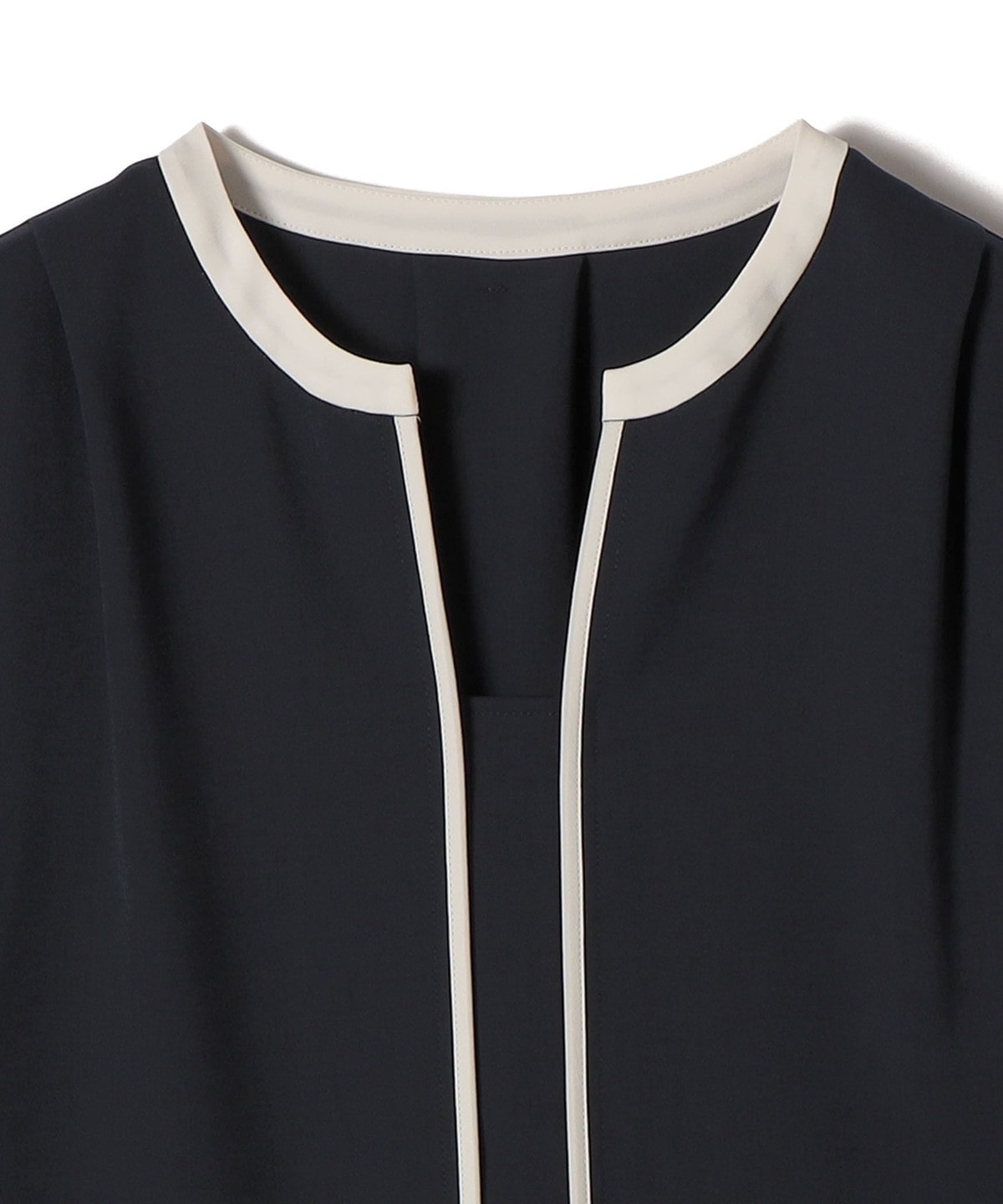 33. 〈手洗い可能〉配色 パイピング キーネック 長袖ブラウス