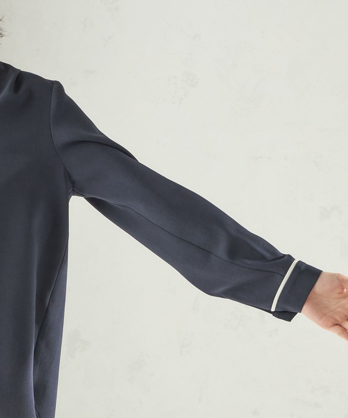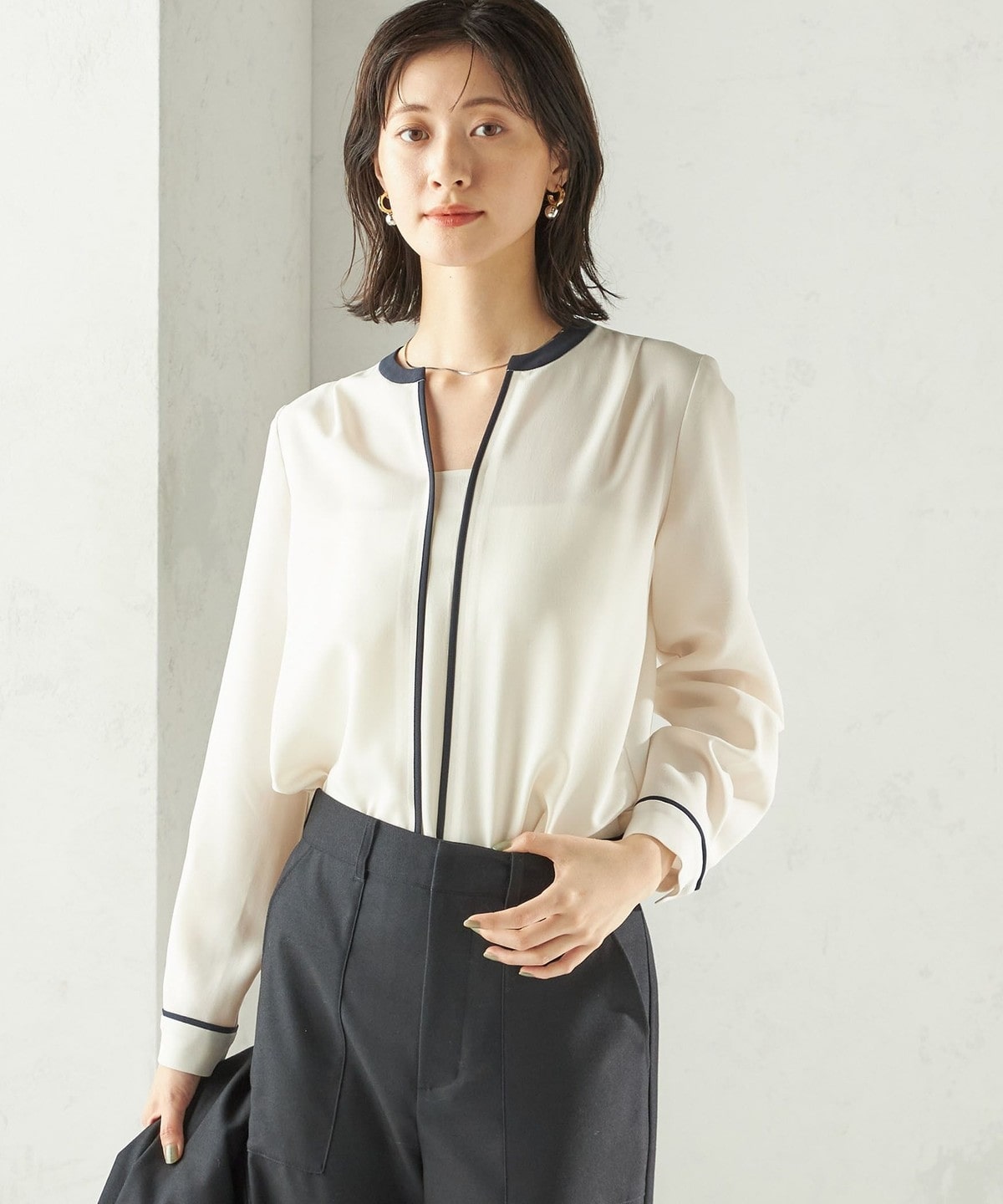 10. 〈手洗い可能〉配色 パイピング キーネック 長袖ブラウス