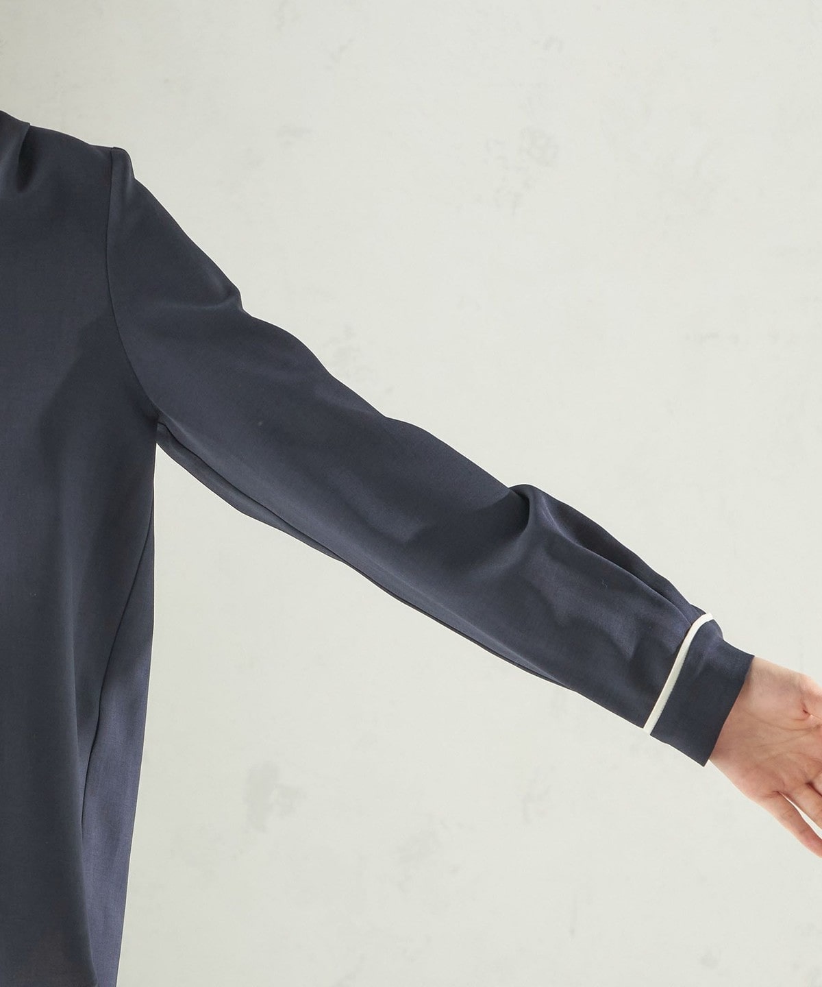 ジャケットを羽織って、もたつかない袖のボリュームもこだわりました。