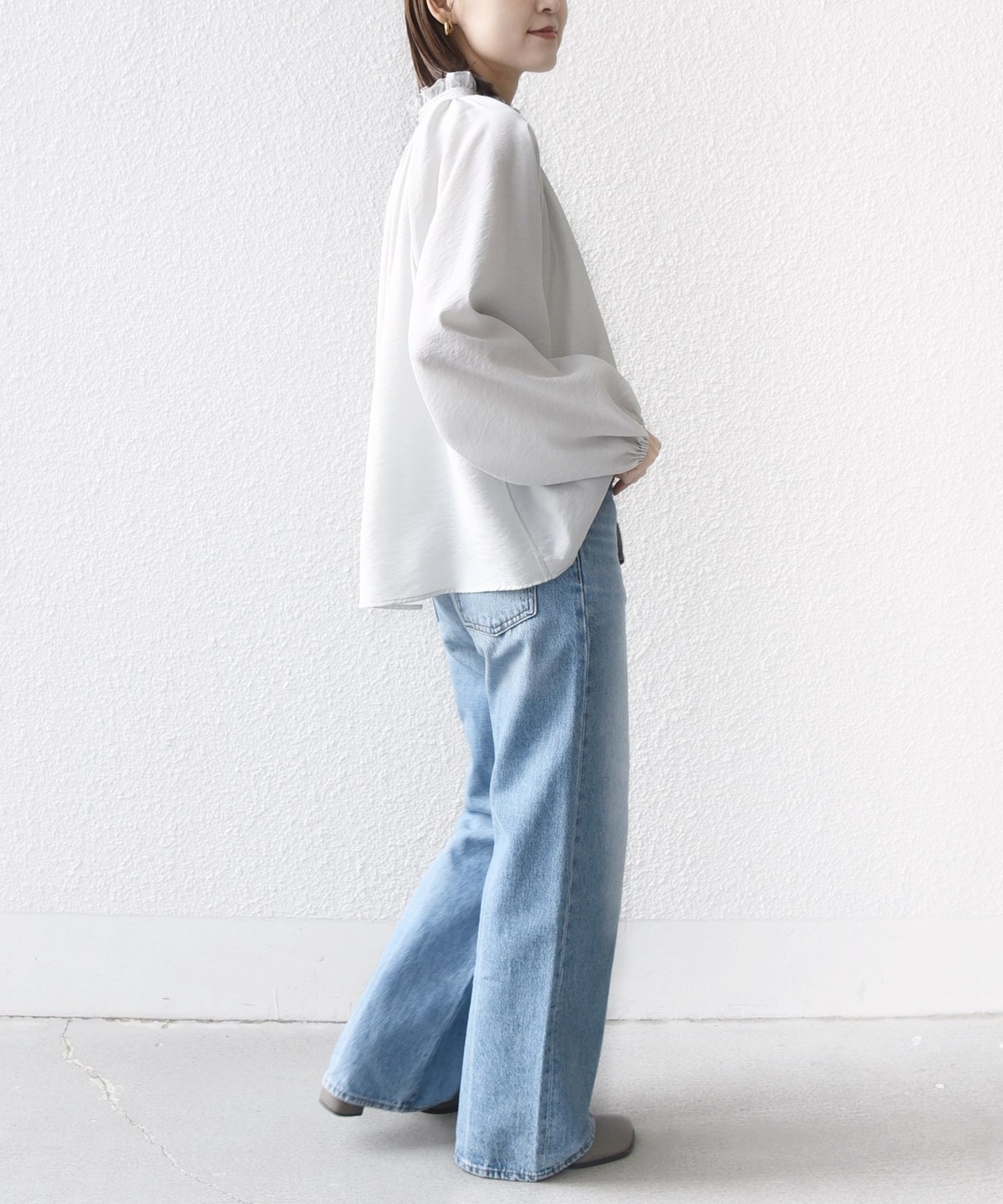 袖のふわっとしたボリュームも着映えするデザインです。