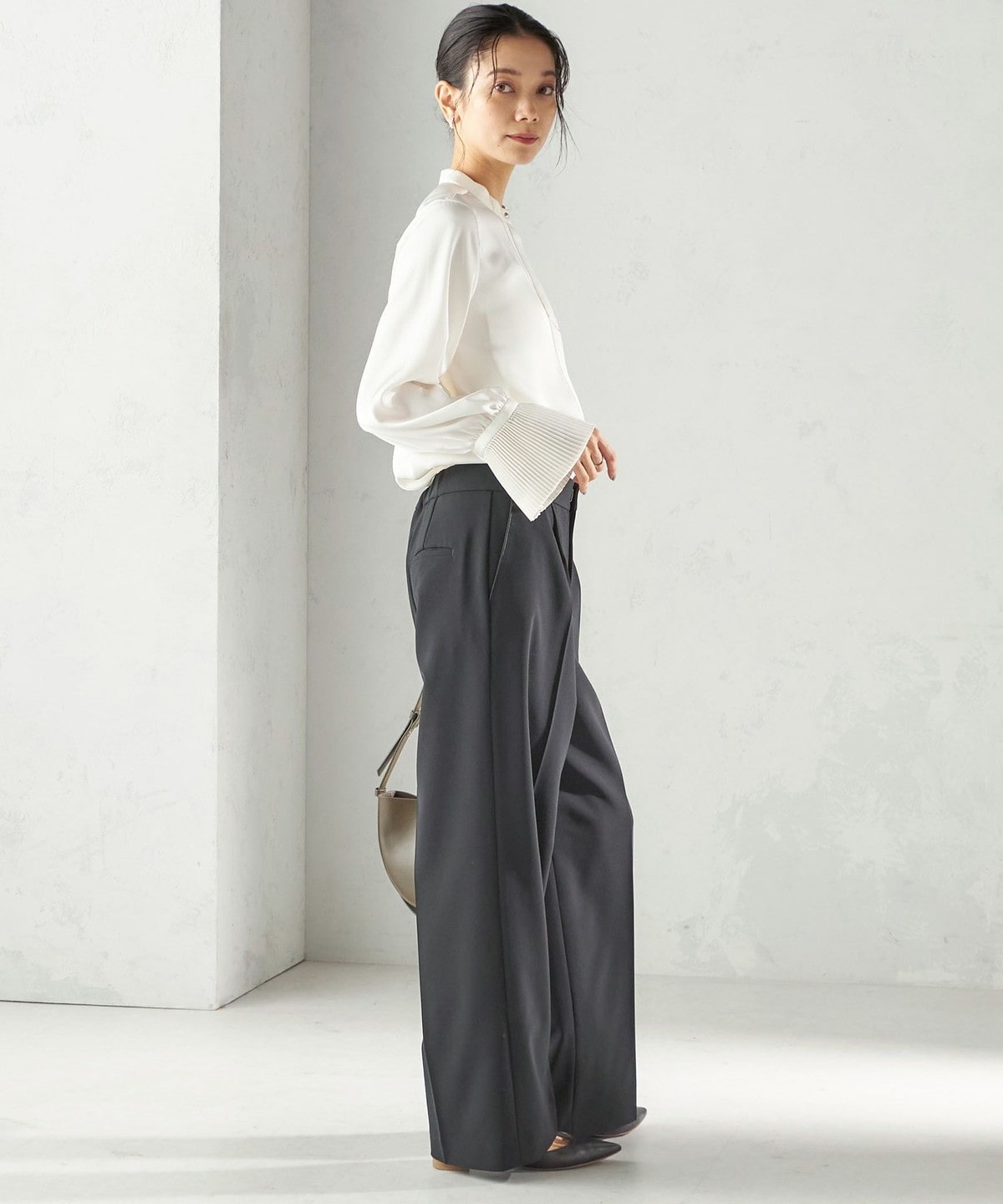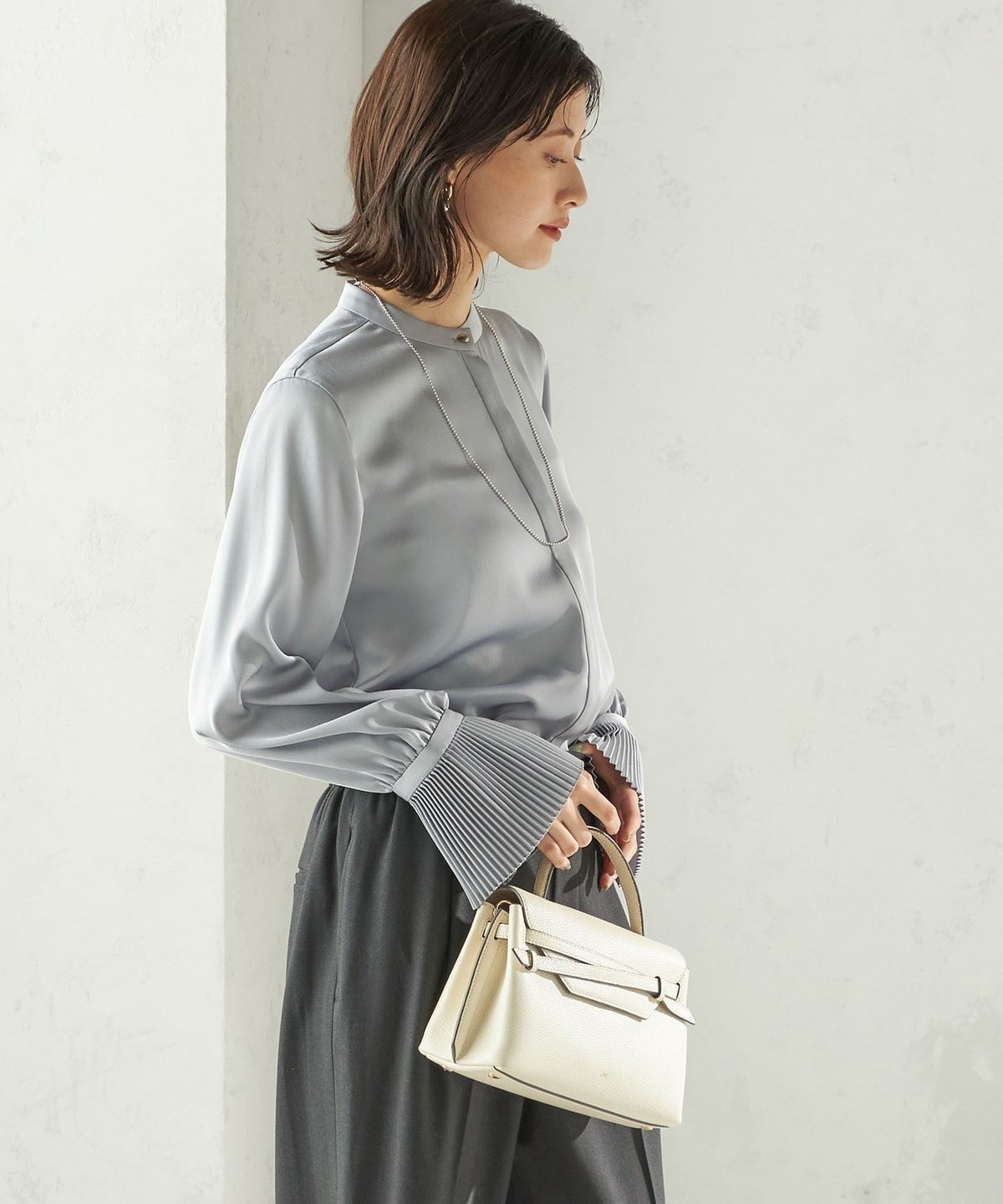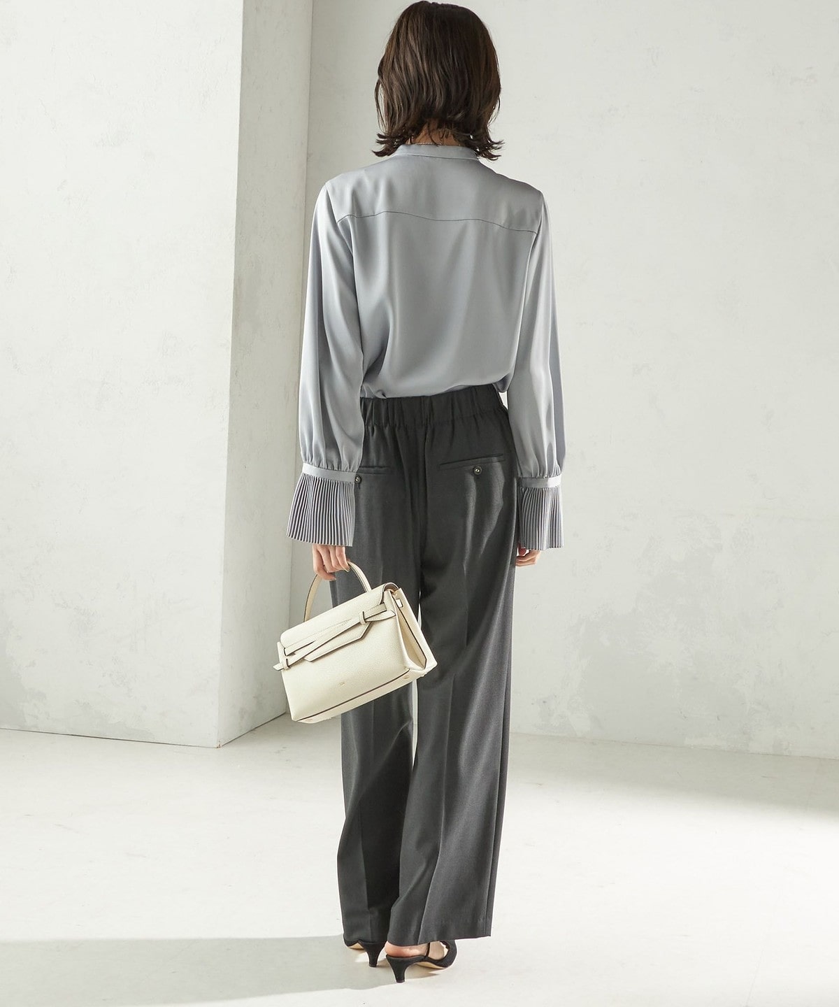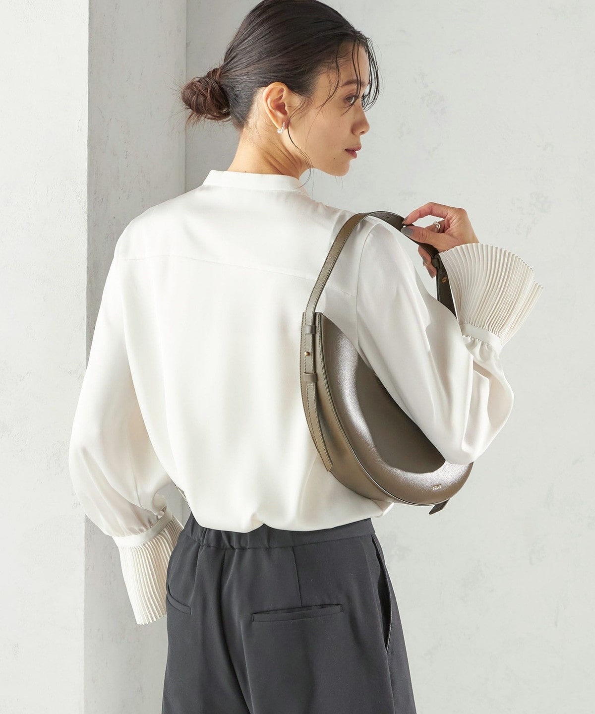袖口の細やかなプリーツが動くたびに表情を生み、シンプルながらも印象的な一枚です。