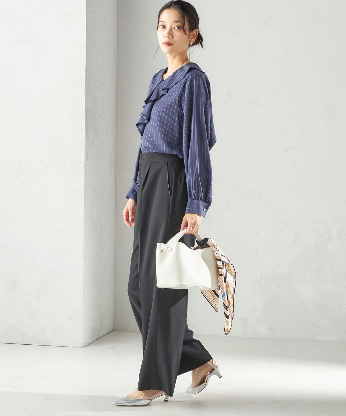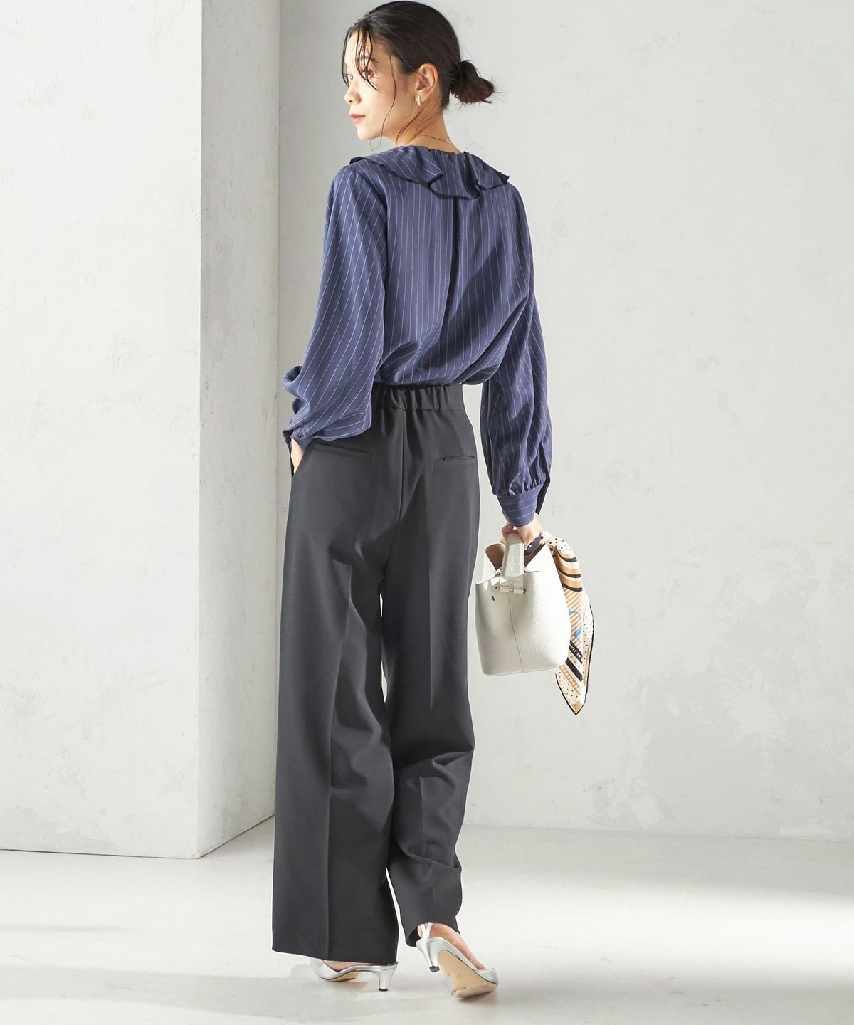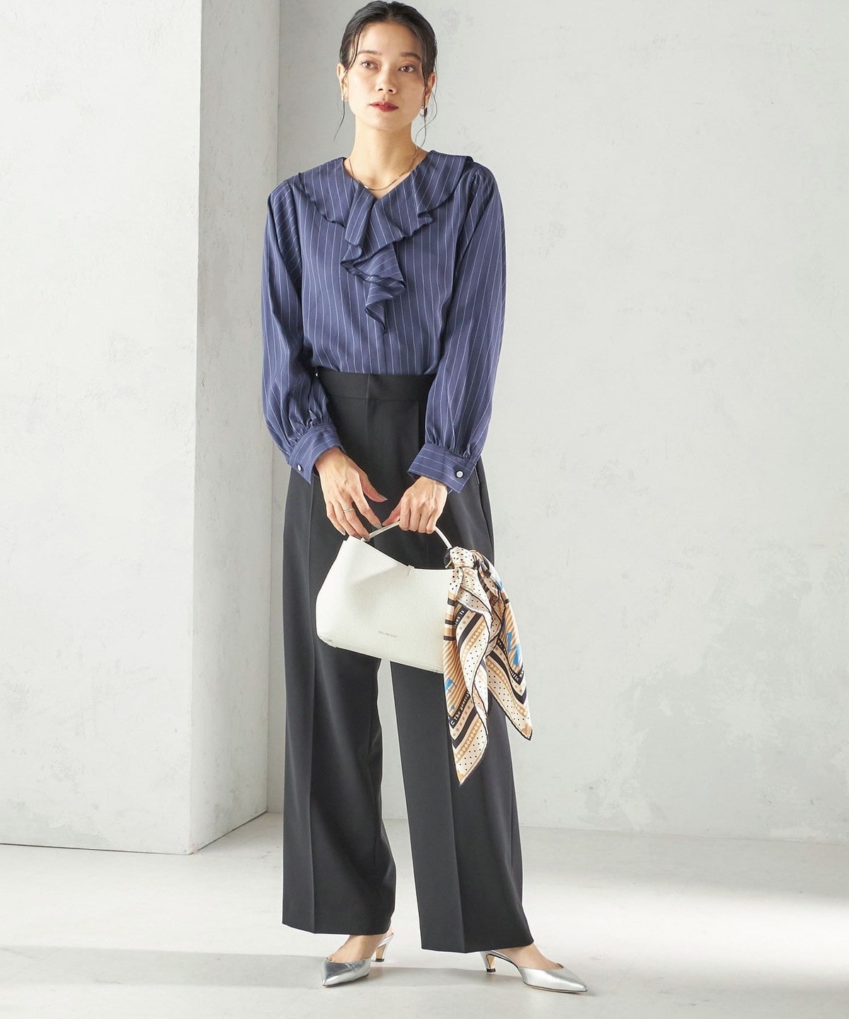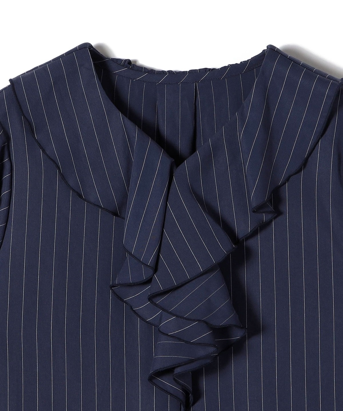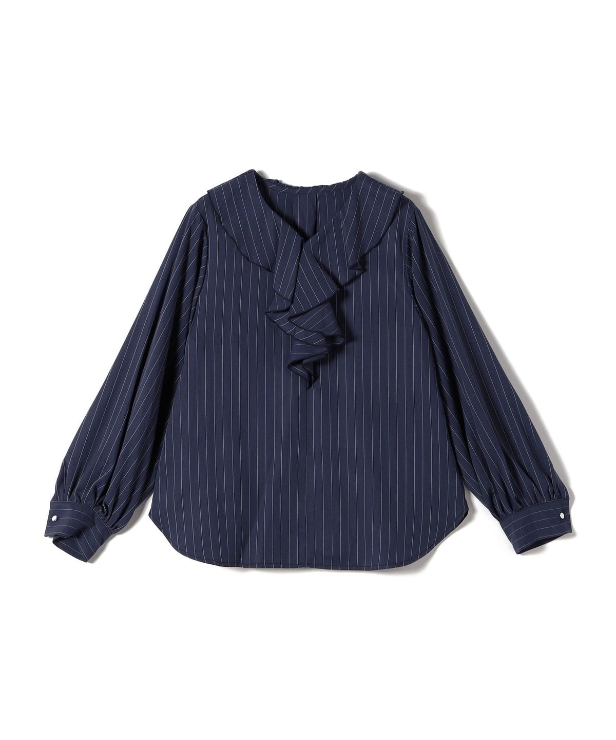 1. 《予約》〈手洗い可能〉フィブリル ストライプ フリル カラー ブラウス ネイビー