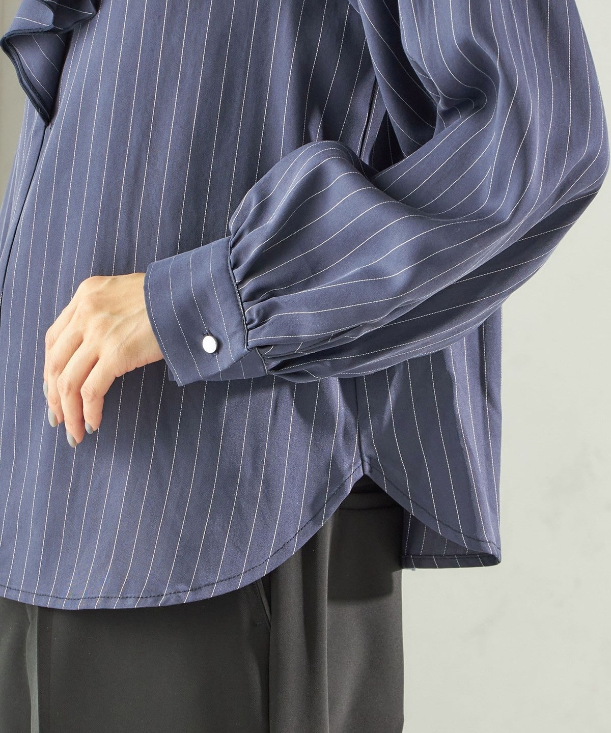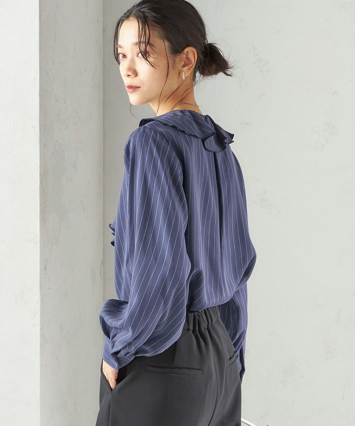 12. 《予約》〈手洗い可能〉フィブリル ストライプ フリル カラー ブラウス