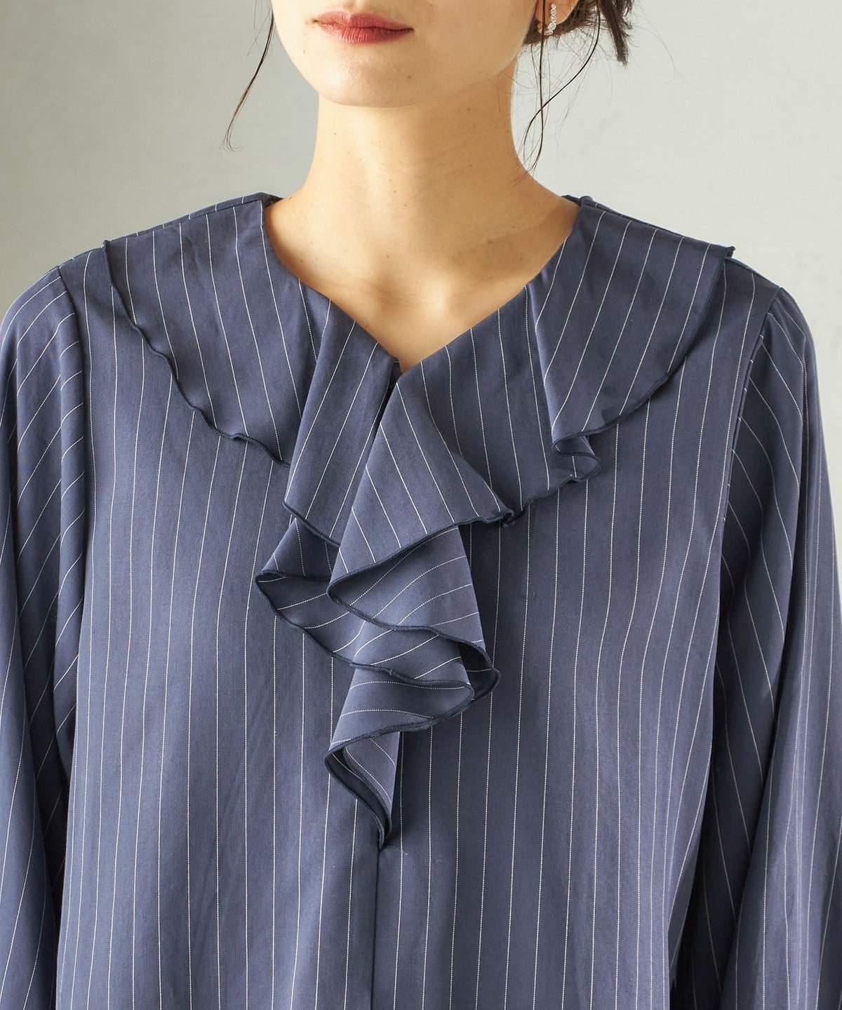 10. 《予約》〈手洗い可能〉フィブリル ストライプ フリル カラー ブラウス