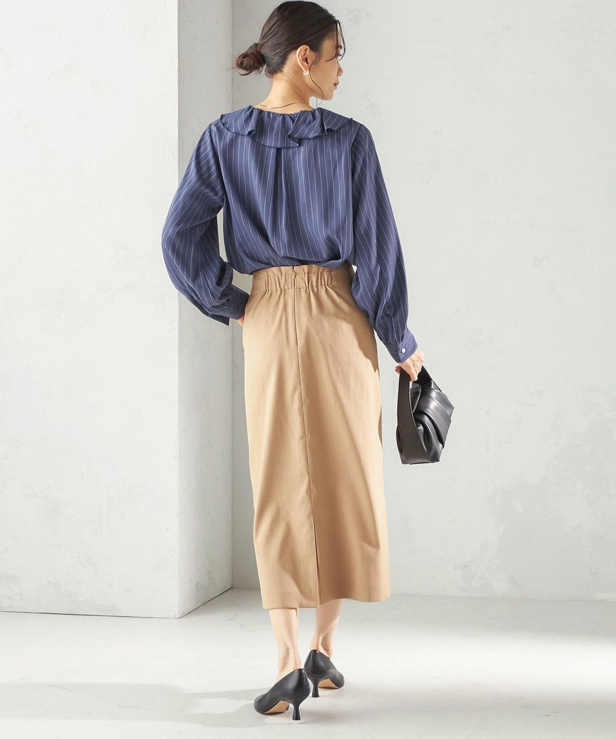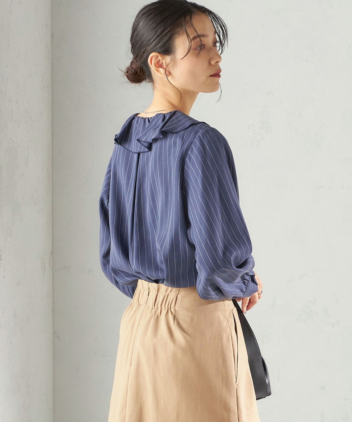 21. 《予約》〈手洗い可能〉フィブリル ストライプ フリル カラー ブラウス