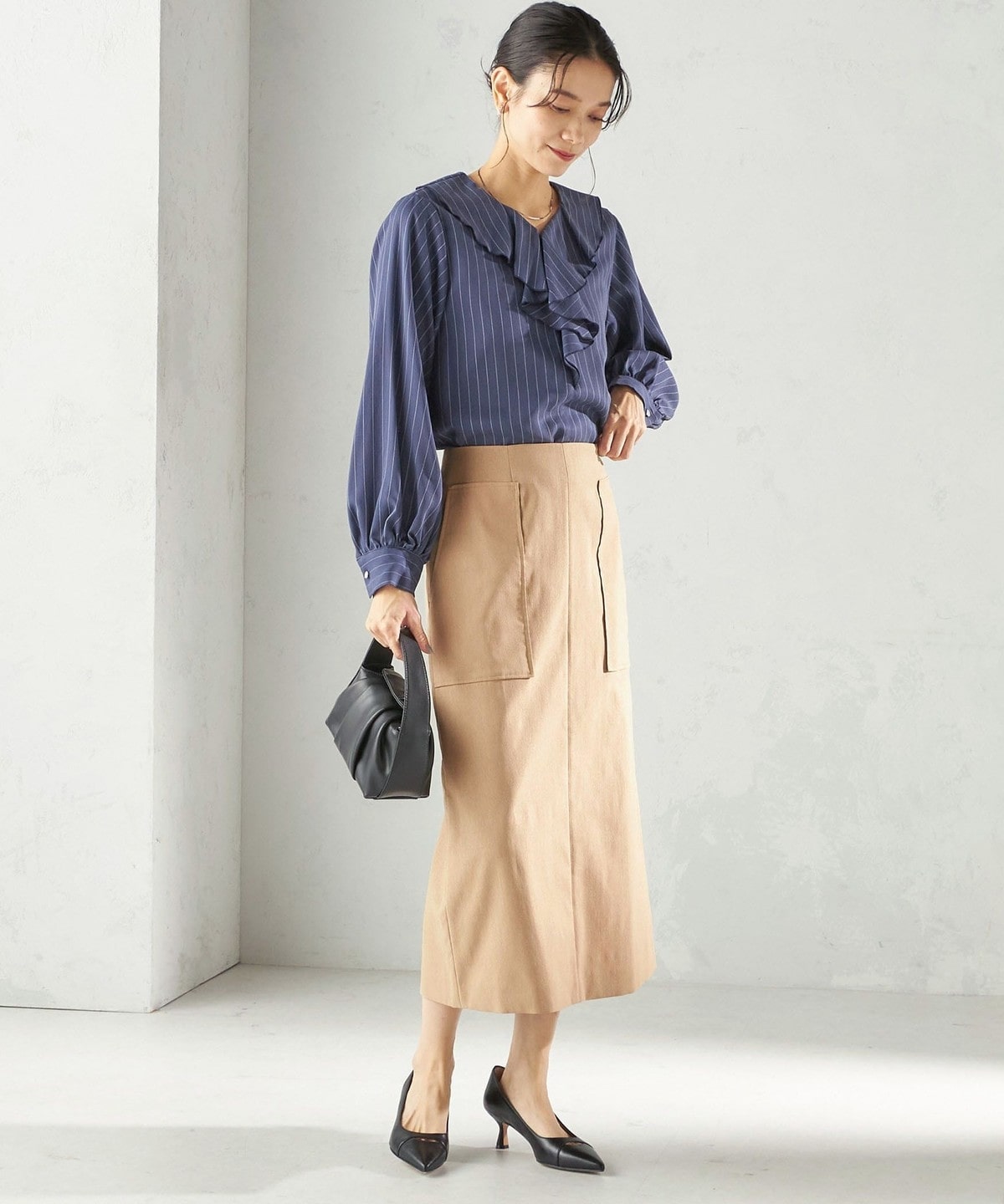 一枚でもレイヤードでも映える ストライプフリルブラウス