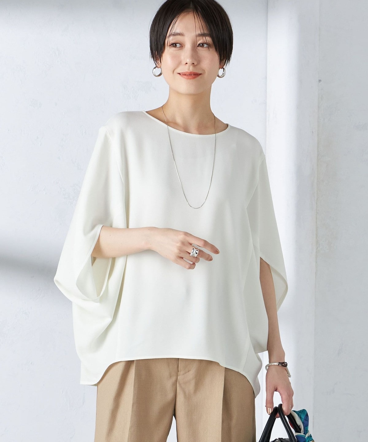 3. 〈接触冷感 / 手洗い可能〉アセテート混 バック サテン ドルマン ブラウス ホワイト