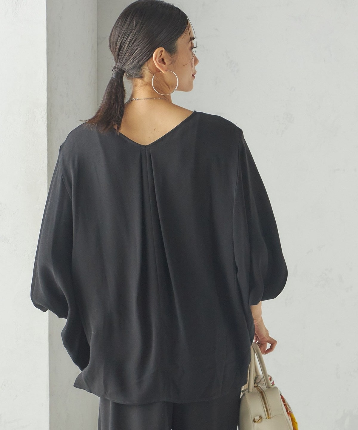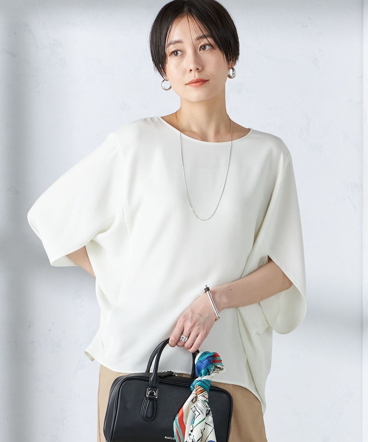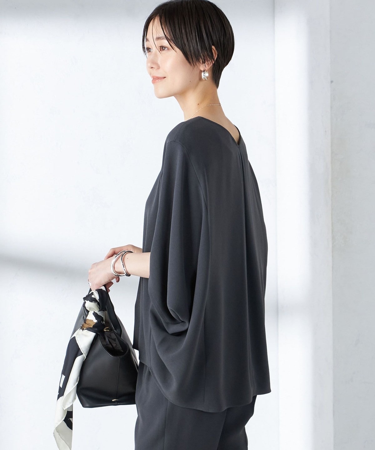 34. 〈接触冷感 / 手洗い可能〉アセテート混 バック サテン ドルマン ブラウス