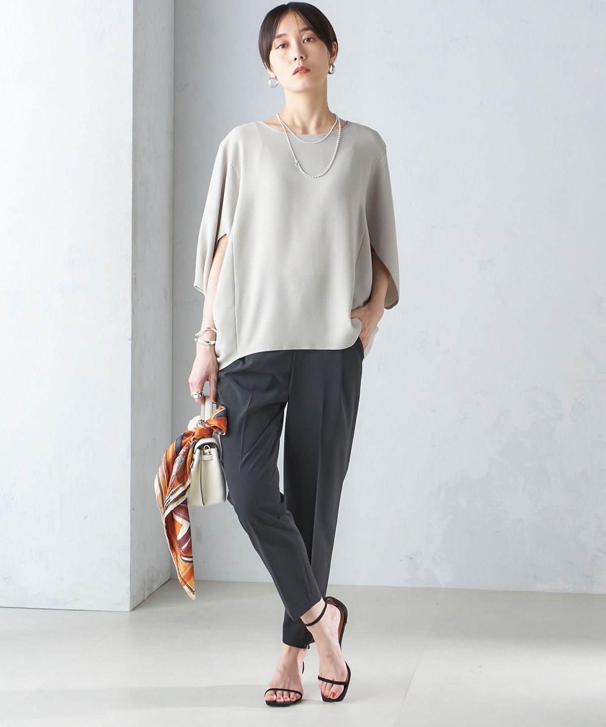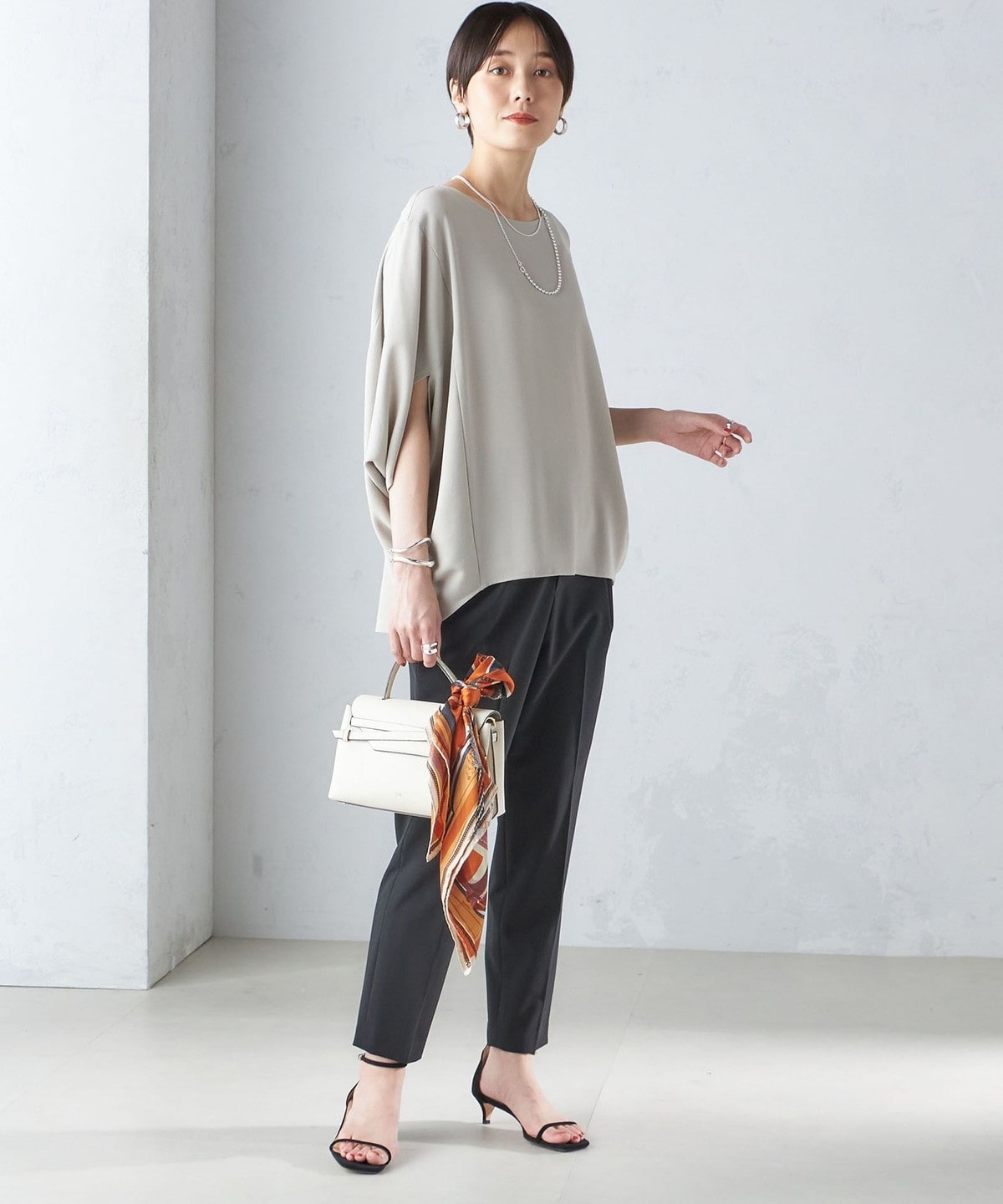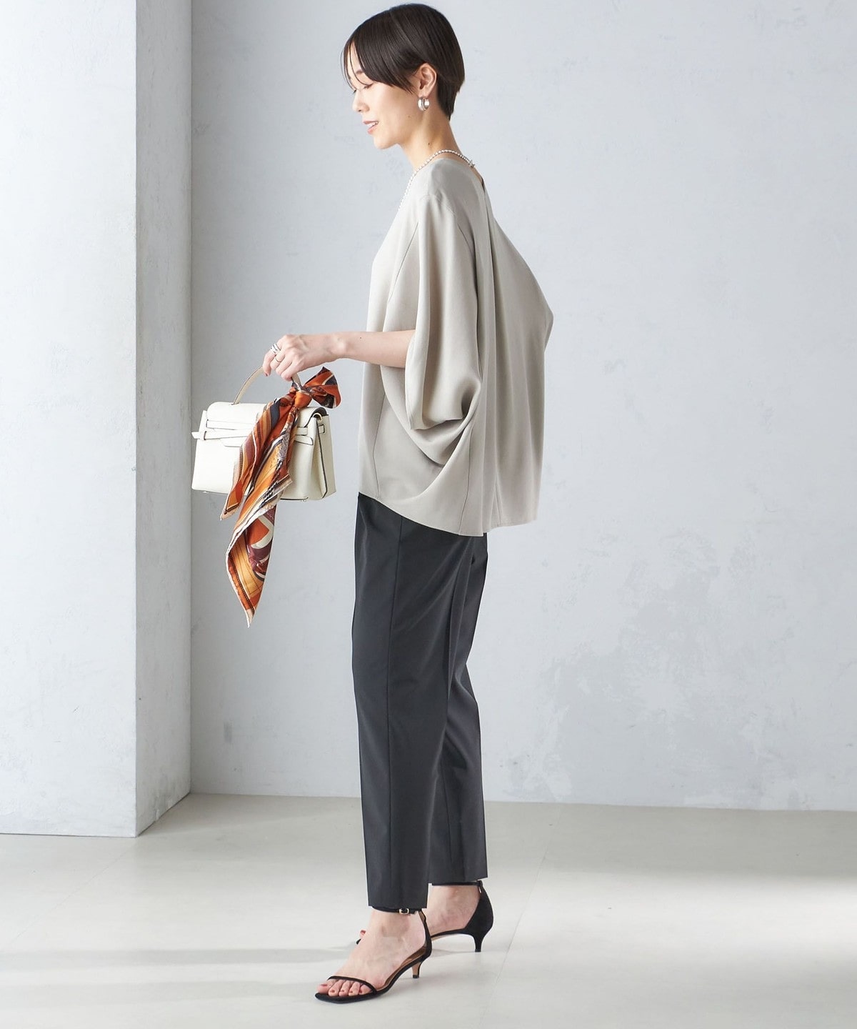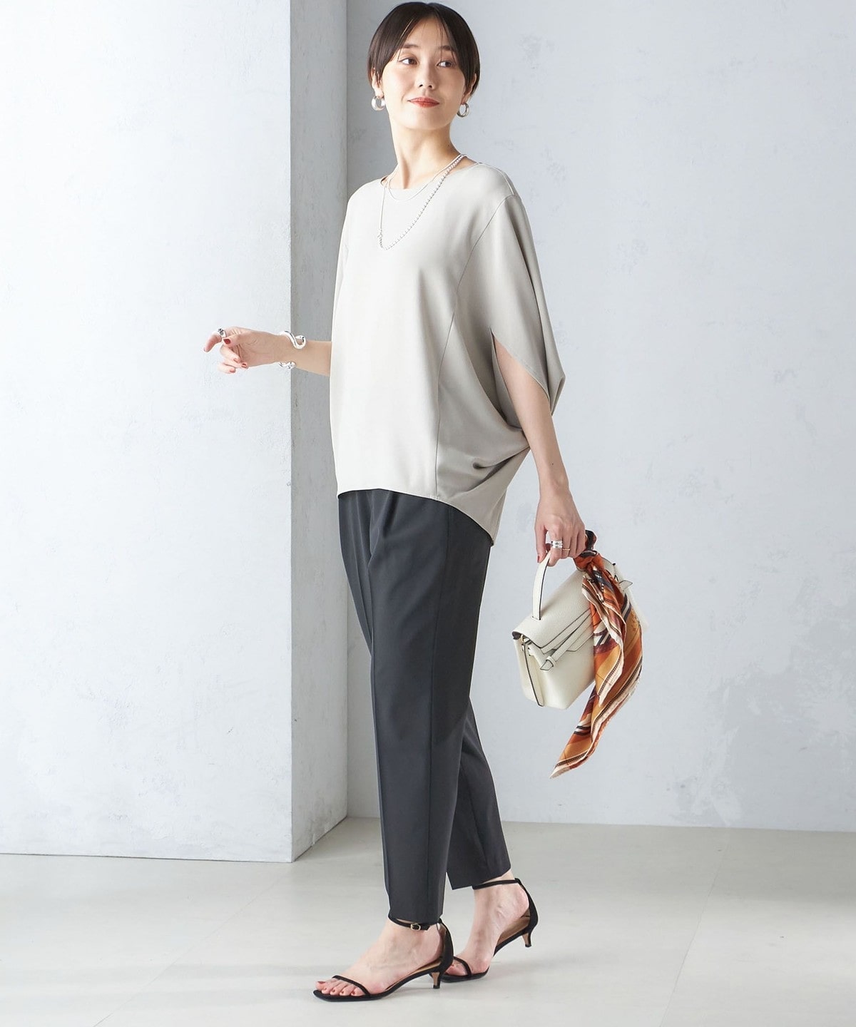 34. 〈接触冷感 / 手洗い可能〉アセテート混 バック サテン ドルマン ブラウス