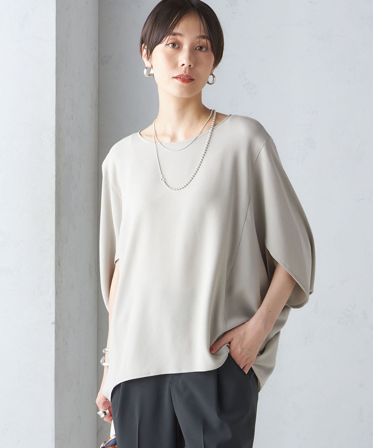 2. 〈接触冷感 / 手洗い可能〉アセテート混 バック サテン ドルマン ブラウス ライトグレー