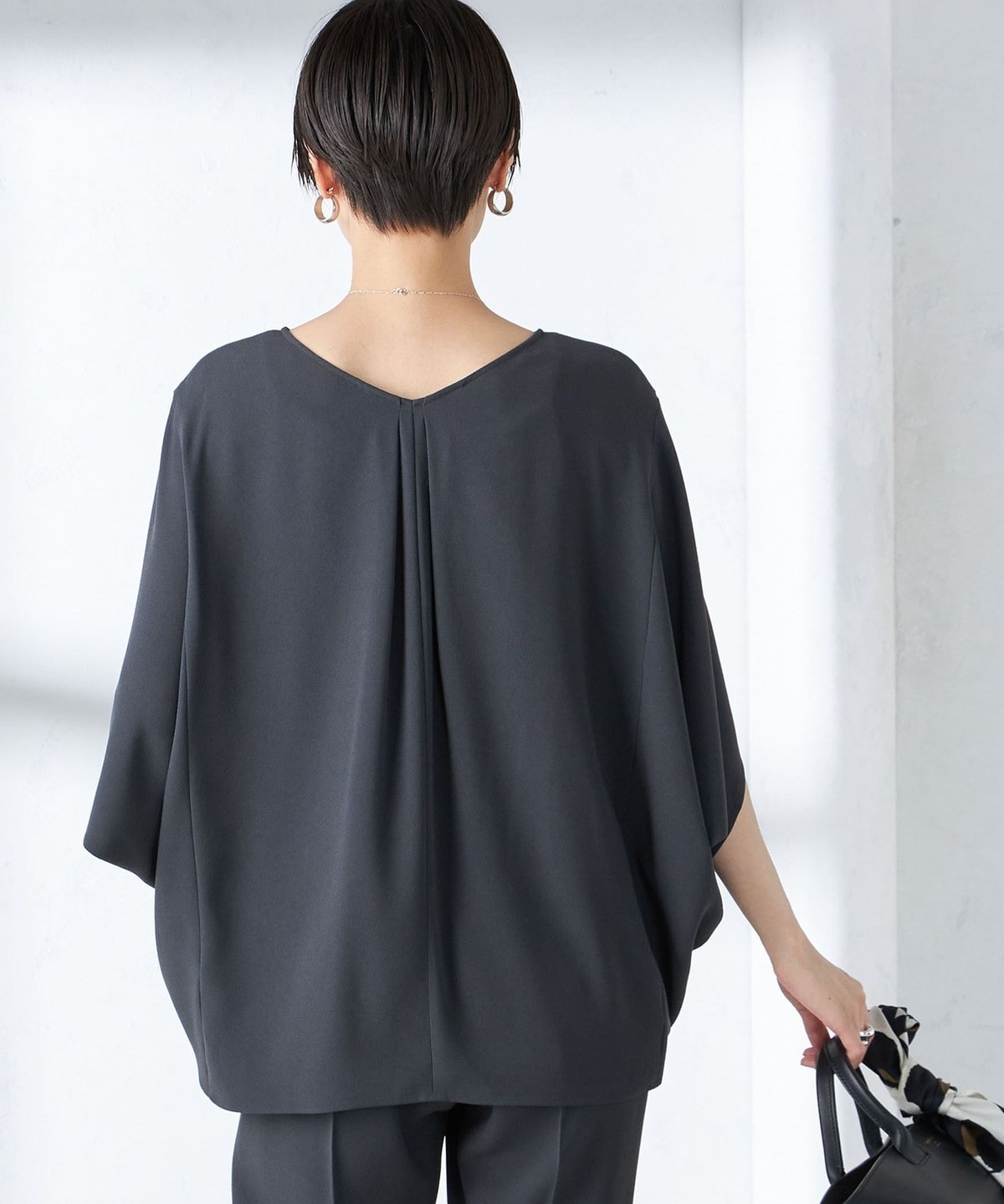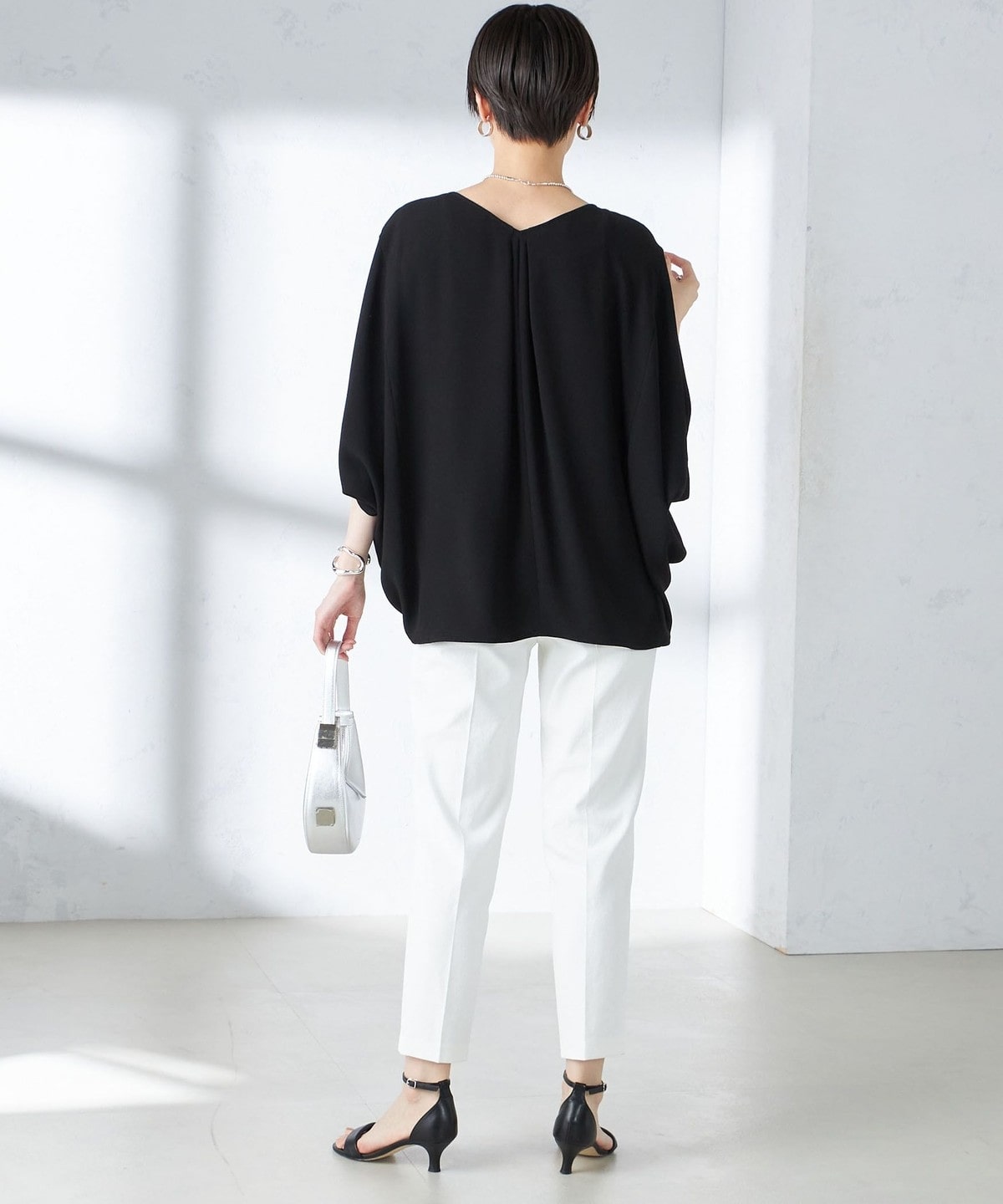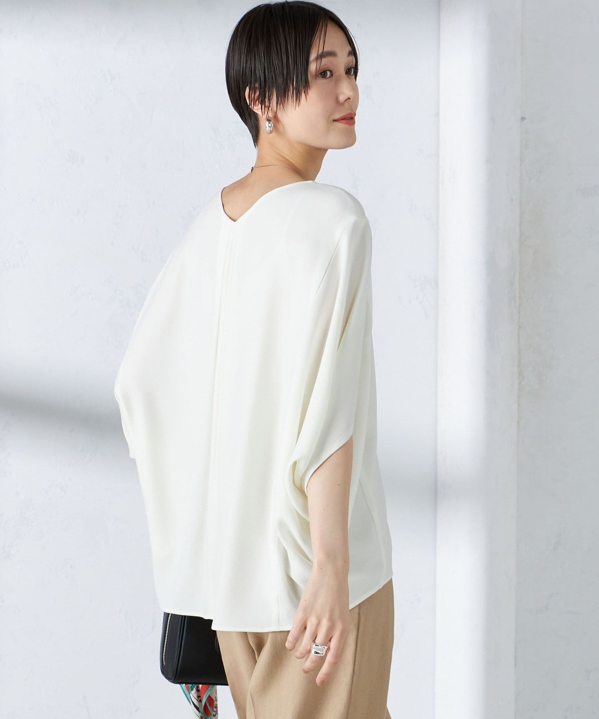 8. 〈接触冷感 / 手洗い可能〉アセテート混 バック サテン ドルマン ブラウス