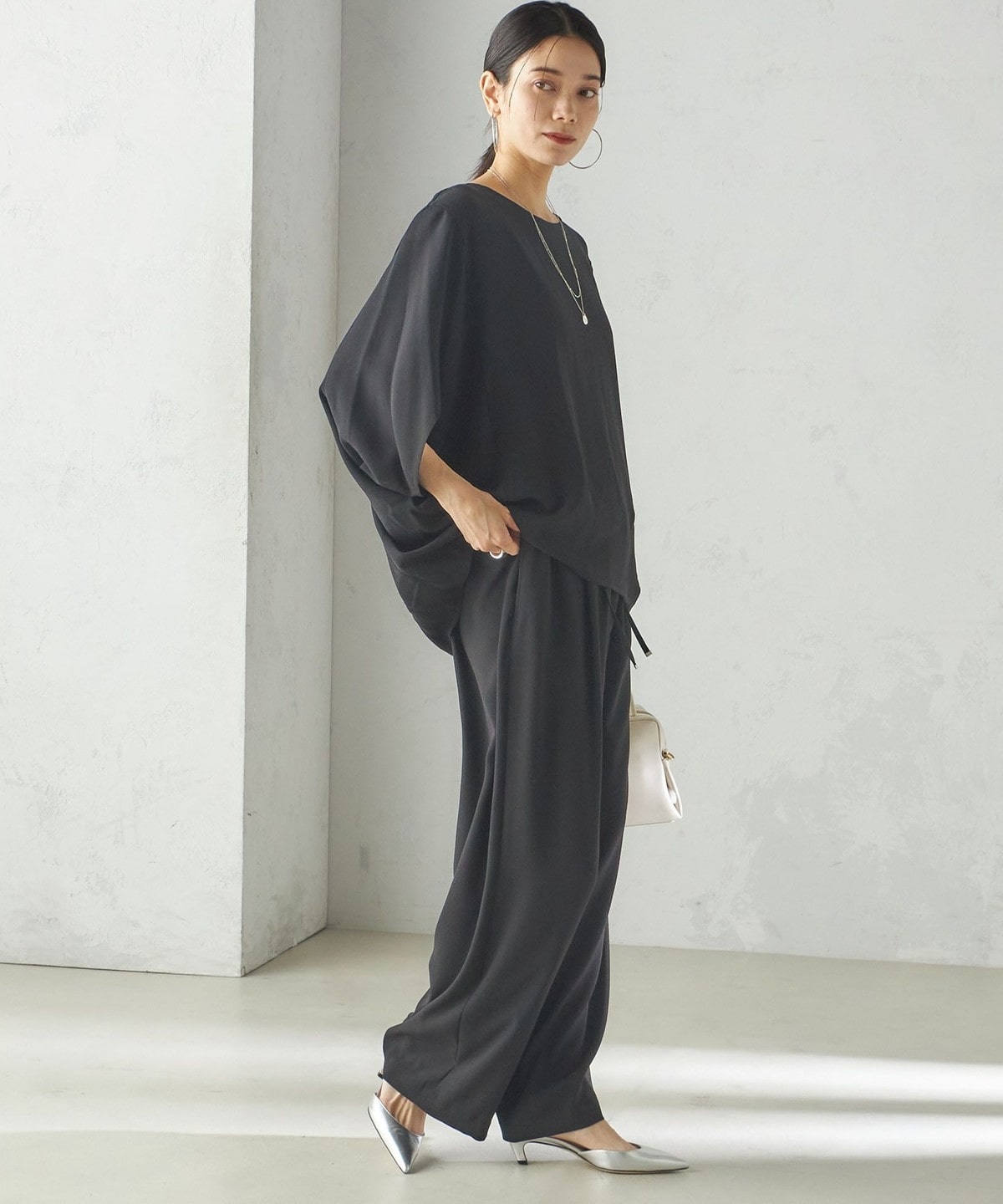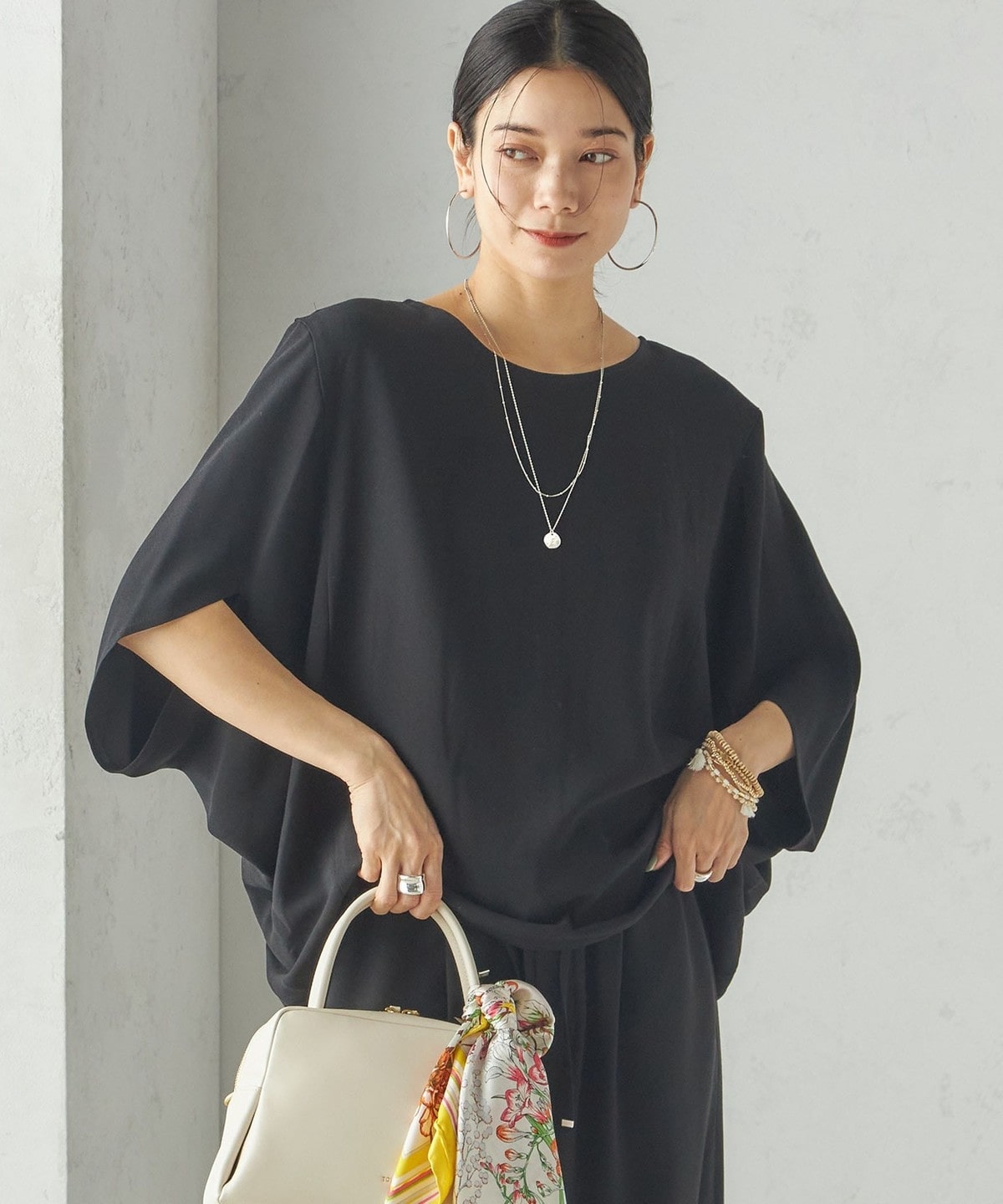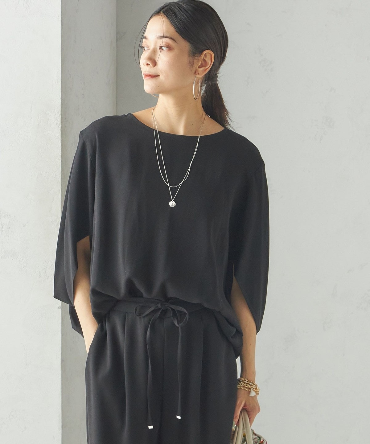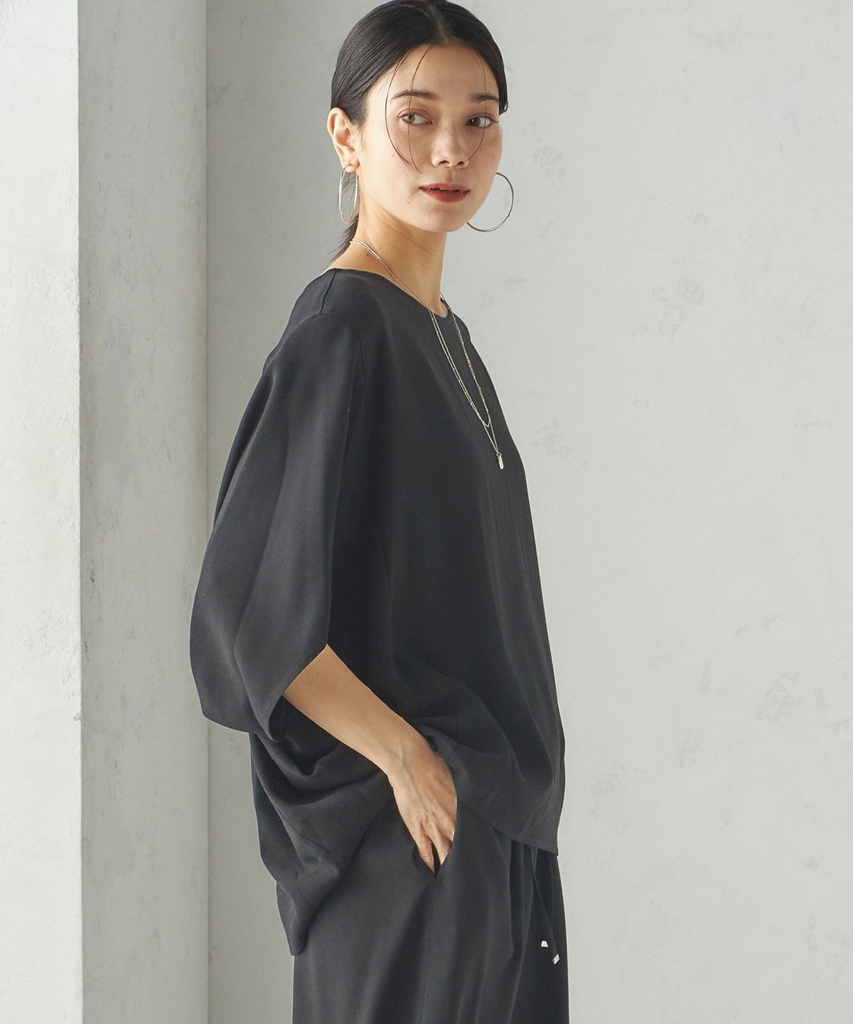 4. 〈接触冷感 / 手洗い可能〉アセテート混 バック サテン ドルマン ブラウス ブラック