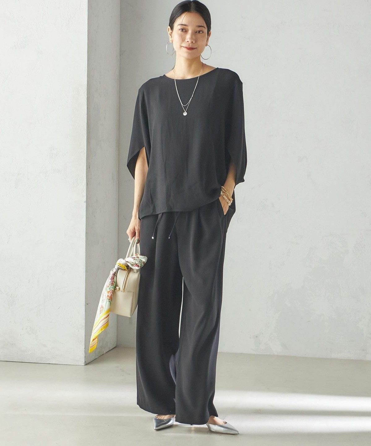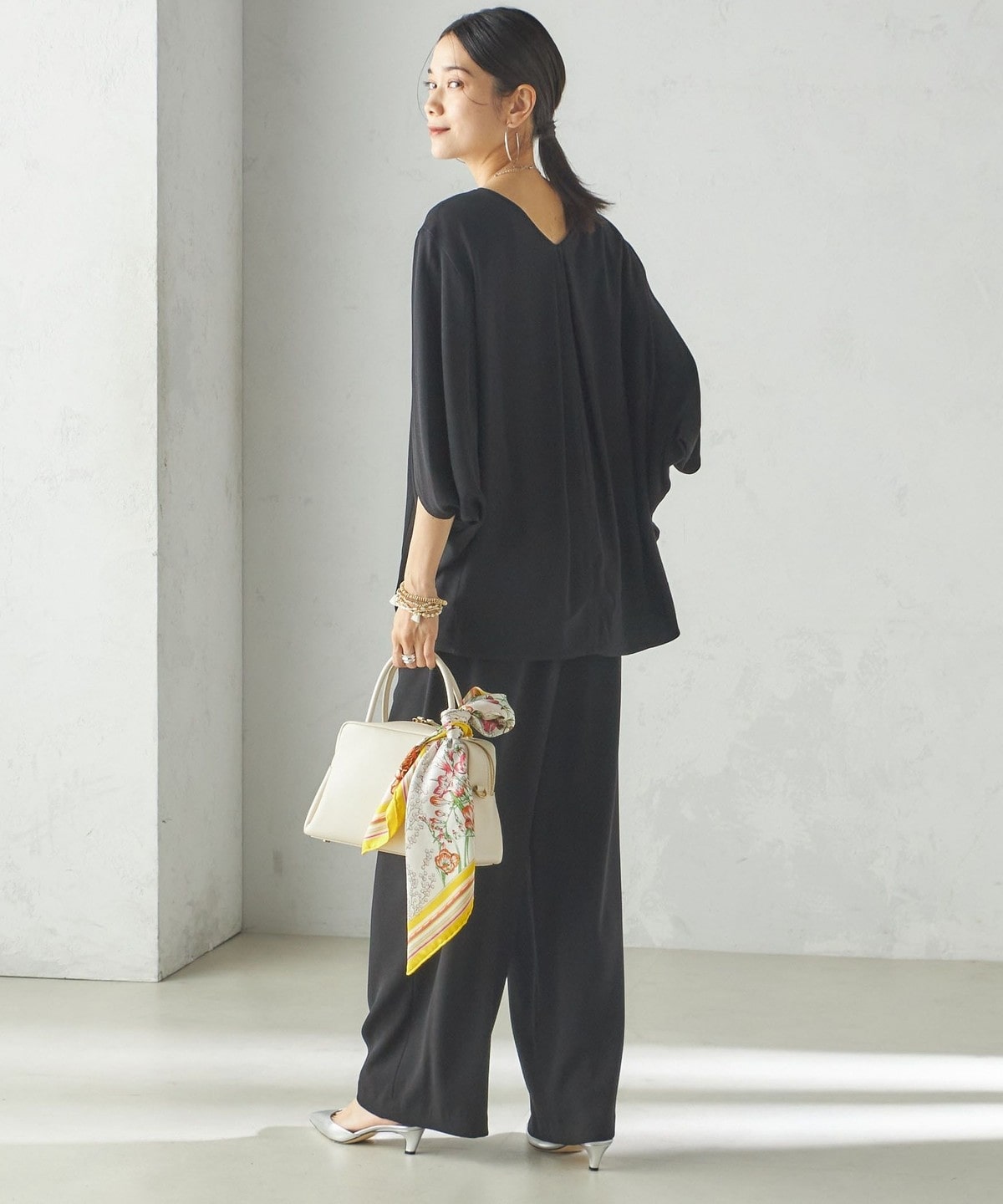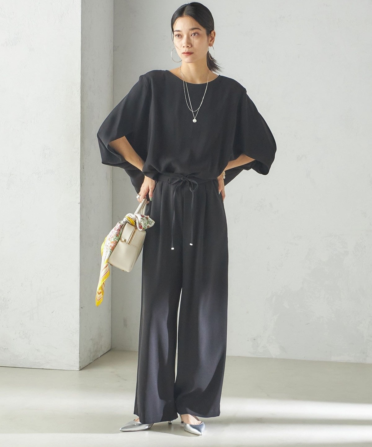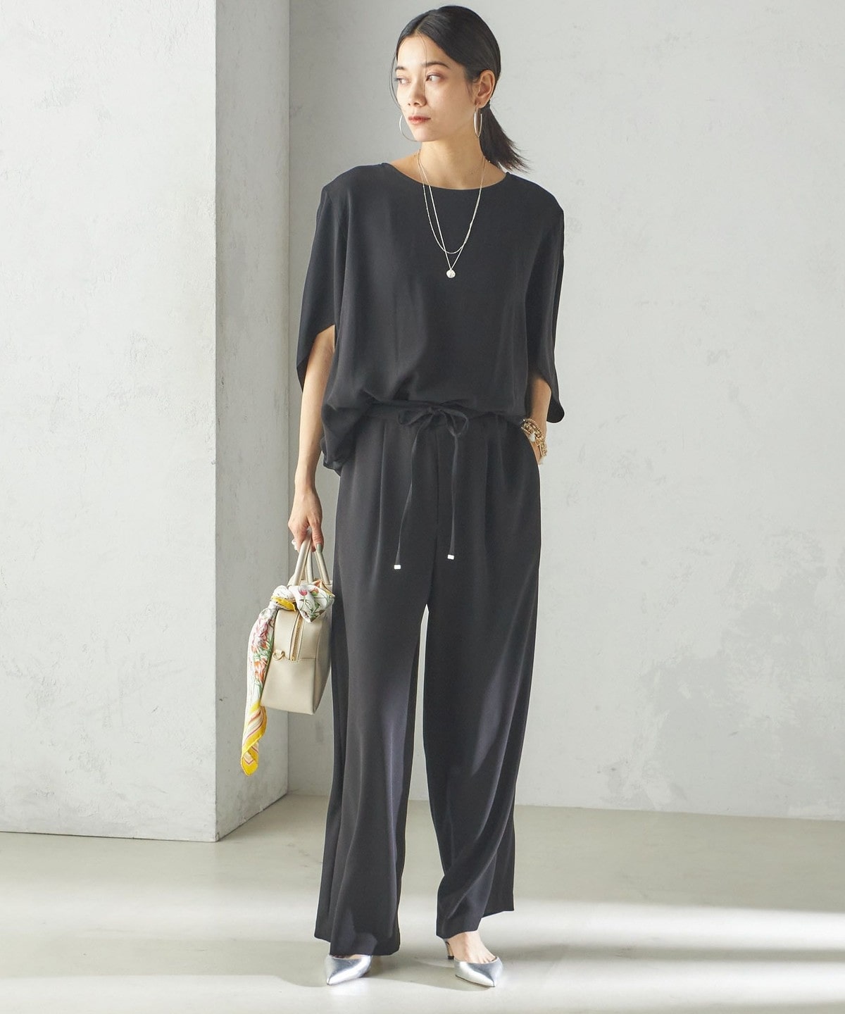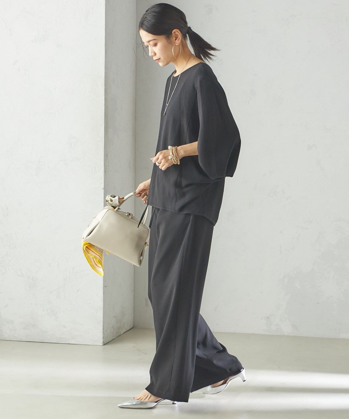 4. 〈接触冷感 / 手洗い可能〉アセテート混 バック サテン ドルマン ブラウス ブラック