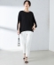 フロントにハギがなく上品なデザインのため、ロングネックレスなどアクセサリーが映えます。