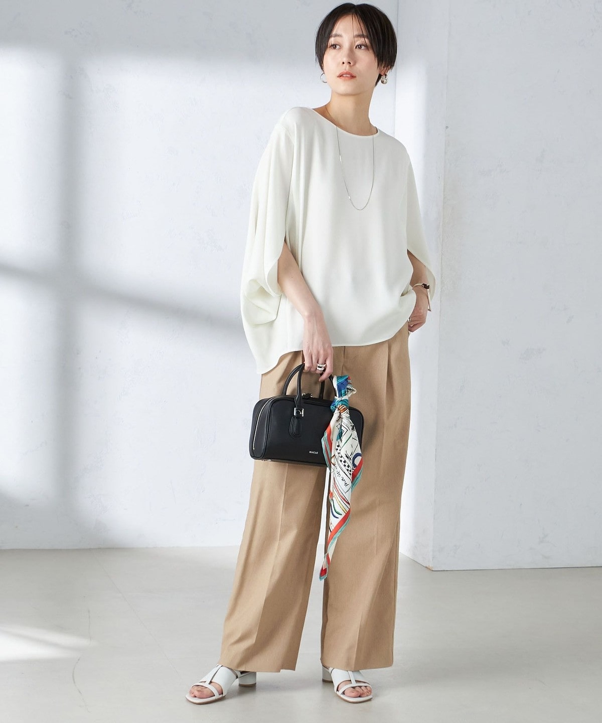 上品なケープシルエットと落ち感のある素材が女性らしいブラウスに新色「ベージュ」カラー登場!