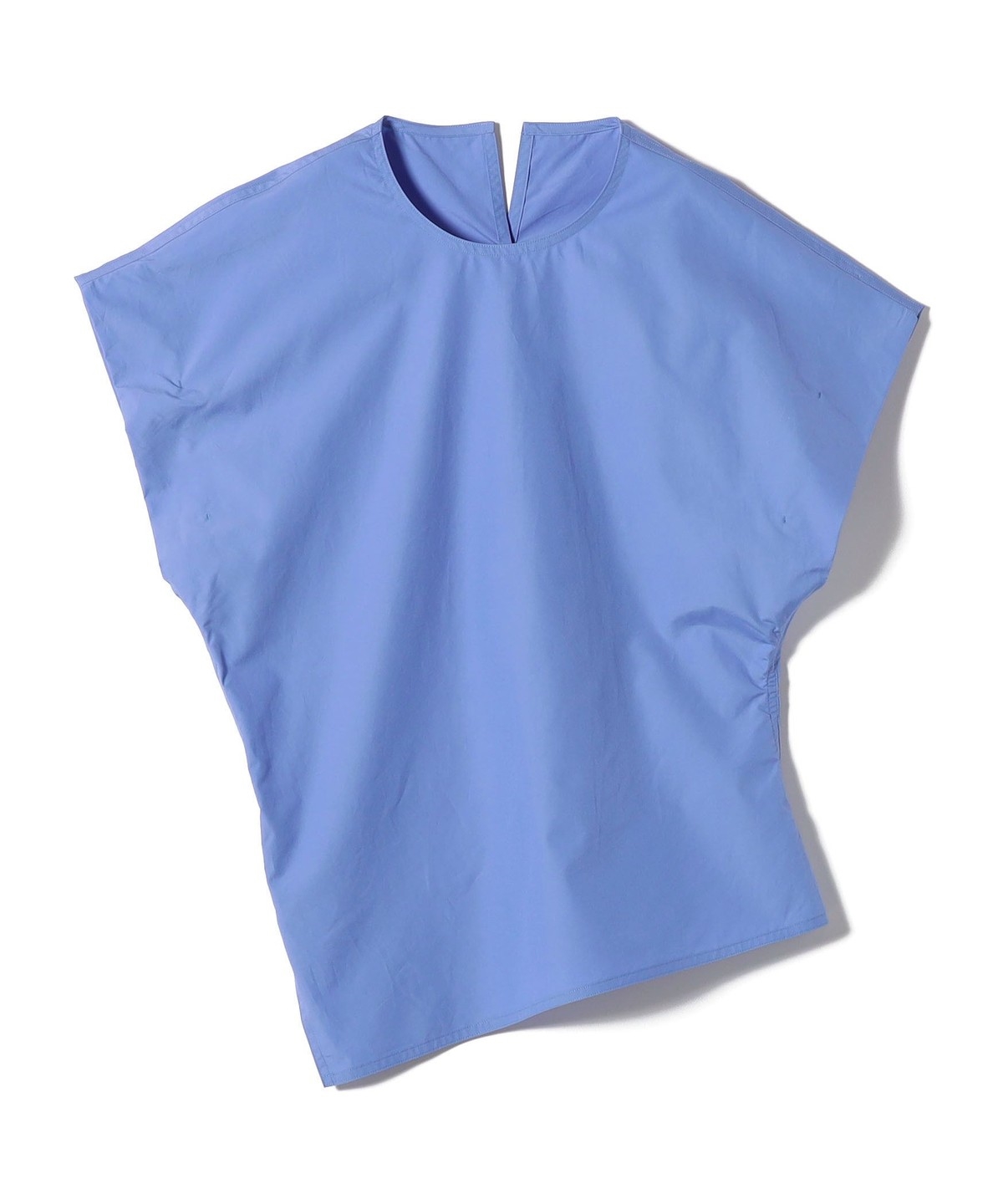 アシンメトリーなプルオーバーデザインで、ウエストにブラウジングが入り、斜めのヘムラインが特徴的なアイテムです。