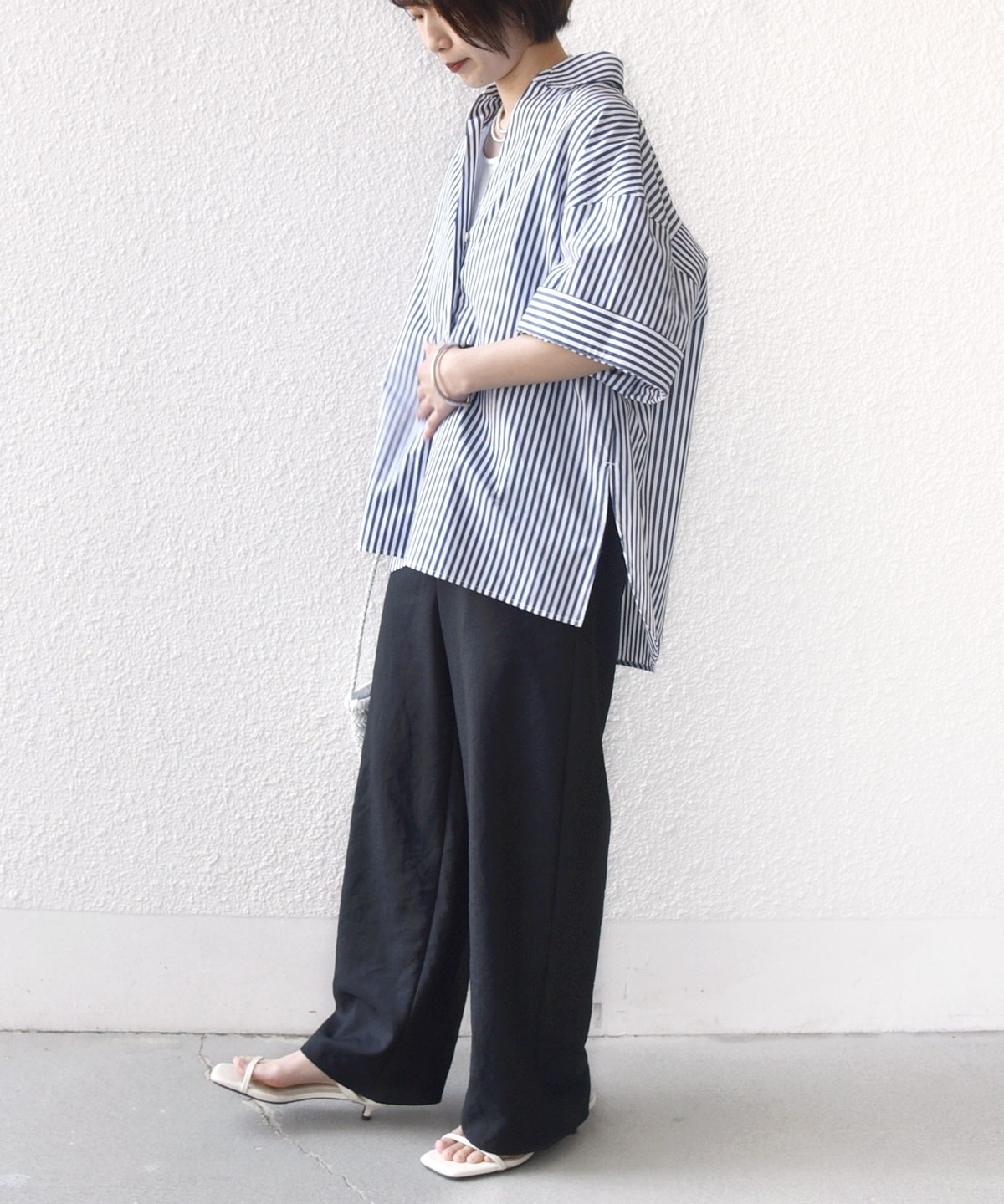 スラックスパンツとのオンスタイルはもちろん、デニムやイージーパンツとさらっと合わせても旬な着こなしを楽しめます。