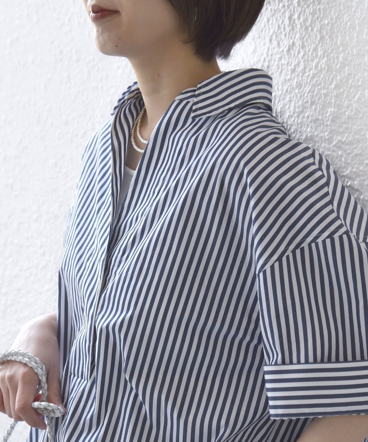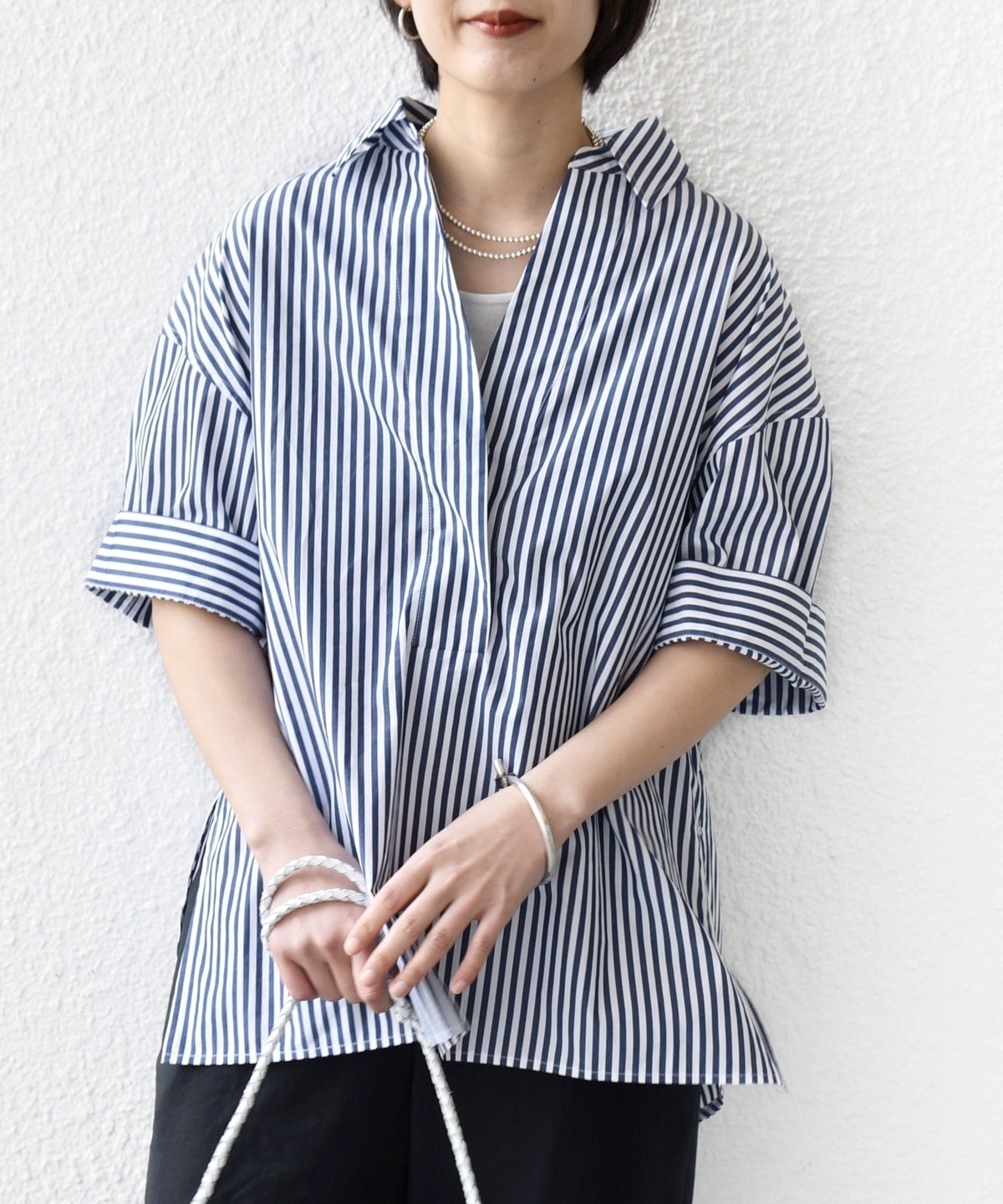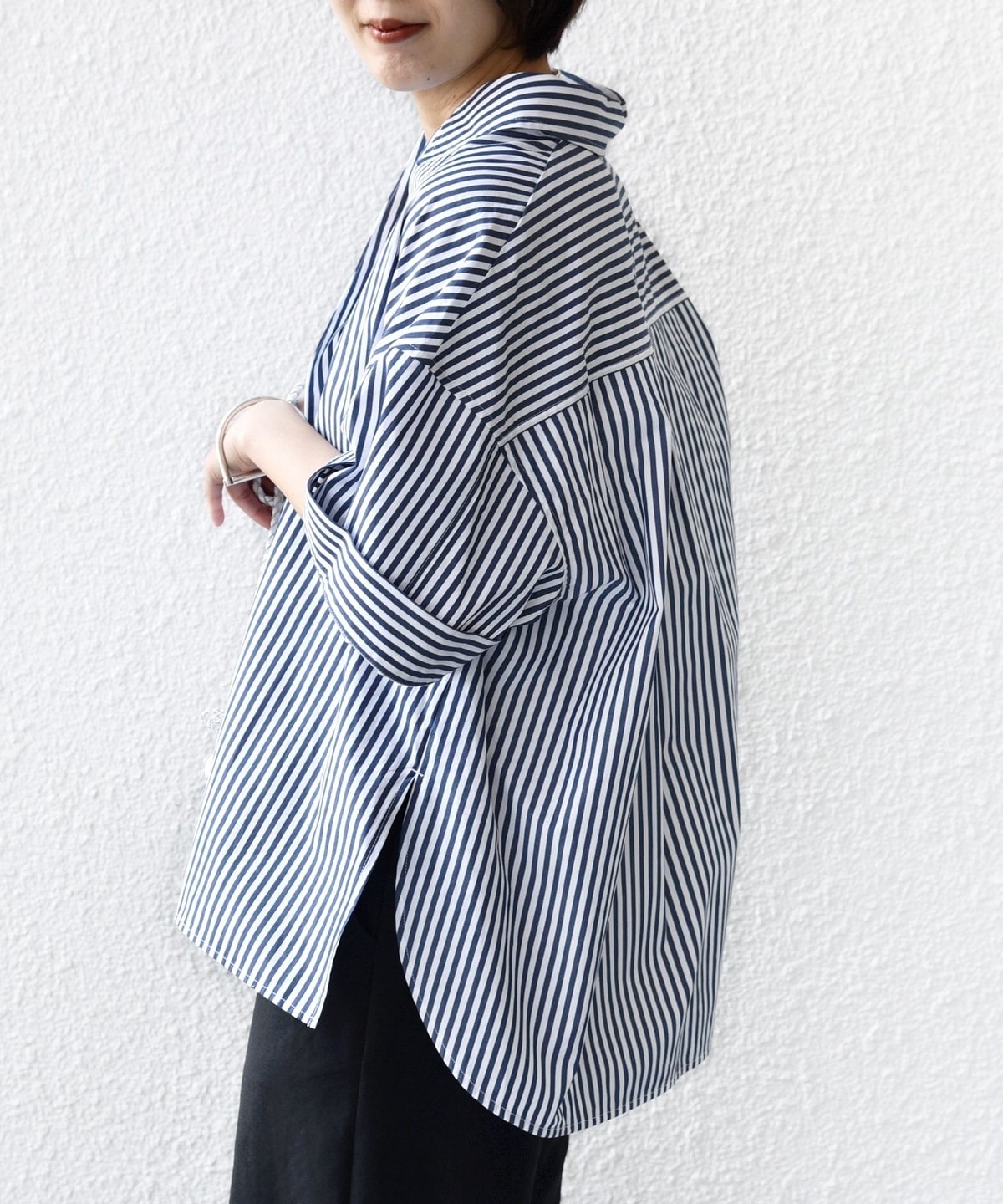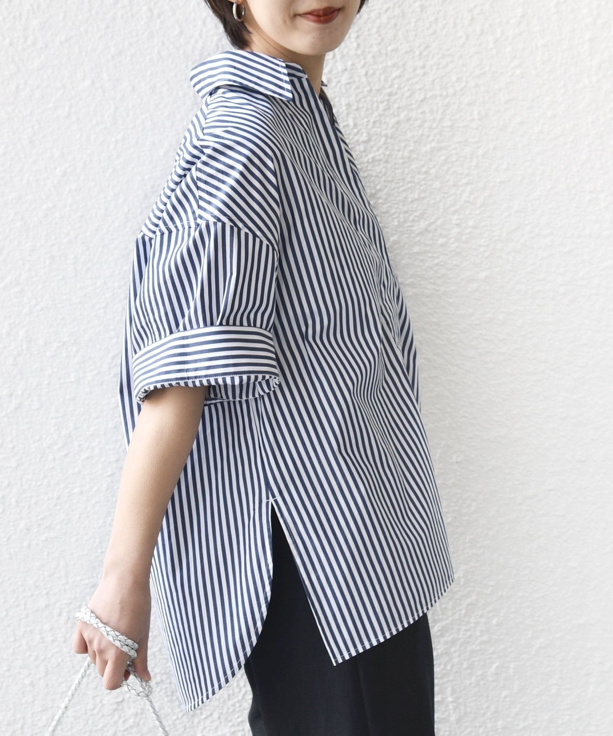 5. 《予約》〈手洗い可能〉無地/ストライプ スキッパー サイド スリット 半袖 シャツ