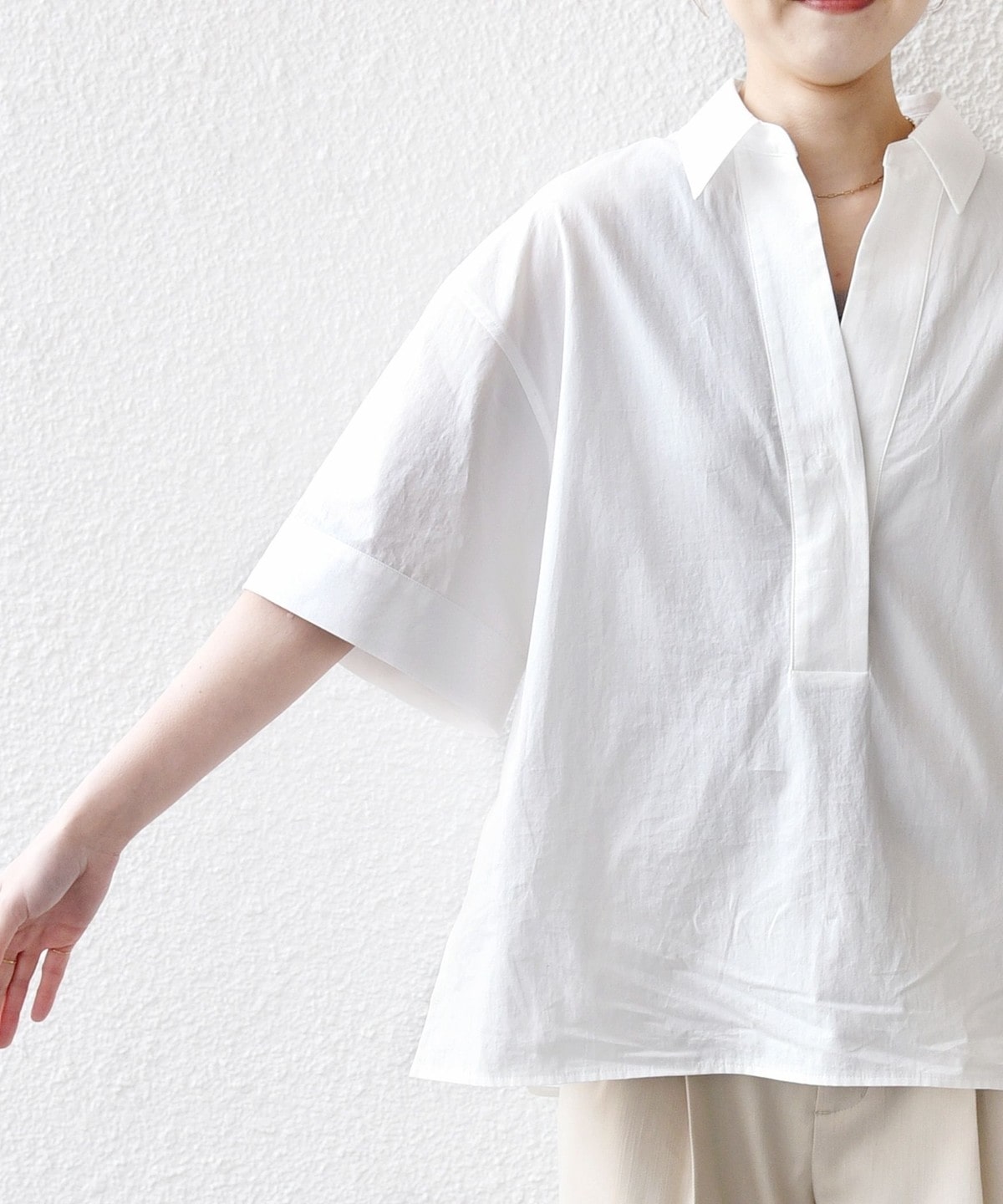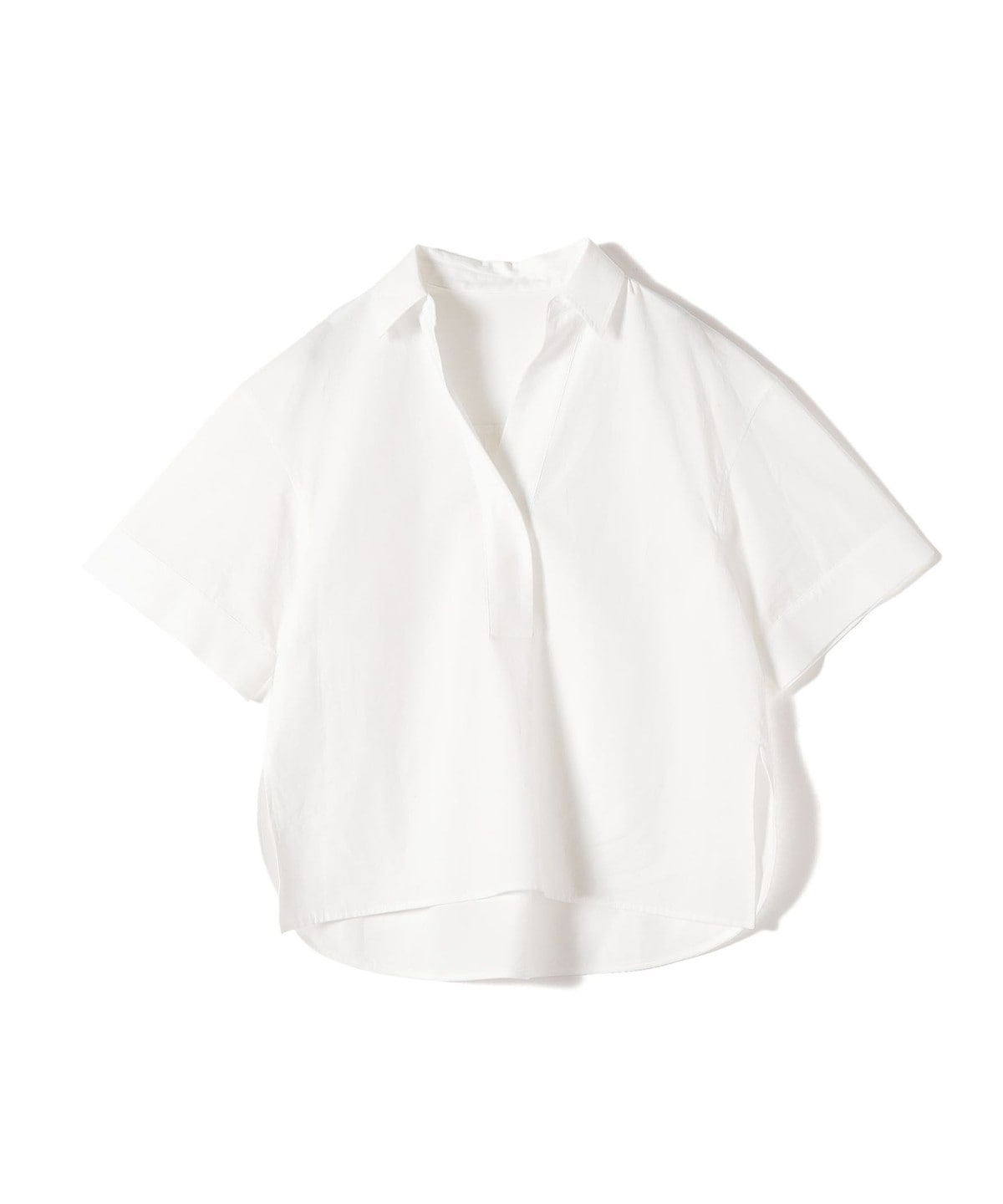 1. 《予約》〈手洗い可能〉無地/ストライプ スキッパー サイド スリット 半袖 シャツ オフホワイト