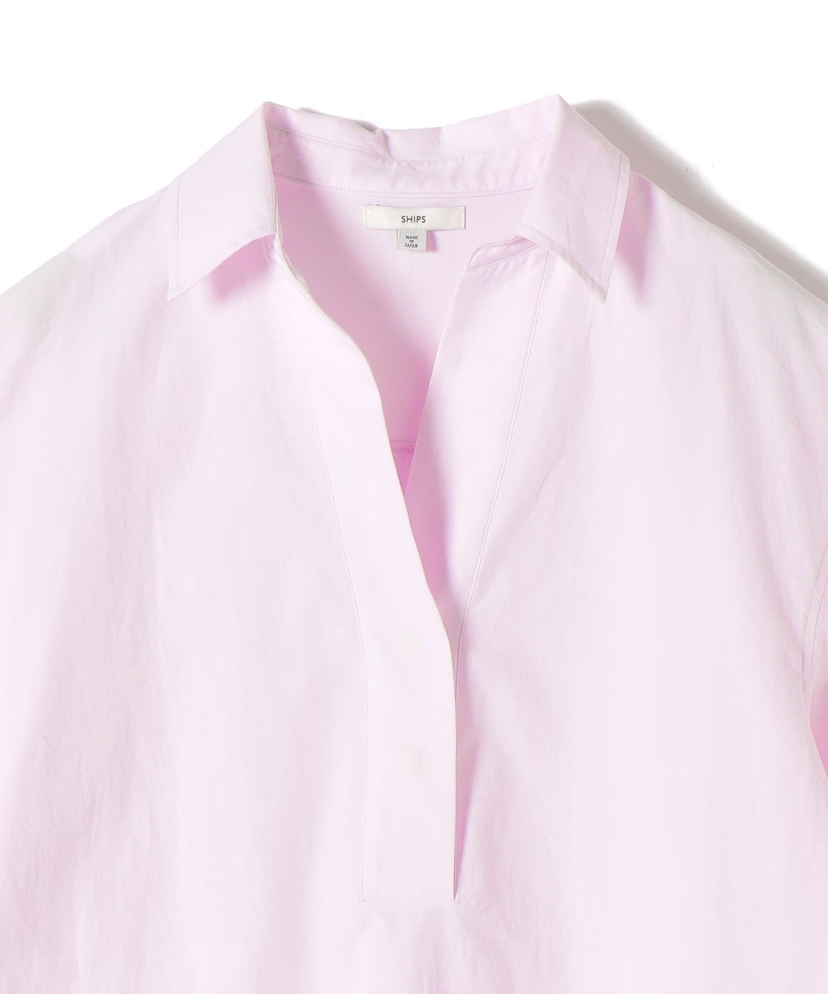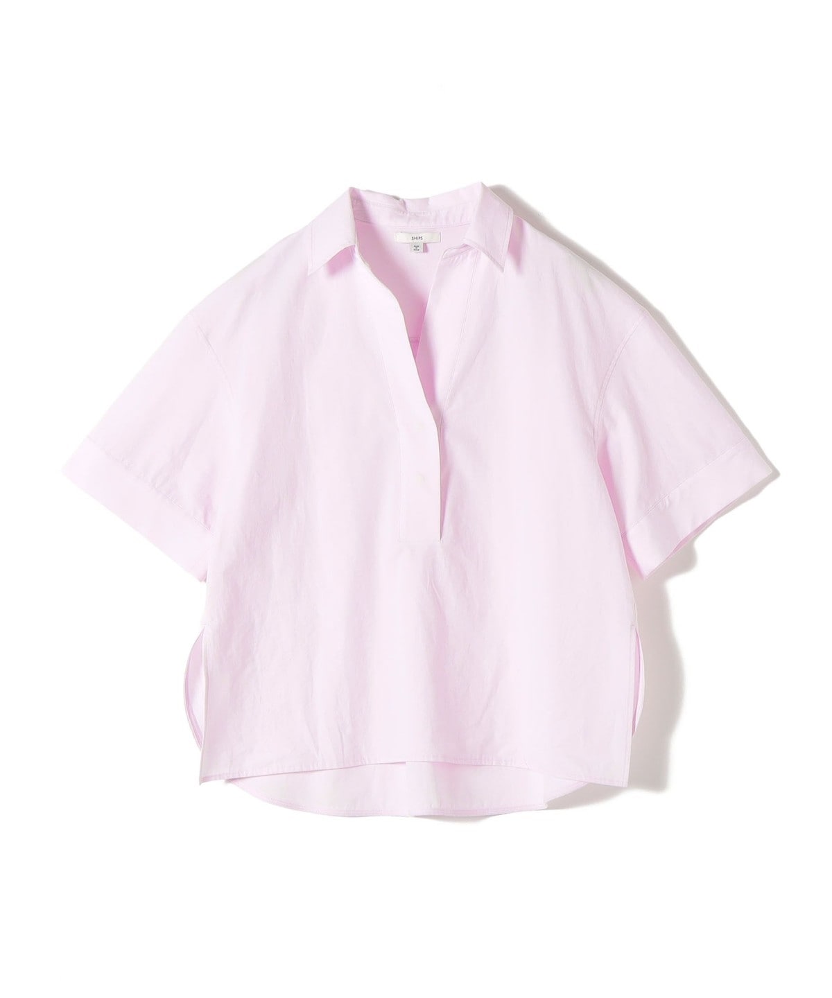 2. 《予約》〈手洗い可能〉無地/ストライプ スキッパー サイド スリット 半袖 シャツ ライトピンク