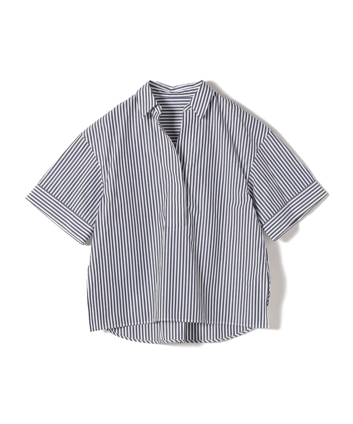 43. 《予約》〈手洗い可能〉無地/ストライプ スキッパー サイド スリット 半袖 シャツ